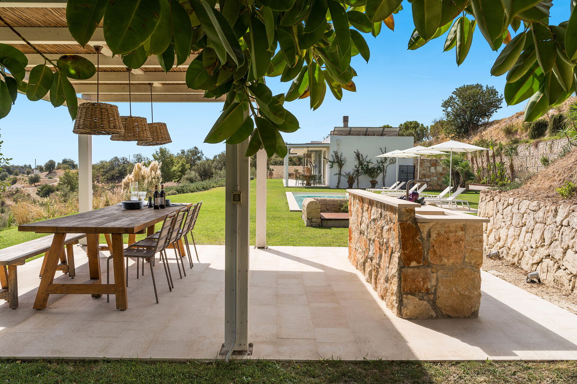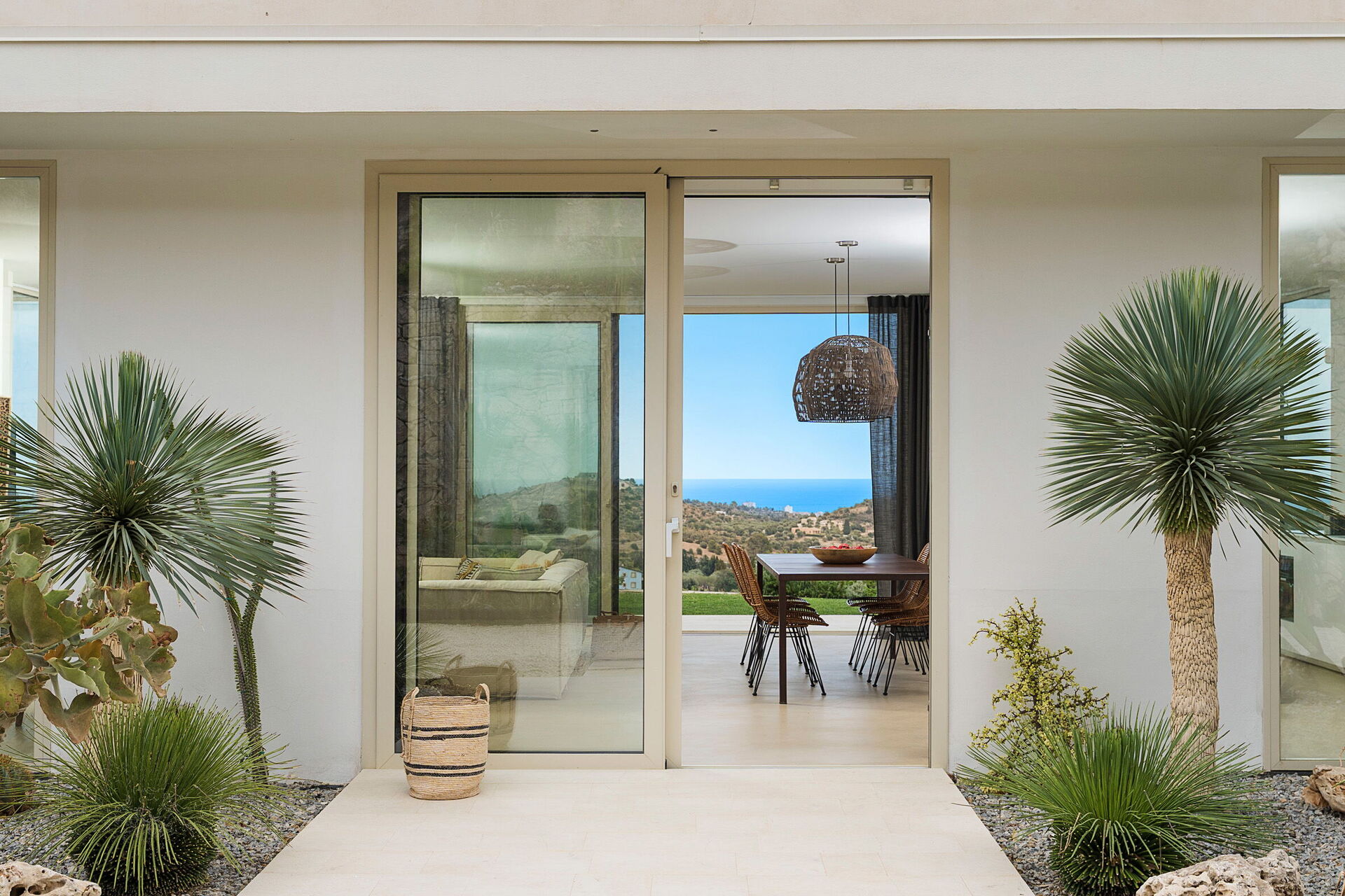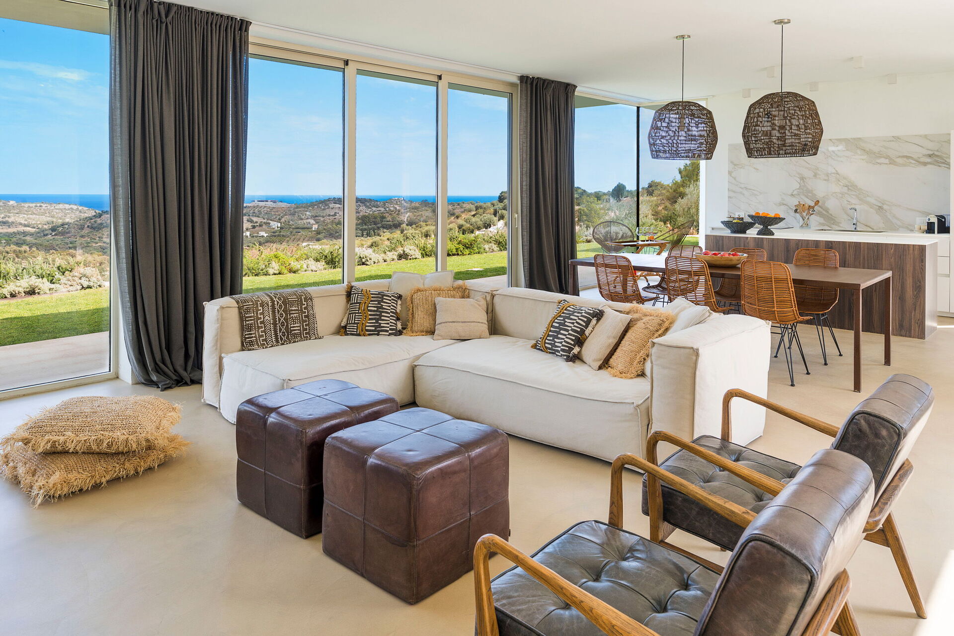 Gästerna har en fantastisk panoramautsikt över havet från poolen, verandan och trädgården.