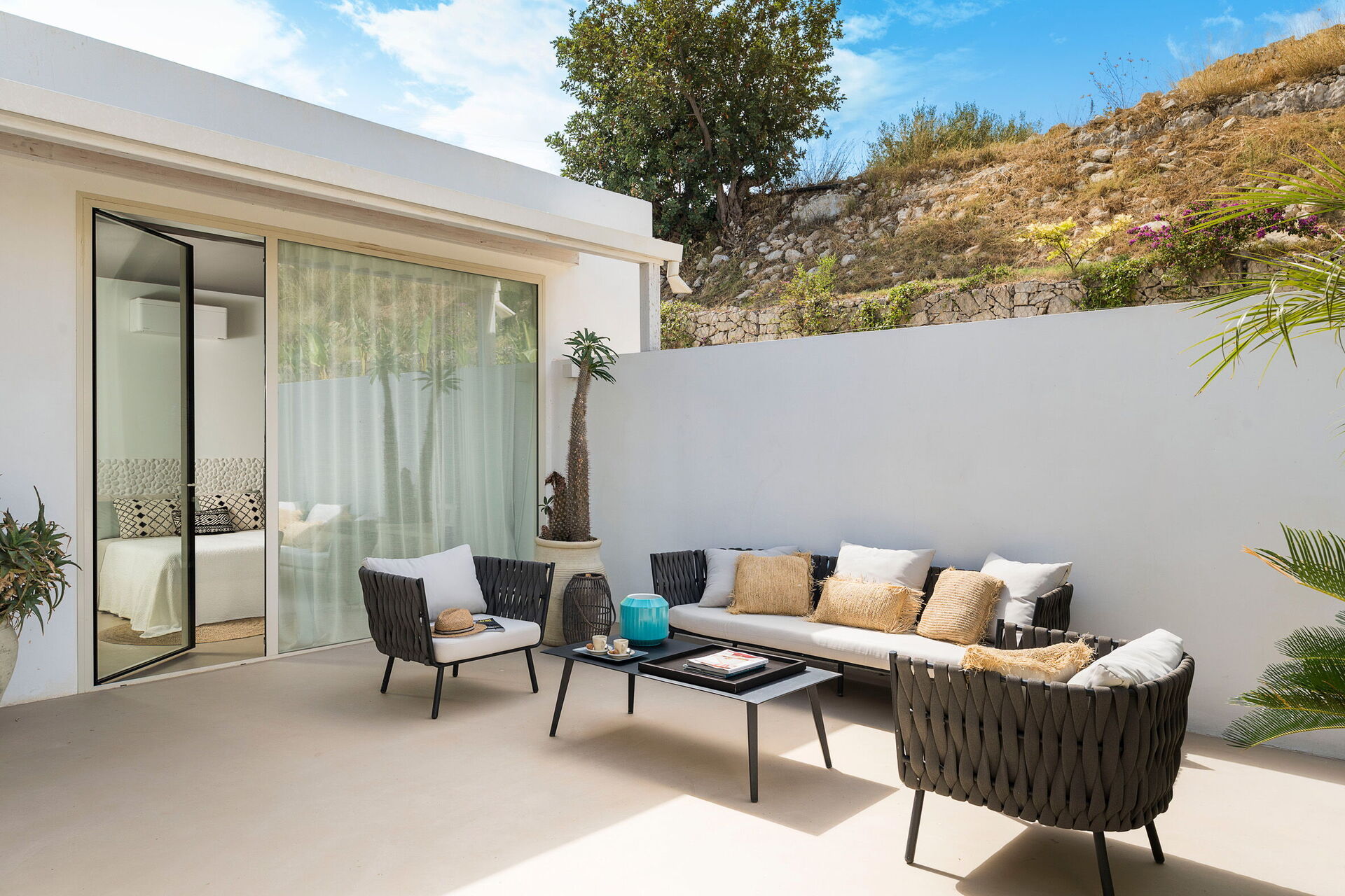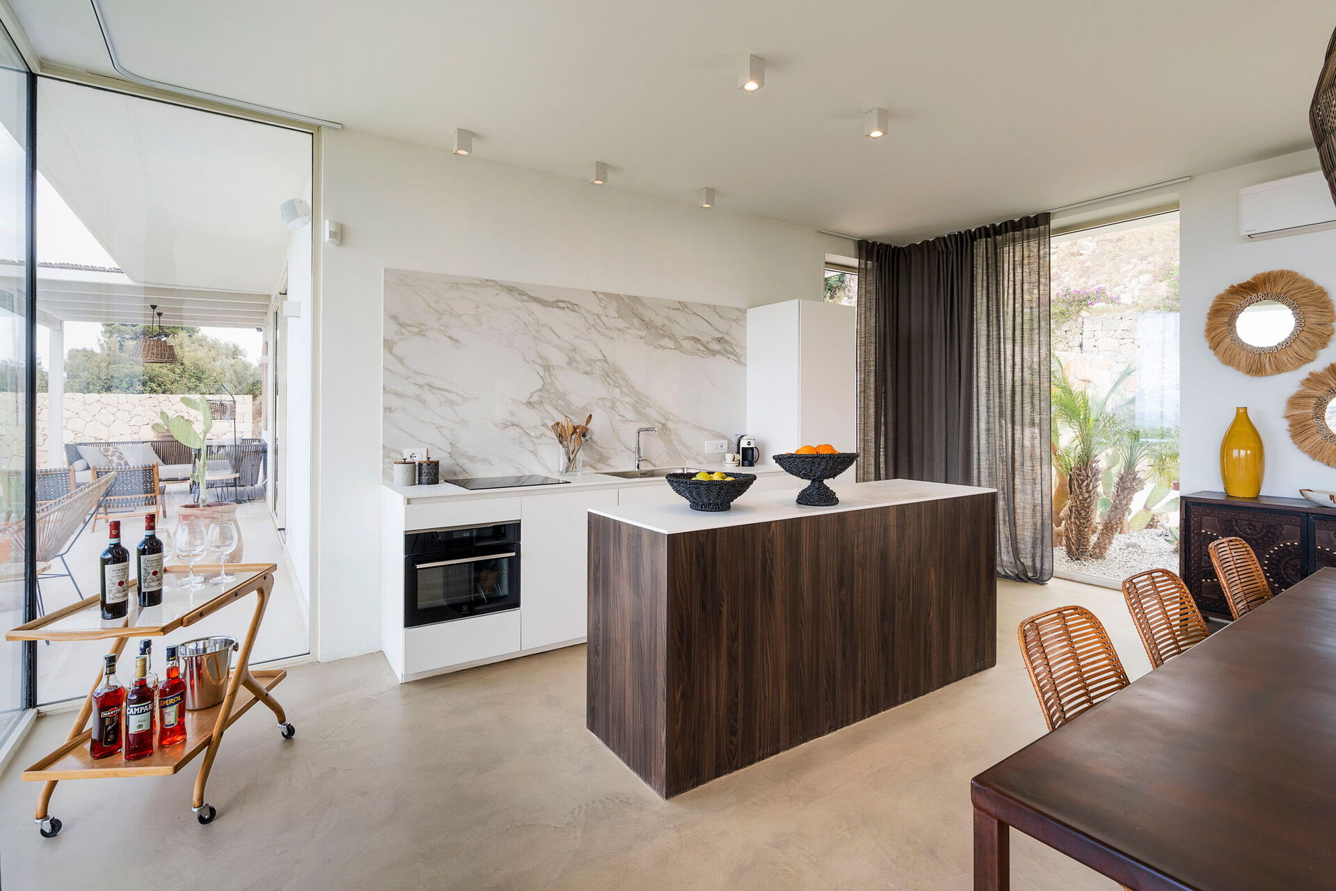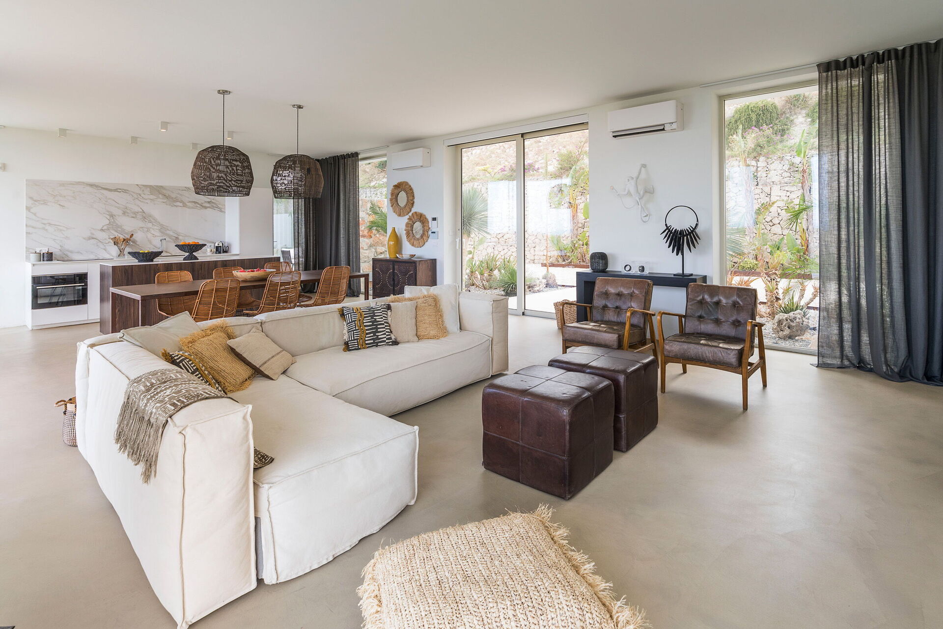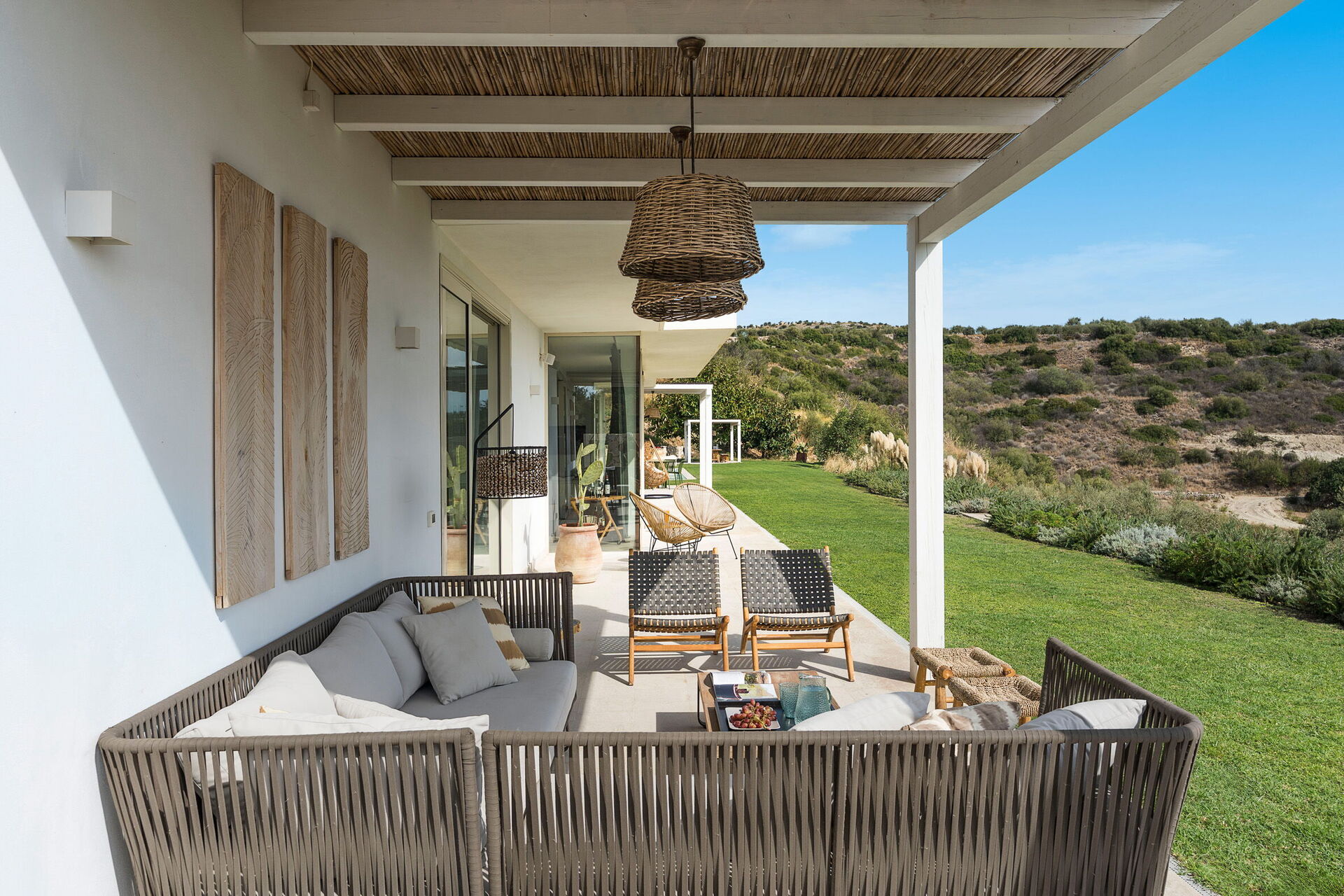 Gästerna har en fantastisk panoramautsikt över havet från poolen, verandan och trädgården.