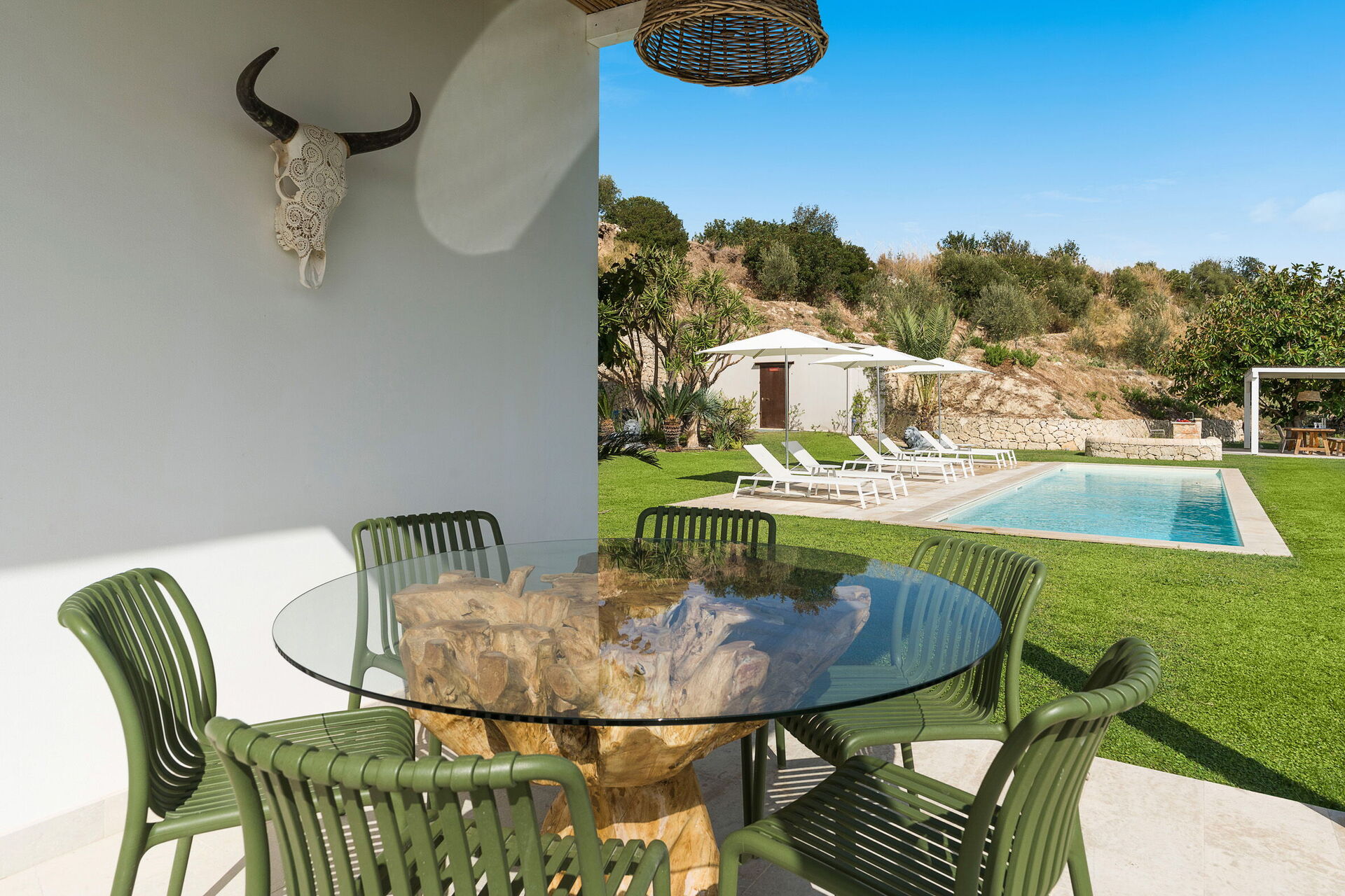 På fastigheten finns en underbar pool med en solterrass utrustad med solstolar och små bord – den perfekta platsen för svalka och avkoppling tillsammans med familj eller vänner under Siciliens sol.