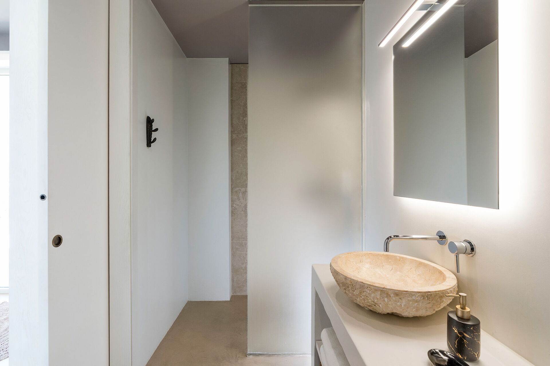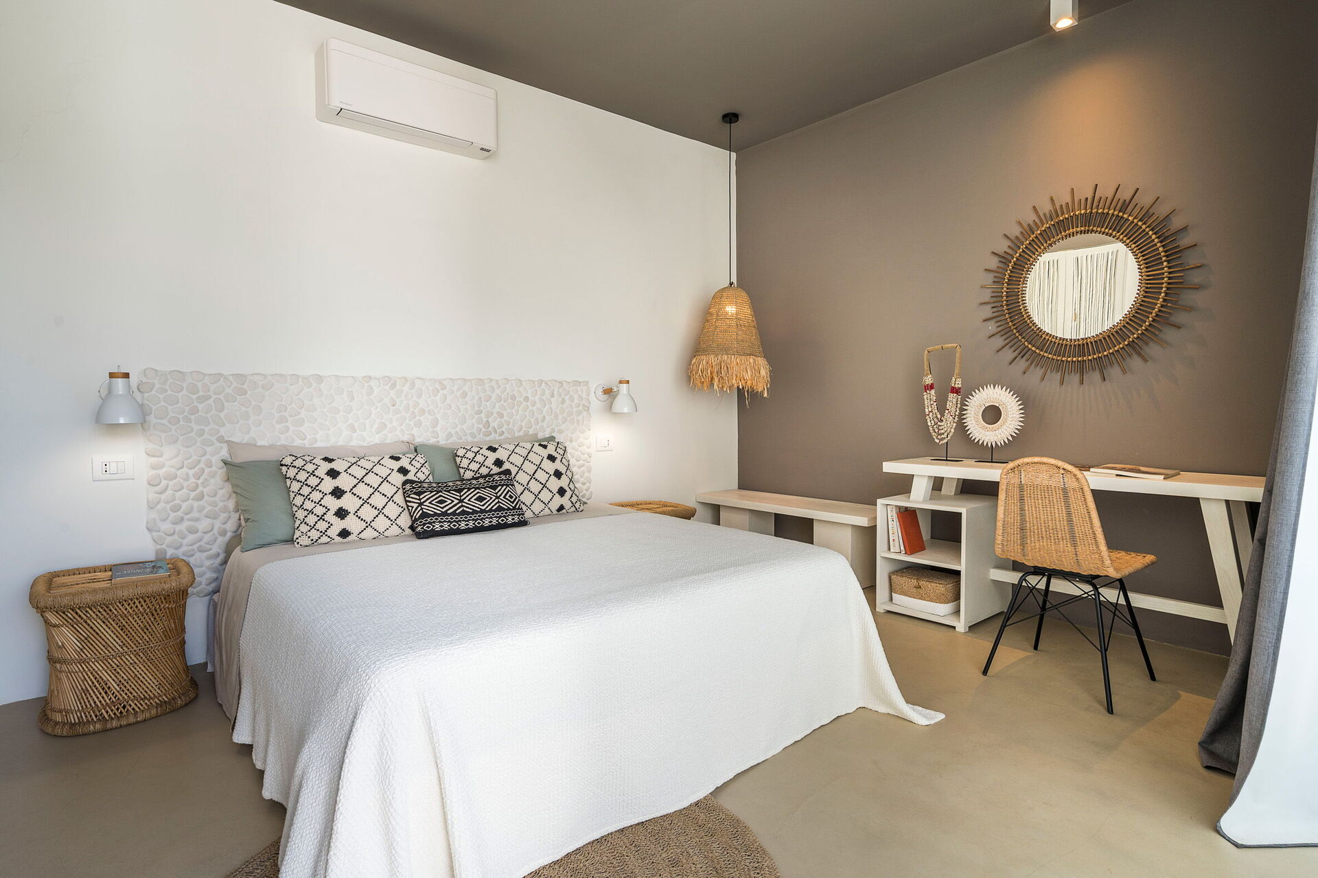 Huset är smakfullt inrett med en ljus och inbjudande interiör. Semesterhuset ligger på en våning med 3 sovrum (2 av dem endast tillgängliga utifrån) och har plats för upp till 6 personer.