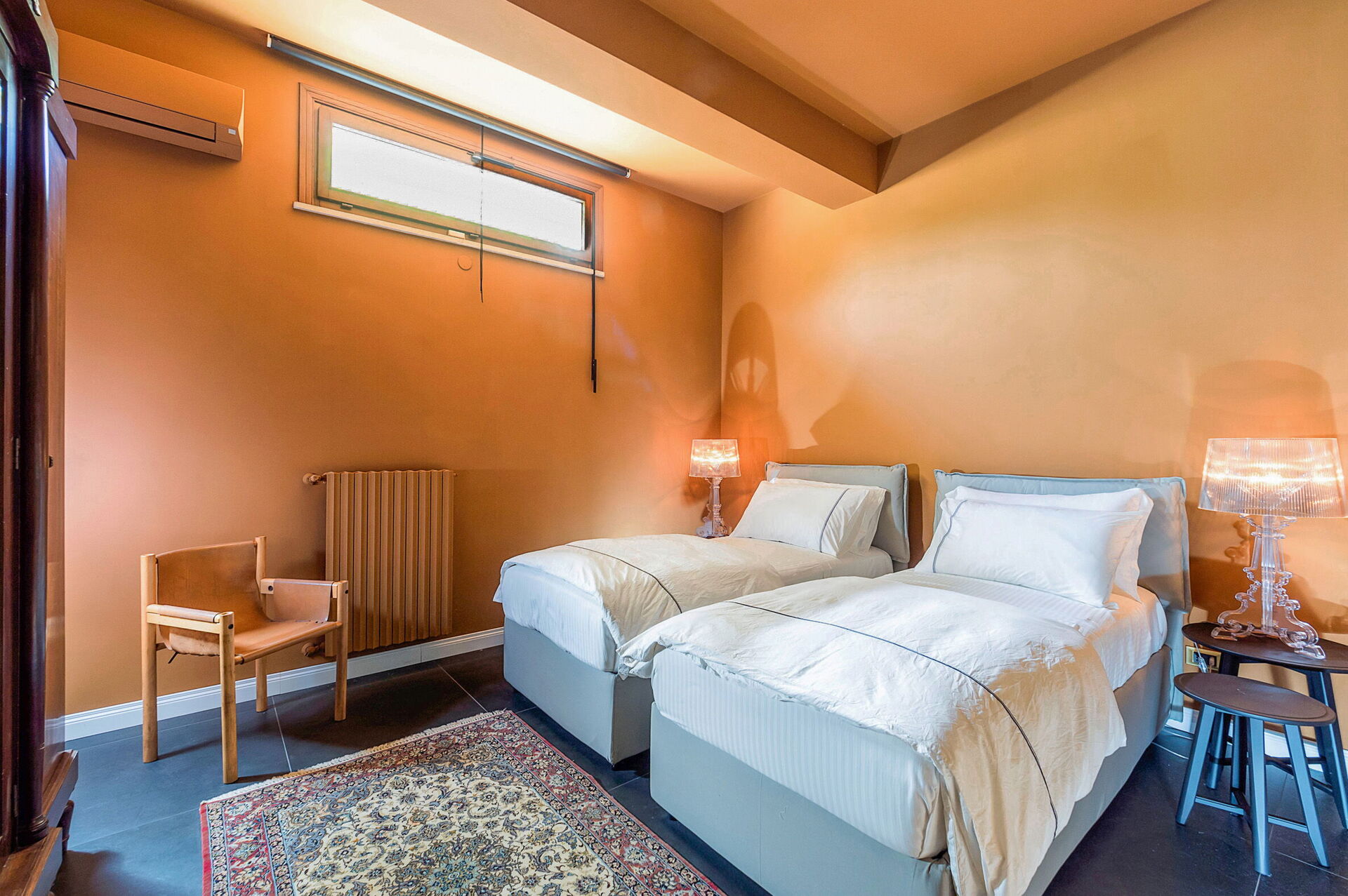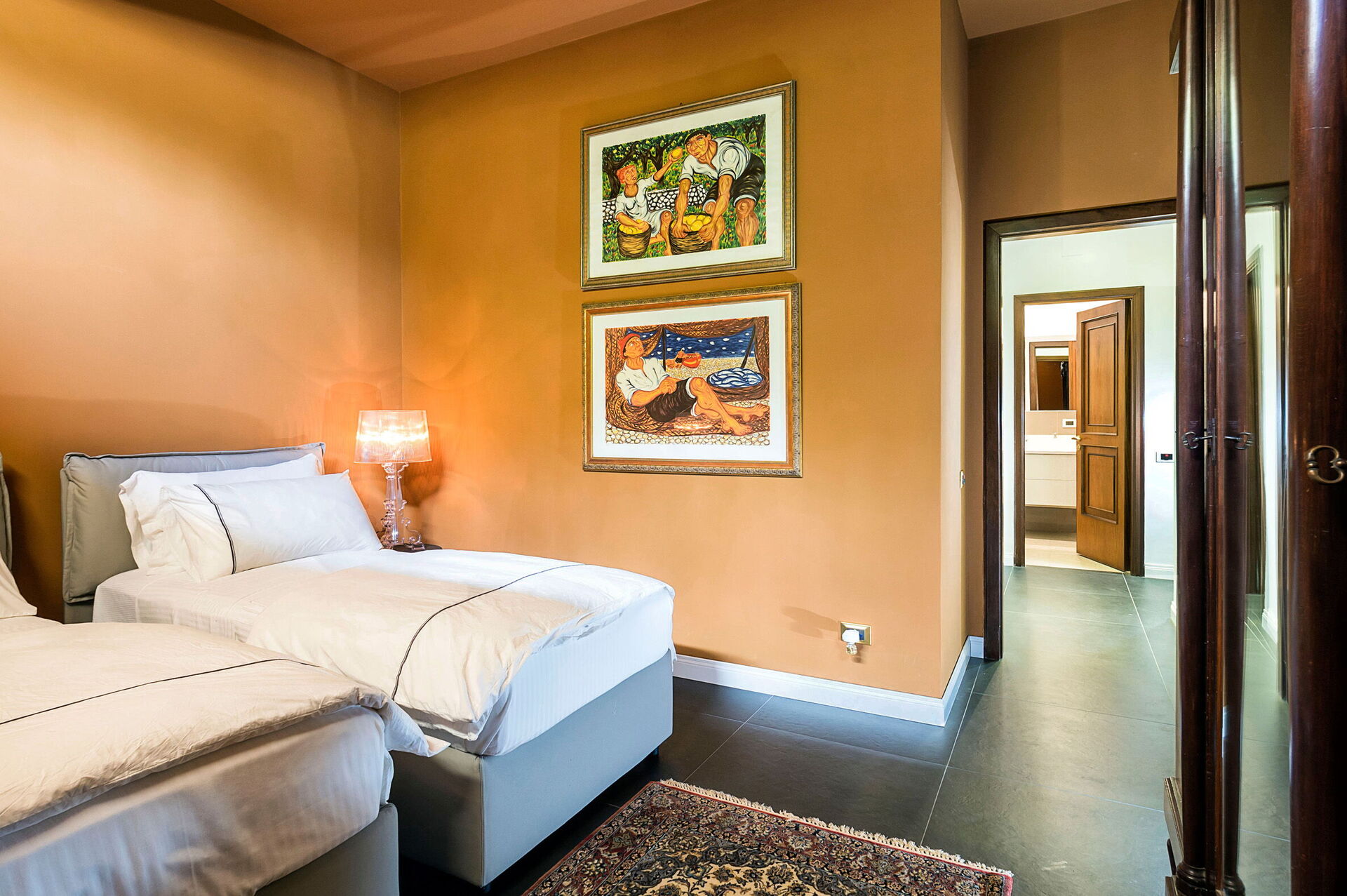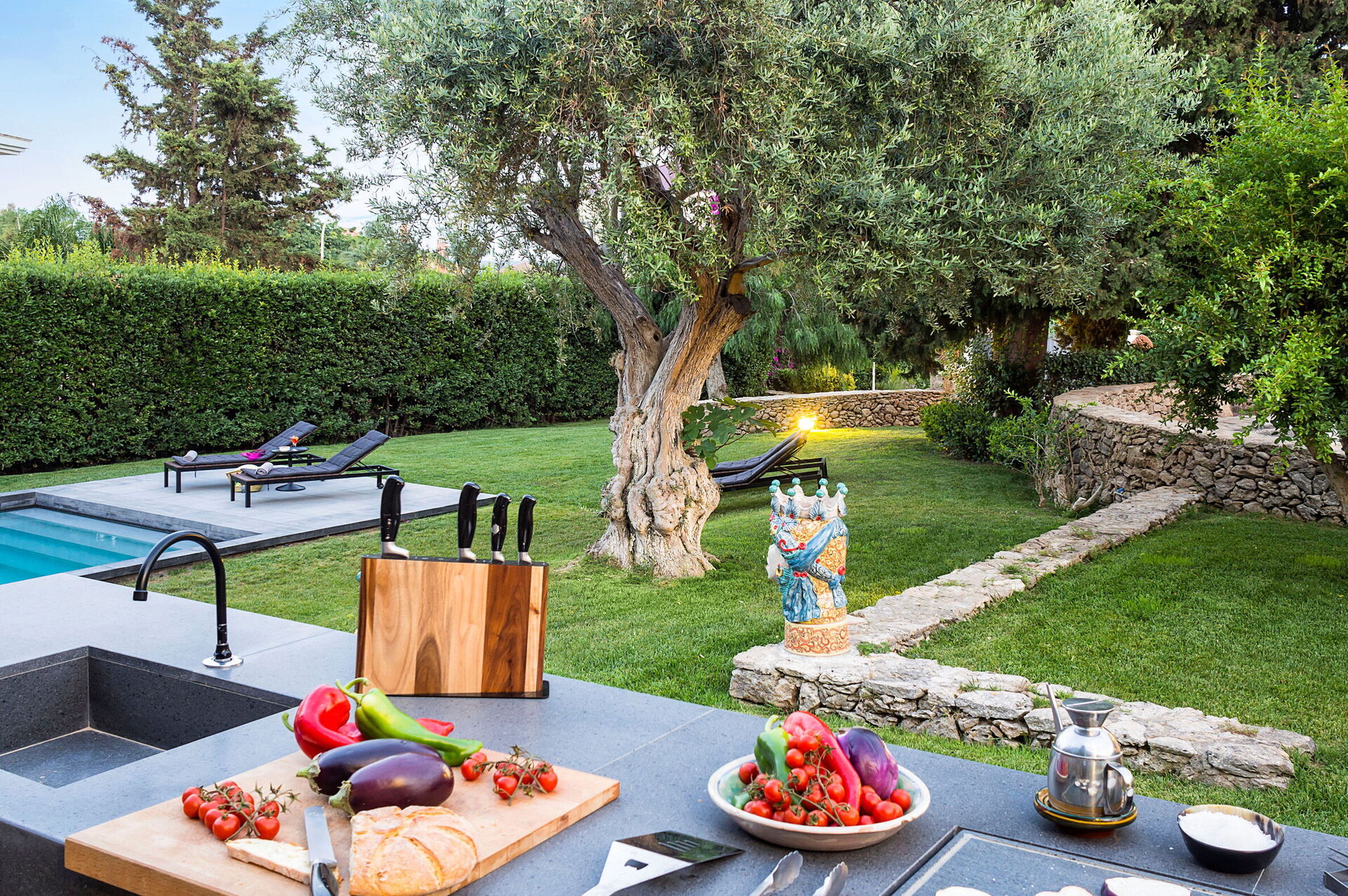 En stenlagd stig leder dig till Villa Profumo d’Oriente, som ligger omgiven av en vacker trädgård med medelhavsväxter. Här finns en pool som kan värmas upp till cirka 26 °C – den perfekta platsen för avkoppling under soliga dagar i Italien tillsammans med familj eller vänner.