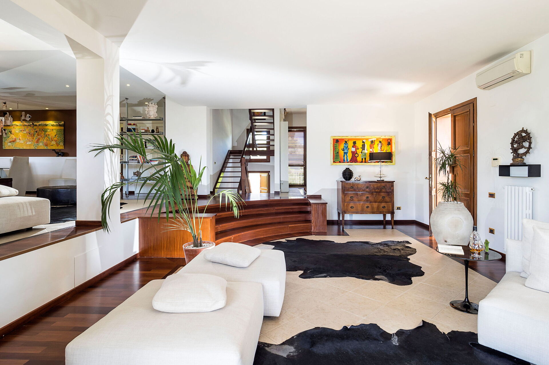 4 trappsteg upp: vardagsrum, kök (ugn, frys, kylskåp, diskmaskin, spishäll, mikrovågsugn, brödrost, amerikansk kaffebryggare, espressomaskin) med matplats, dubbelrum med walk-in-garderob, badrum med dusch, badrum med bubbelbadkar.