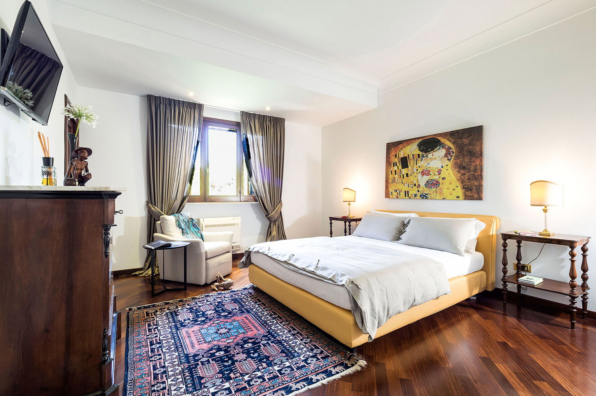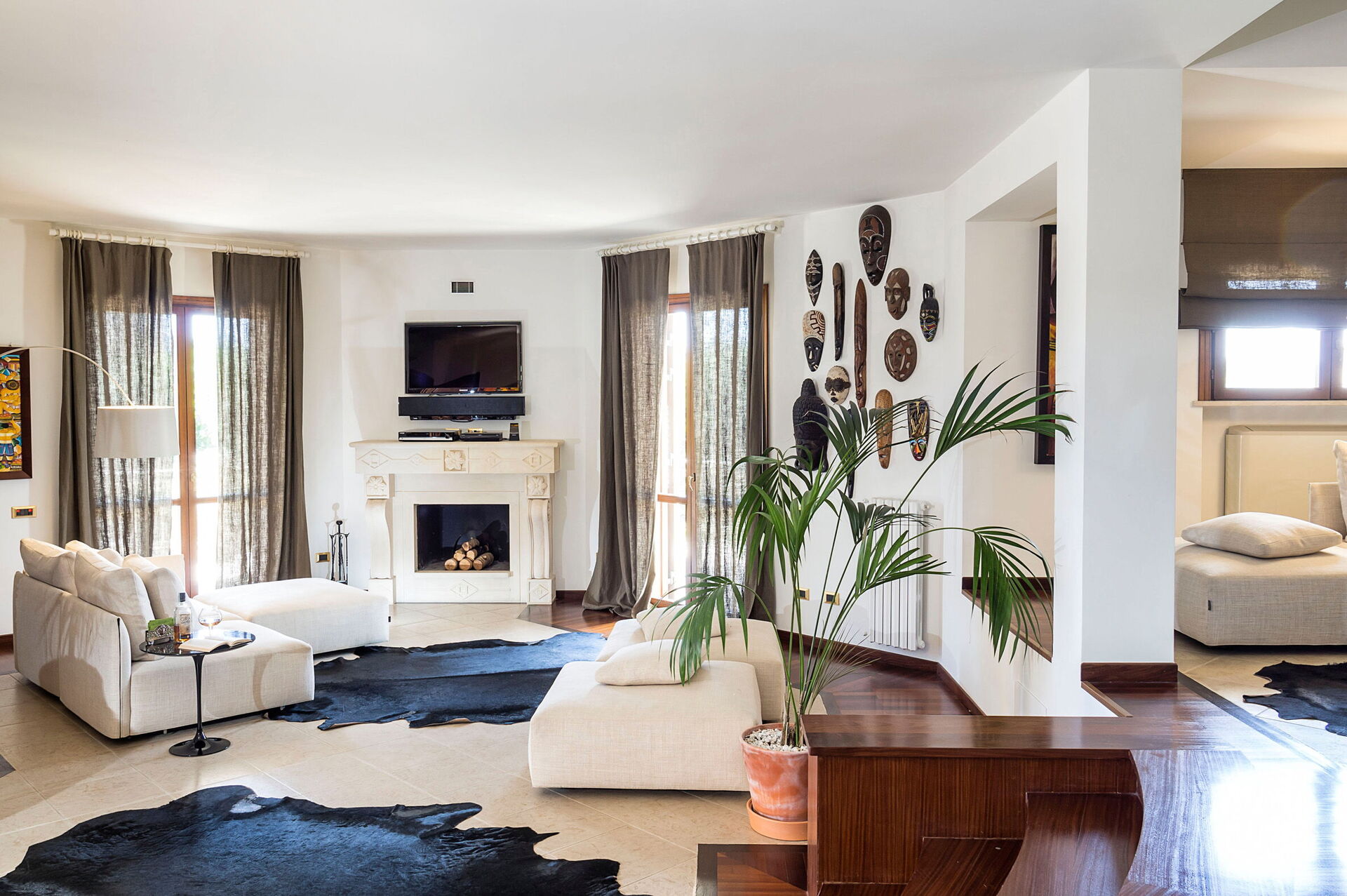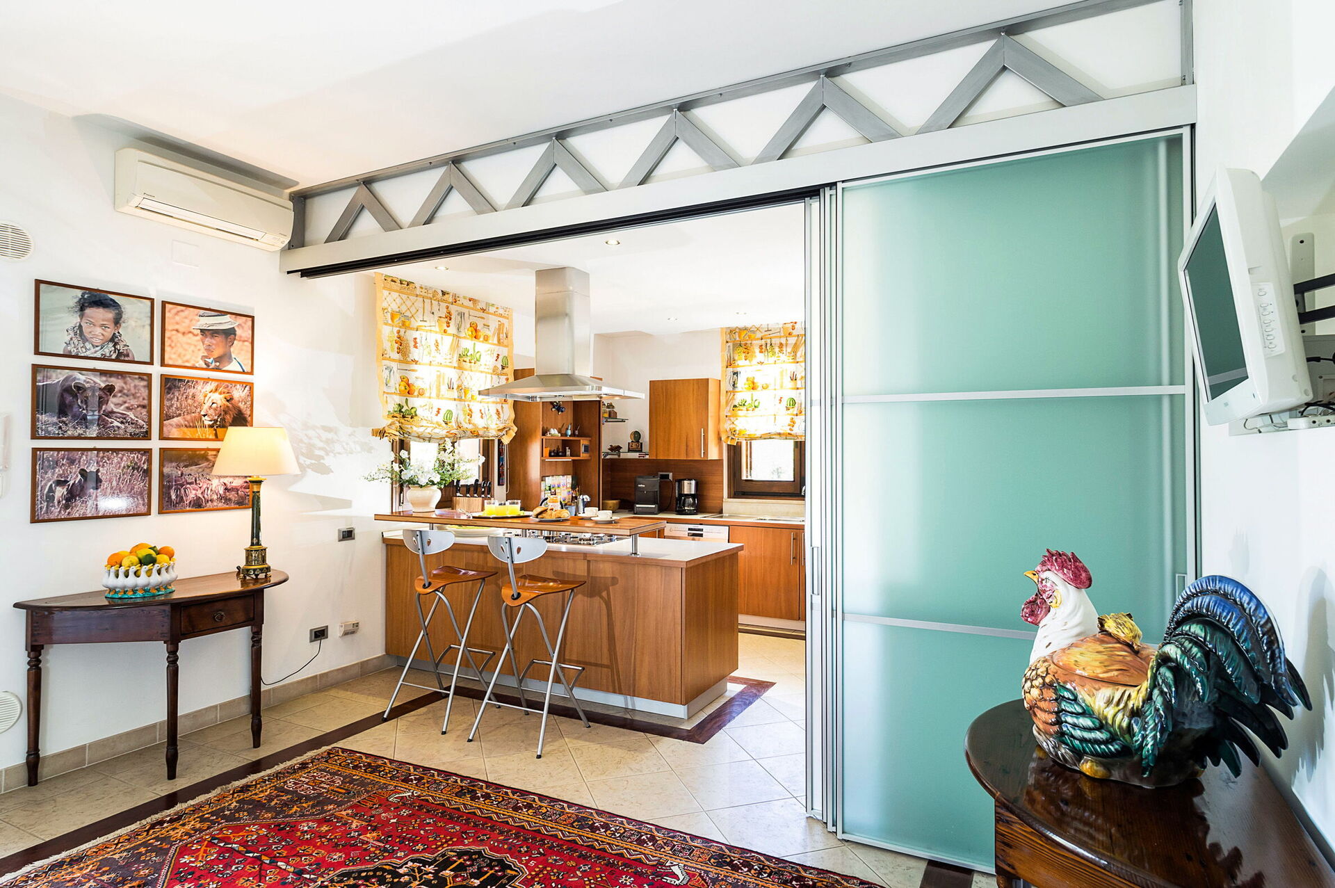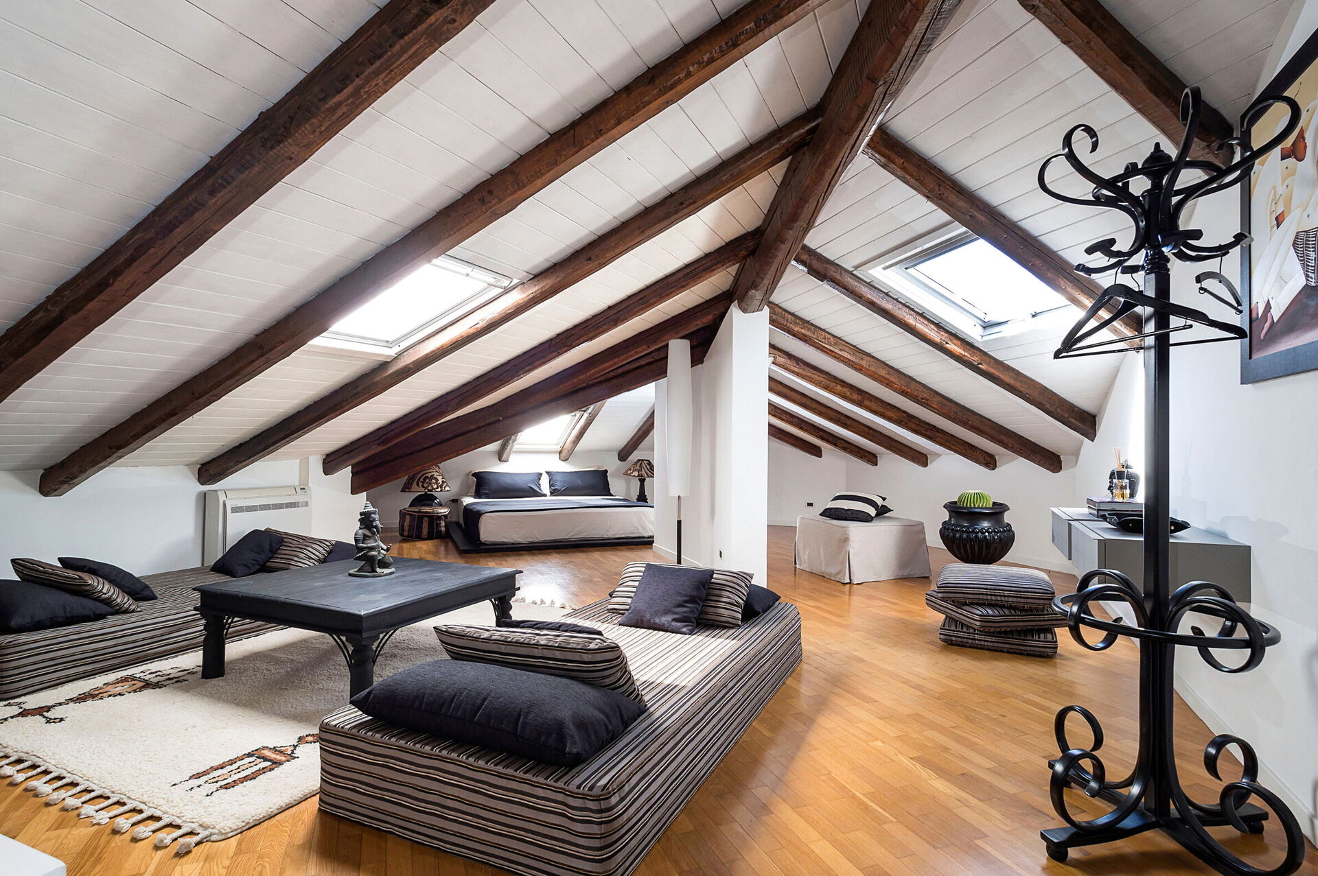 Huset sträcker sig över 3 våningar (varav en är en vindsvåning), med stora gemensamma utrymmen utrustade med alla bekvämligheter samt 4 sovrum som bekvämt rymmer upp till 8 personer. Inredningen är smakfull och modern.