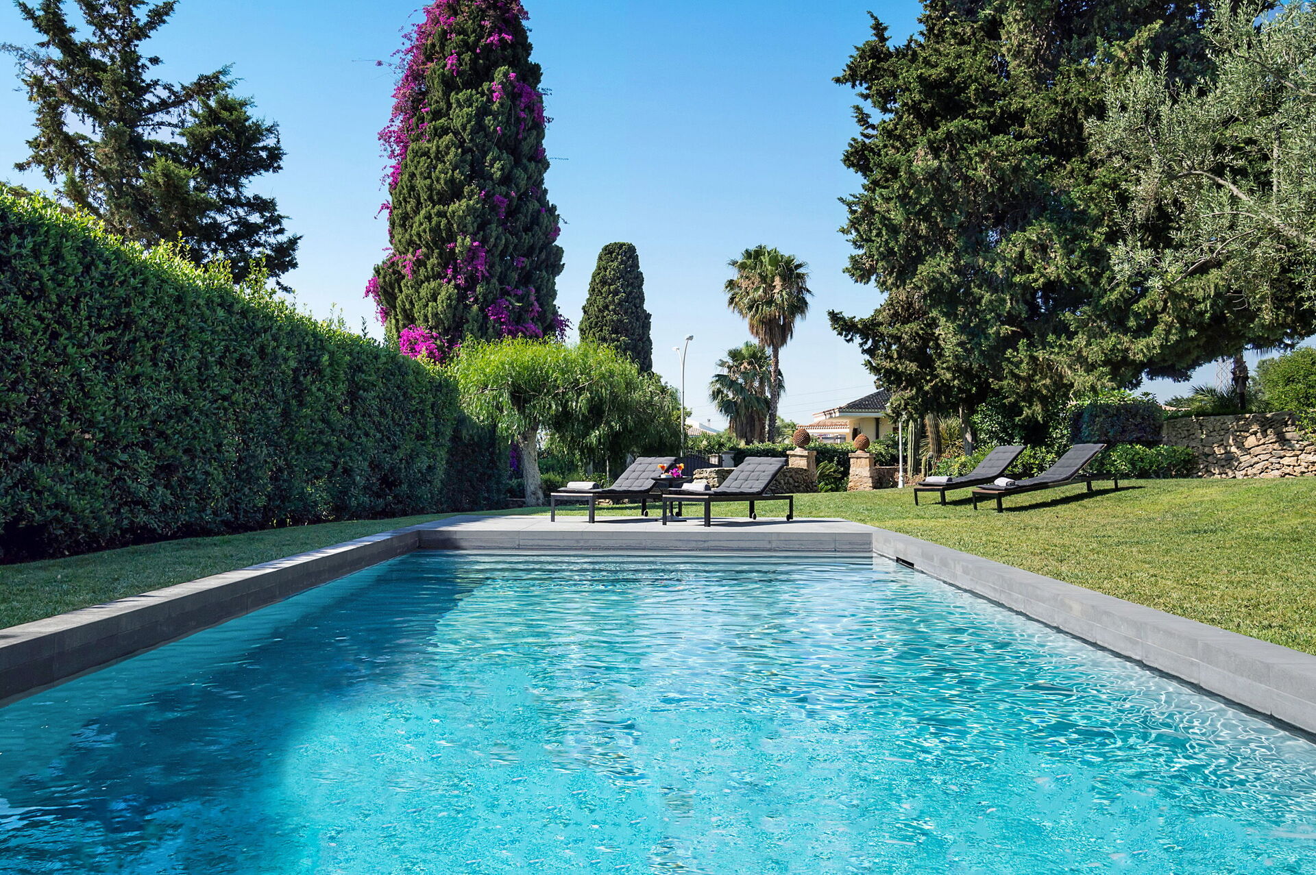 • privat saltvattenpool (10,50 x 4,50 meter; min. djup: 1,10 meter; max. djup: 1,60 meter; uppvärmd till ca 26 °C)
