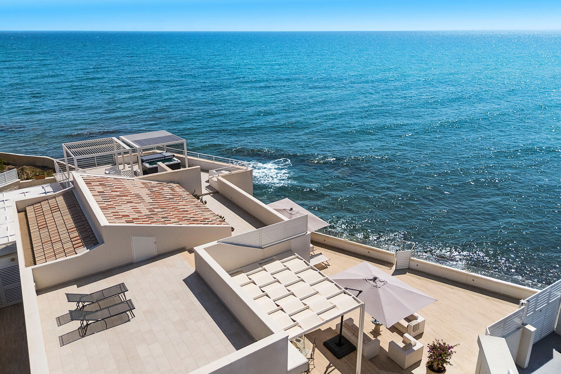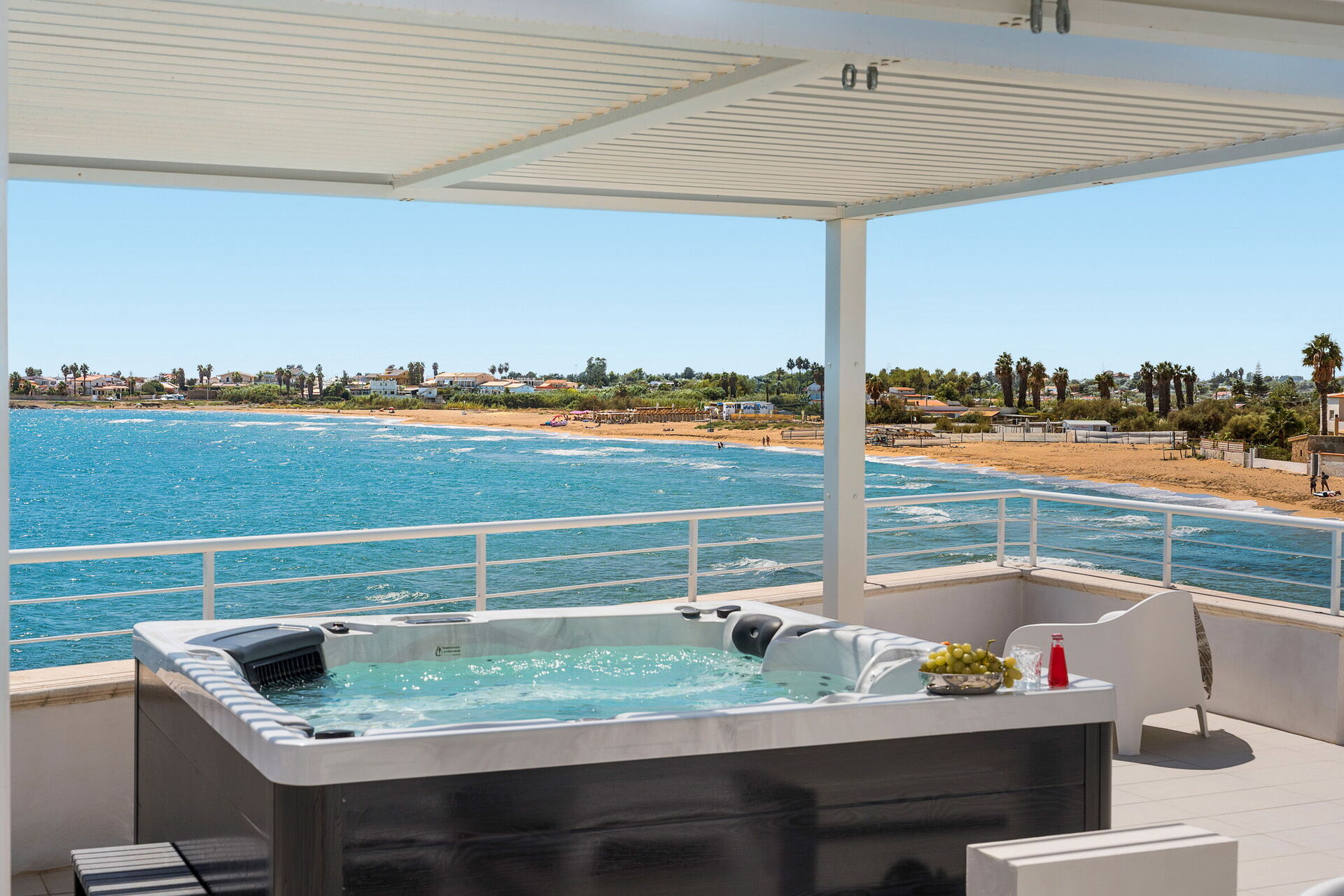 Den vackra terrassen är fastighetens höjdpunkt: Möblerad med solsängar, parasoller och trädgårdsmöbler erbjuder den en förtrollande utsikt över havet och kusten vid Avola. Det finns också andra fina områden, som den möblerade paviljongen där man kan njuta av måltider utomhus och solterrasserna. Detta gör huset till en perfekt utgångspunkt för en avslappnande semester med familj eller vänner under den varma sicilianska solen.