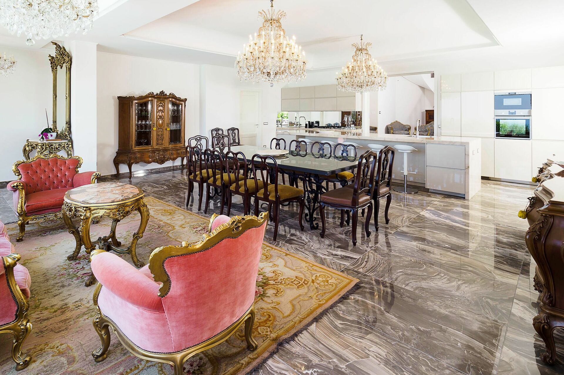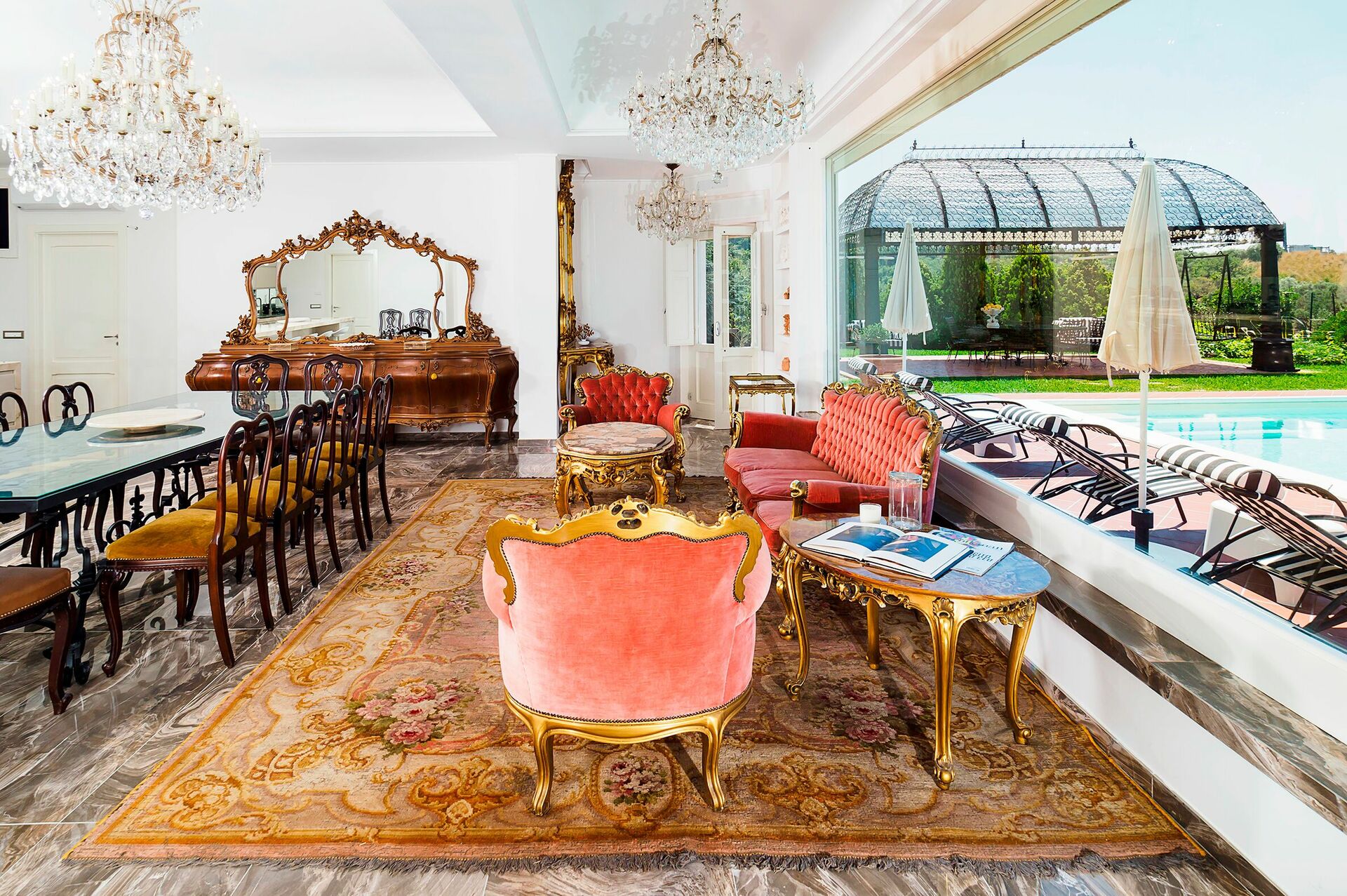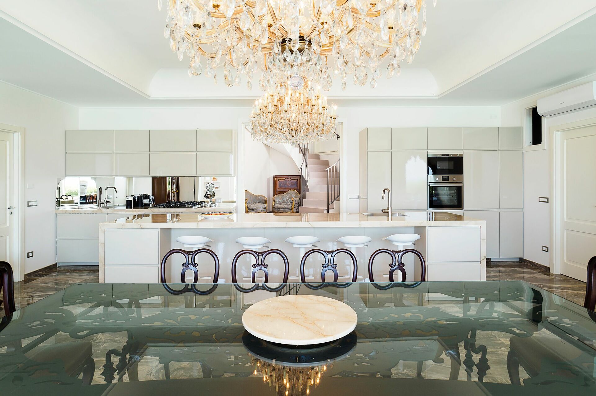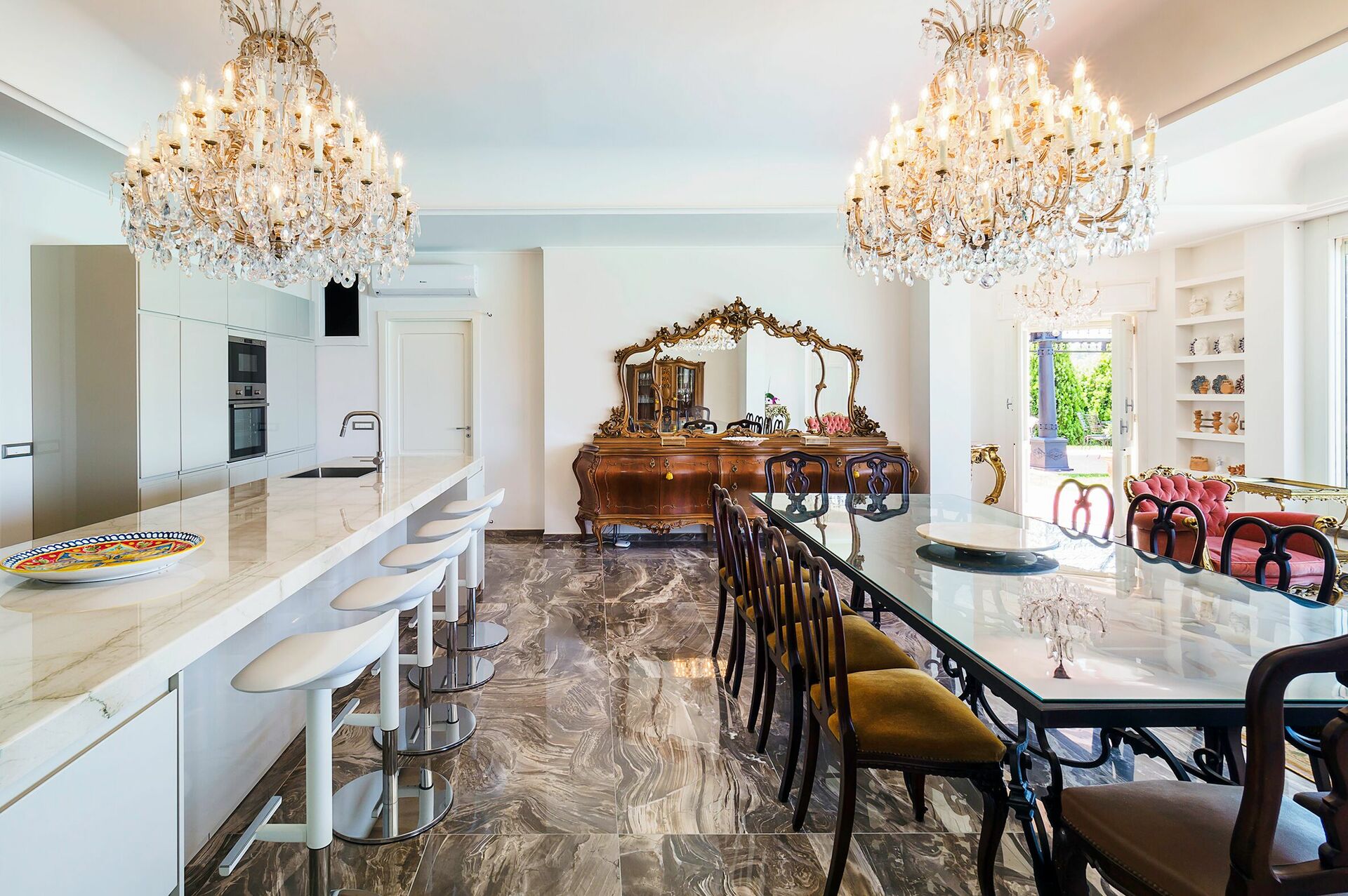 Villa Estella är elegant inredd med utvalda möbler och fina material, som marmorgolv, antika föremål och överdådiga ljuskronor i perfekt harmoni.