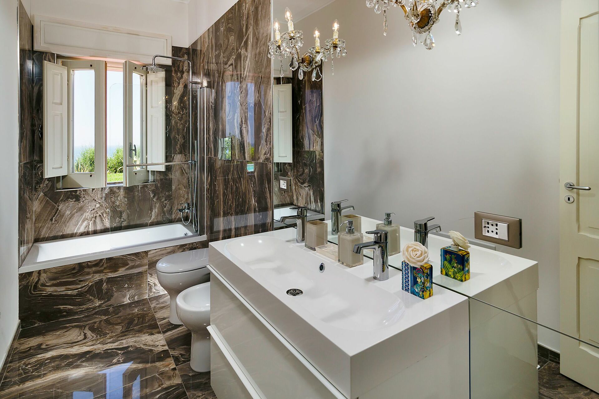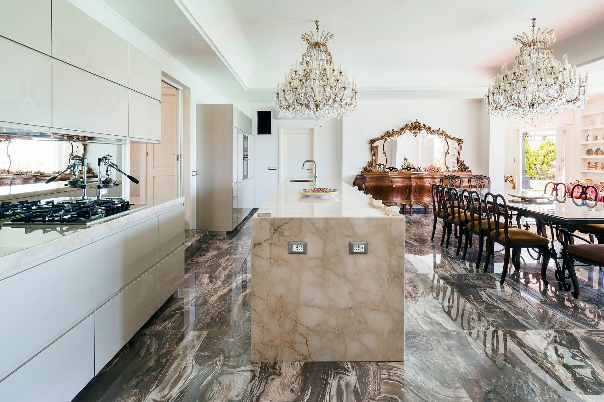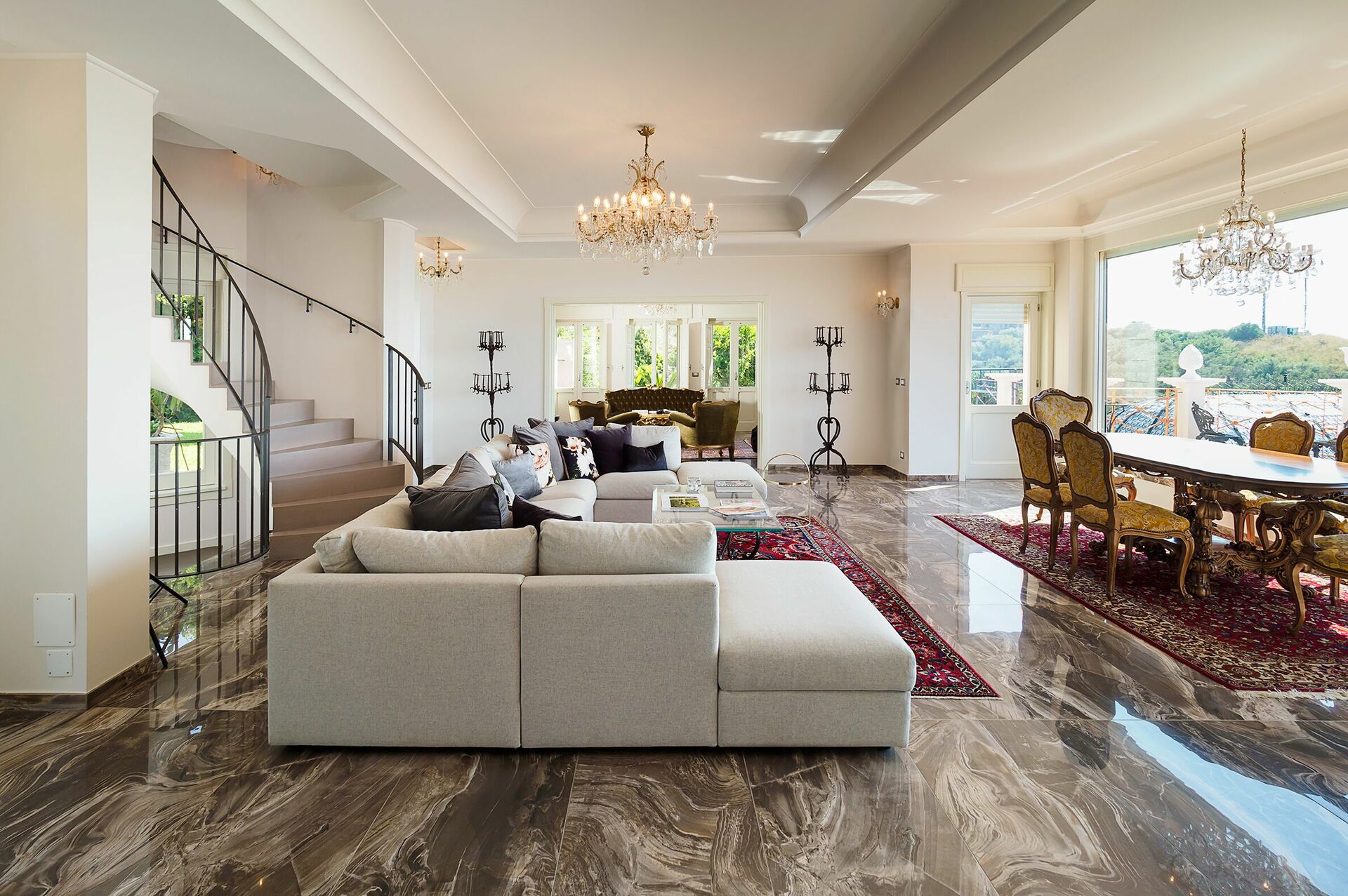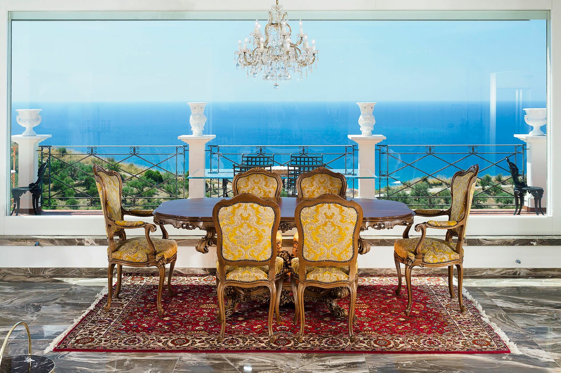Villa Estella är elegant inredd med utvalda möbler och fina material, som marmorgolv, antika föremål och överdådiga ljuskronor i perfekt harmoni.