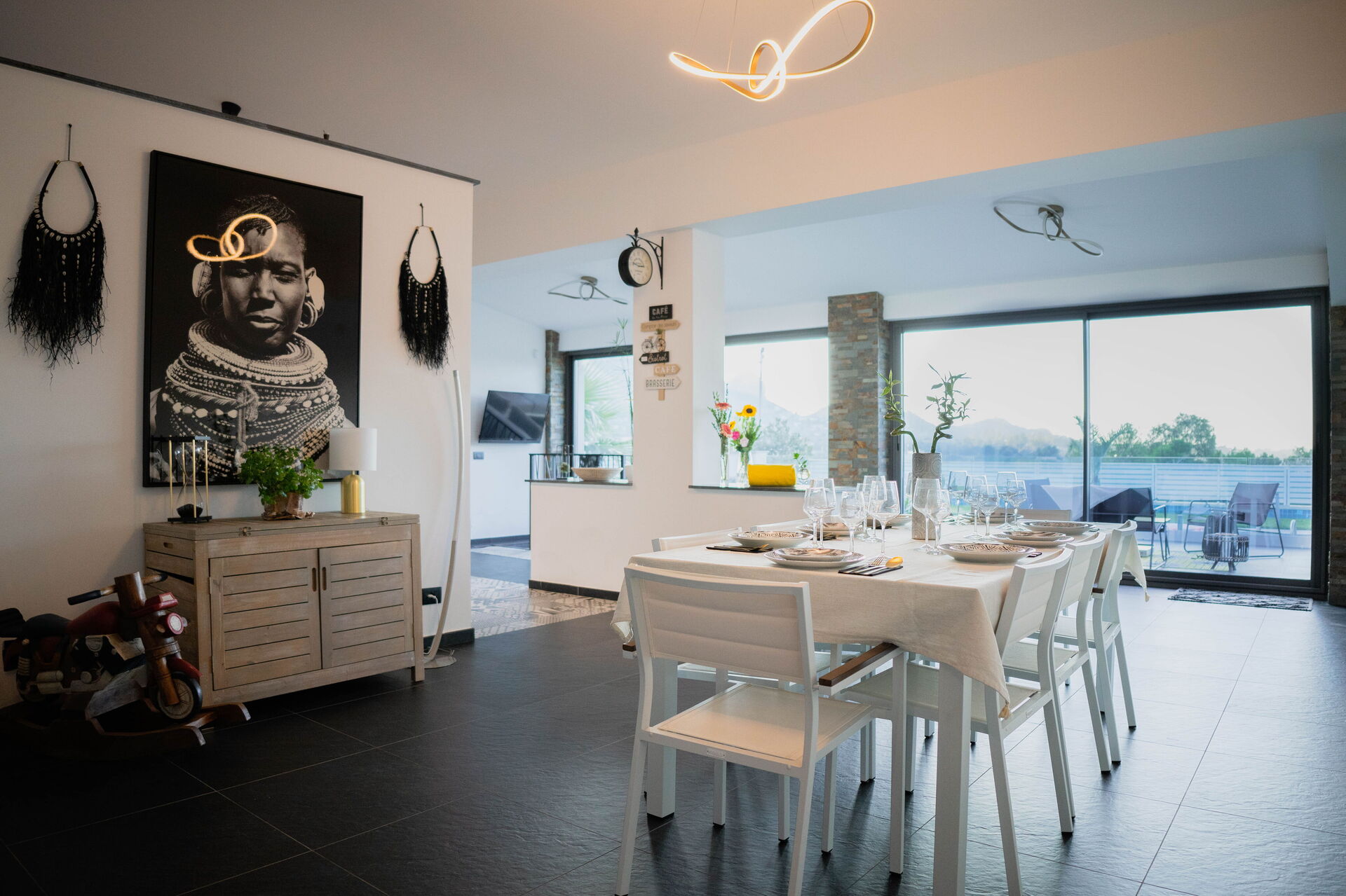 The villa is stunning the photos dont do it justice. It is a bit out the way which is perfect if you want somewhere quiet and private but you definitely need a car as getting a taxi was near impossible The kitchen has everything you could need and everything is so well planned out. cannot recommend enough