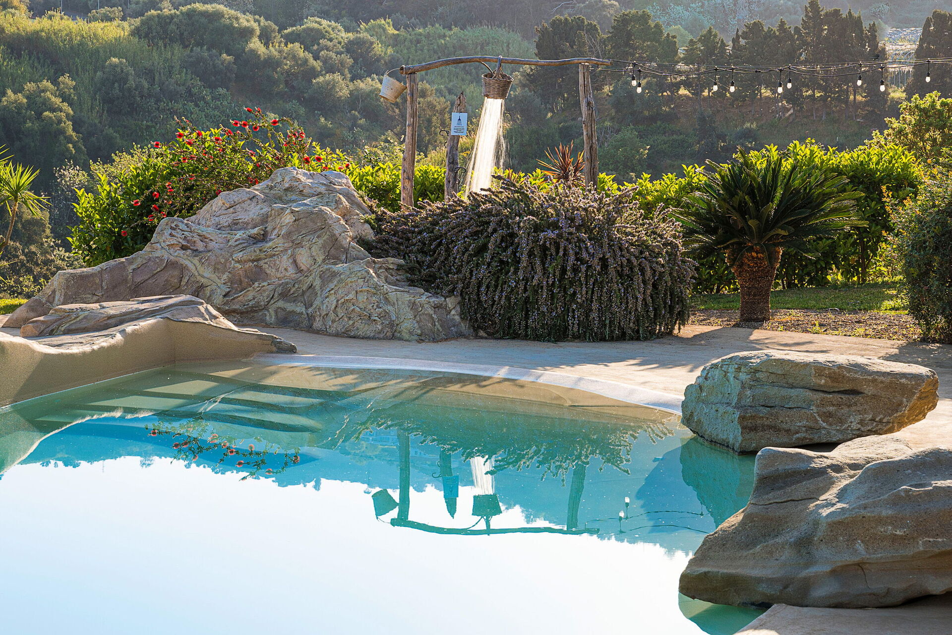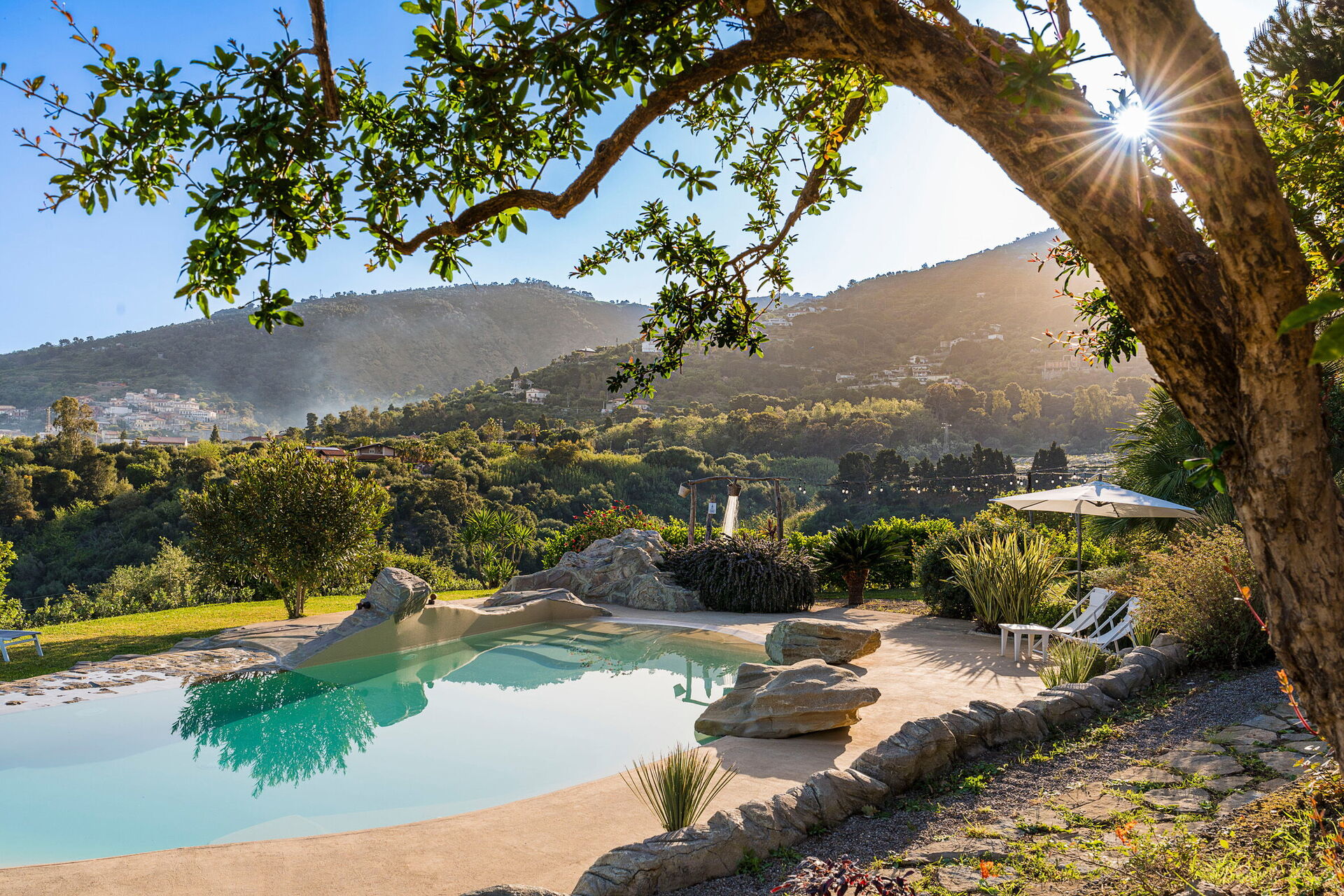 Semesterhuset har två våningar, stor terrass och kan rymma upp till 10 personer. I trädgården finns en exklusiv pool, som är naturligt byggd bland klipporna.