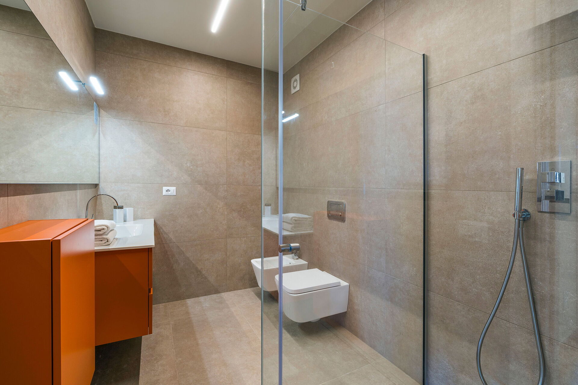 Panoramavardagsrum (TV) med matplats, kök (spishäll, ugn, frys, kylskåp, diskmaskin, kaffemaskin, brödrost), 1 tvåbäddsrum (luftkonditionering), badrum med dusch, 2 dubbelrum (luftkonditionering) med en-suite badrum med dusch