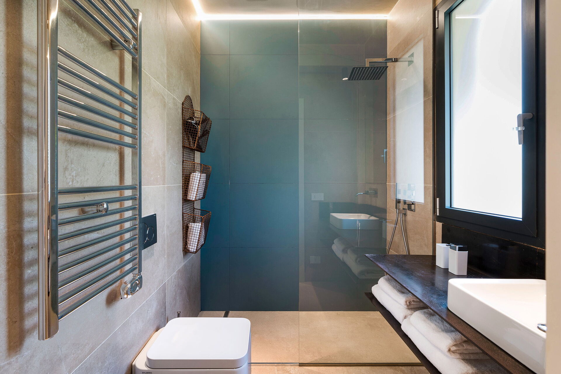 Panoramavardagsrum (TV) med matplats, kök (spishäll, ugn, frys, kylskåp, diskmaskin, kaffemaskin, brödrost), 1 tvåbäddsrum (luftkonditionering), badrum med dusch, 2 dubbelrum (luftkonditionering) med en-suite badrum med dusch