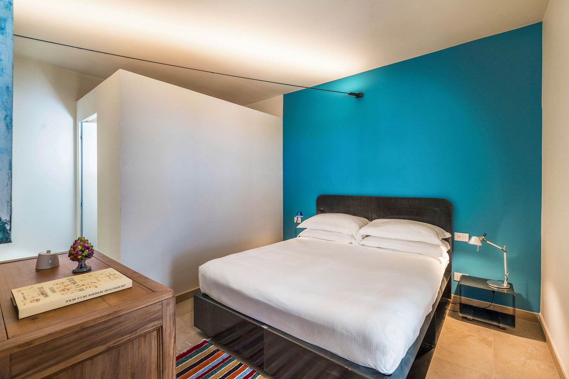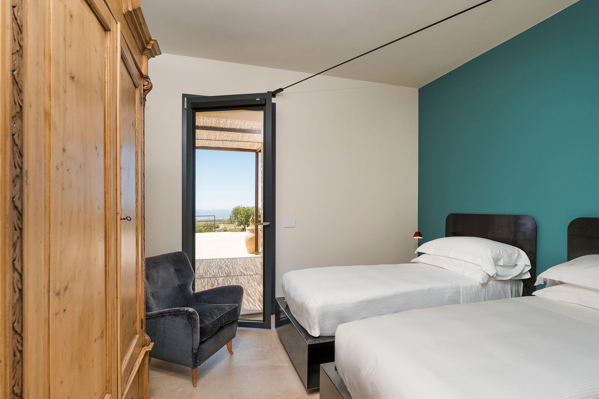 Vackra Gelso Bianco har plats för upp till åtta personer i fyra luftkonditionerade sovrum, 3 sovrum i huvudbyggnaden och 1 i annexet.
