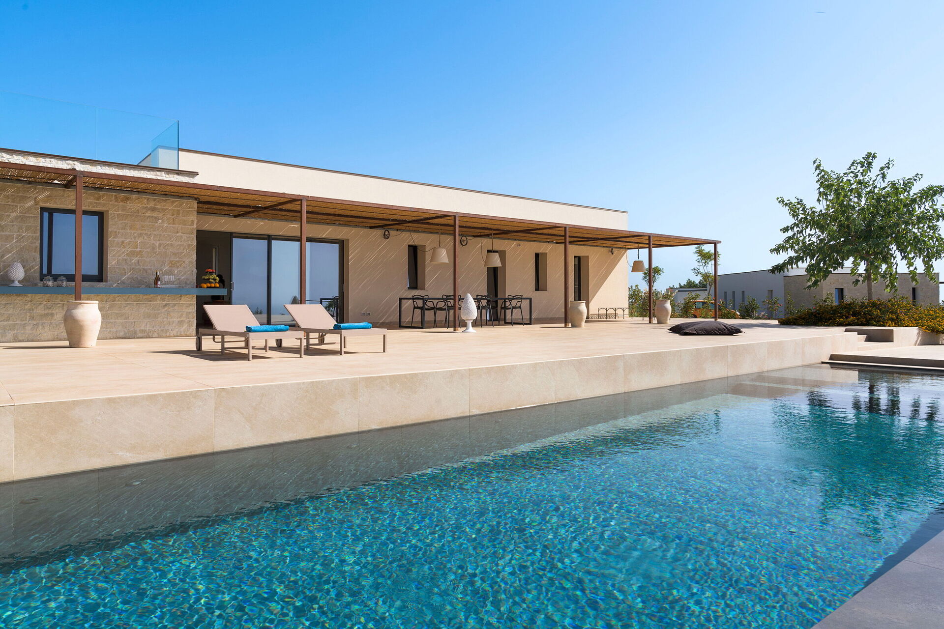 Exklusivt semesterhus i utkanten av Scicli (spektakulär barockstad på UNESCO:s världsarvslista) i ett lugnt och naturskönt läge med fantastisk utsikt över det vackra landskapet, landsbygden och havet, både från poolen och från de rymliga terrasserna.