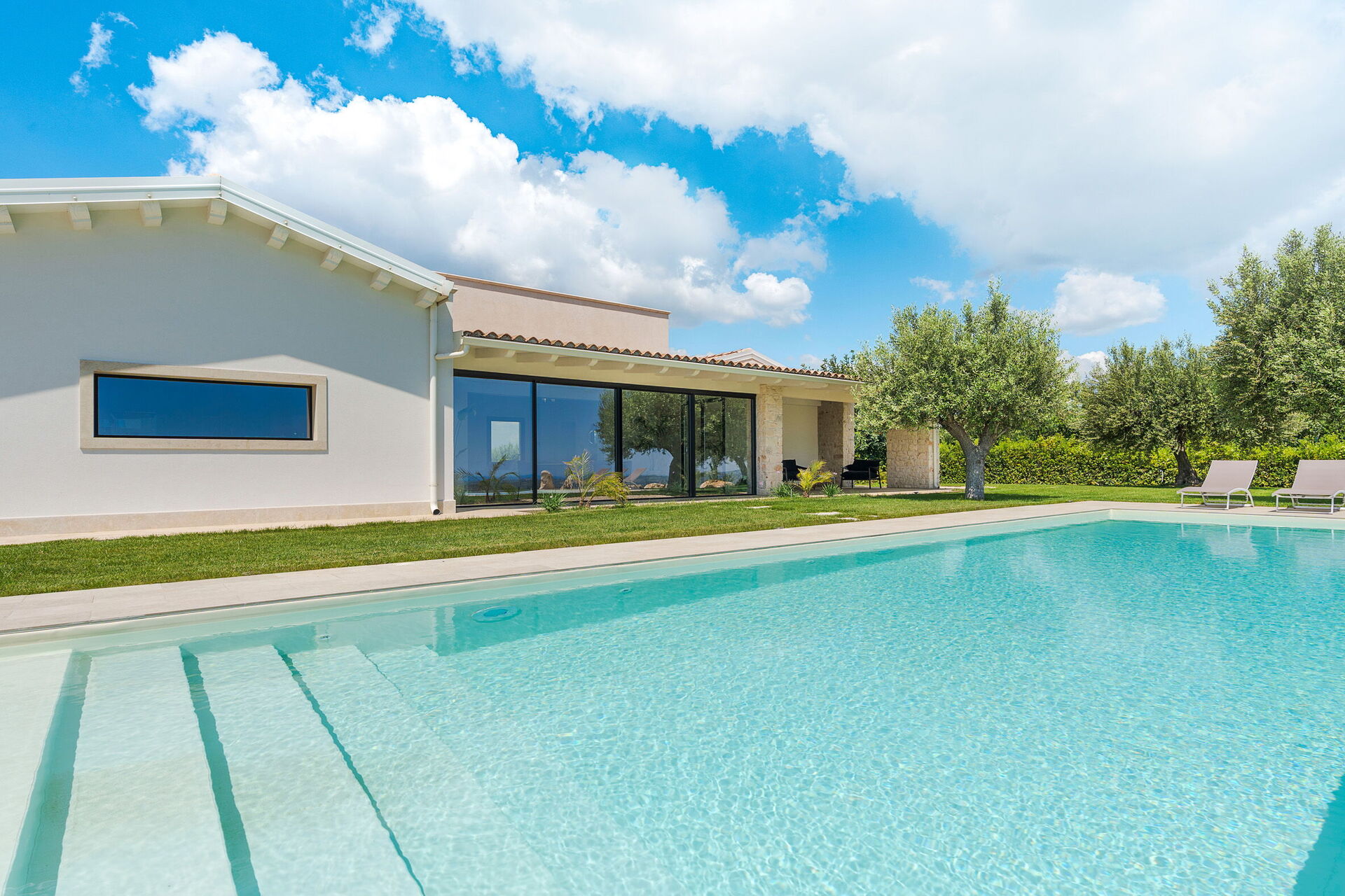Huset ligger harmoniskt i det vackra, rustika sicilianska landskapet. Netina Domus har en välskött trädgård med en härlig saltvattenpool och erbjuder stora, möblerade utomhusområden som verandan där man kan njuta av måltider utomhus.