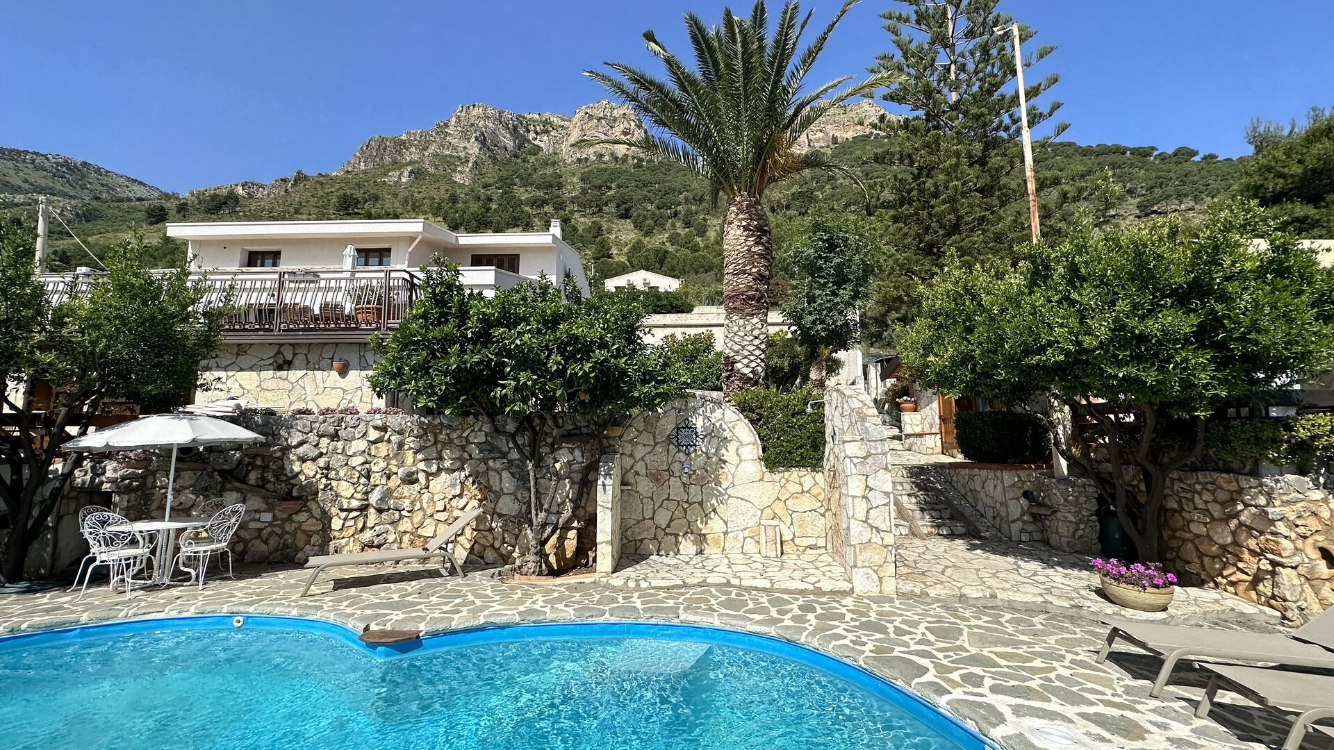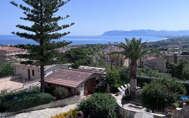 Trevlig fastighet med semesterlägenheter utanför den vackra kuststaden Castellammare del Golfo på Sicilien Fastigheten har en trevlig pool och ligger i lugna omgivningar med panoramautsikt över Castellammare-bukten. Området är perfekt för att utforska Tonnara di Scopello och naturreservatet Zingaro med sina många vikar och stränder.