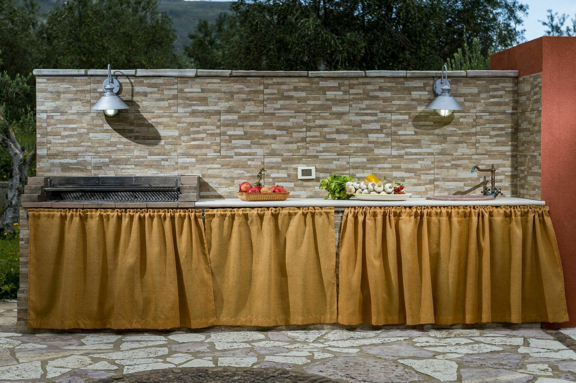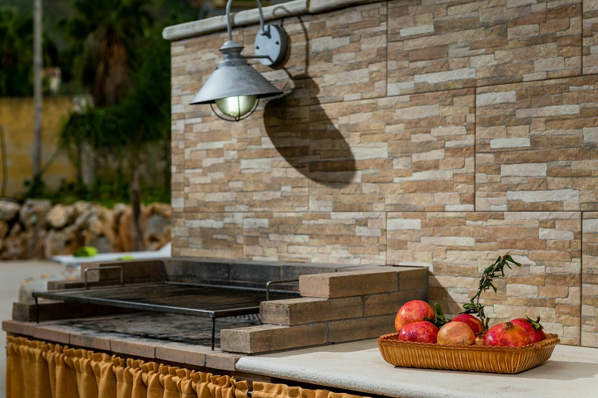 Ett utomhuskök med grill tillåter gäster att laga måltider ute samtidigt som man har en fantastisk utsikt över den omgivande landsbygden.