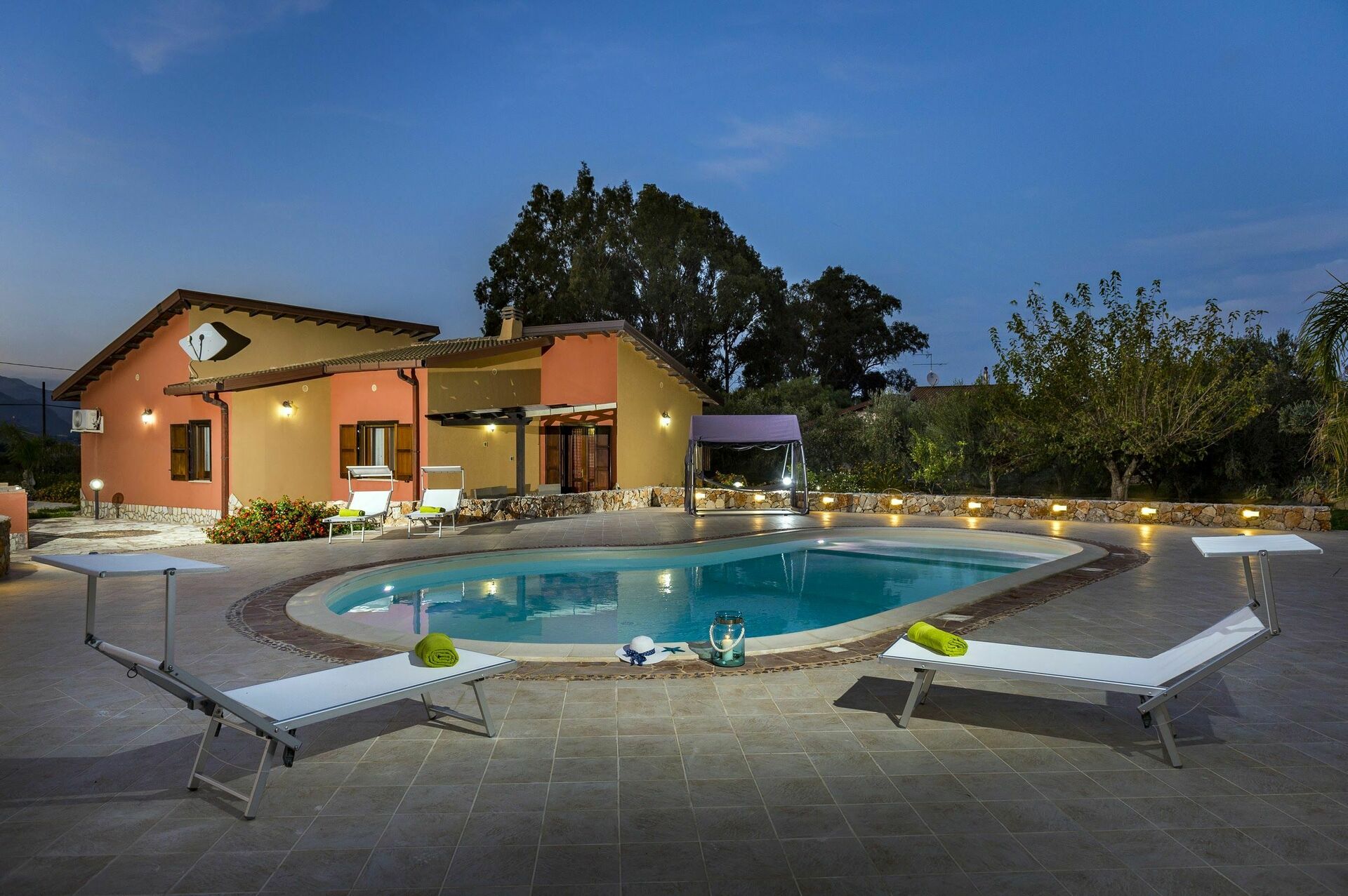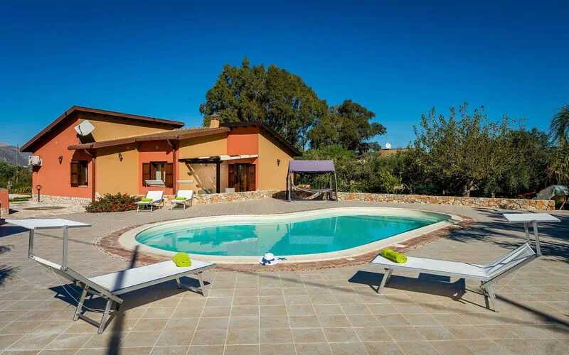 Avstånd: Sjön 5 km, Castellammare del Golfo (butiker, restauranger, snabbköp) 6 km, Palermo (flygplats) 50 km.