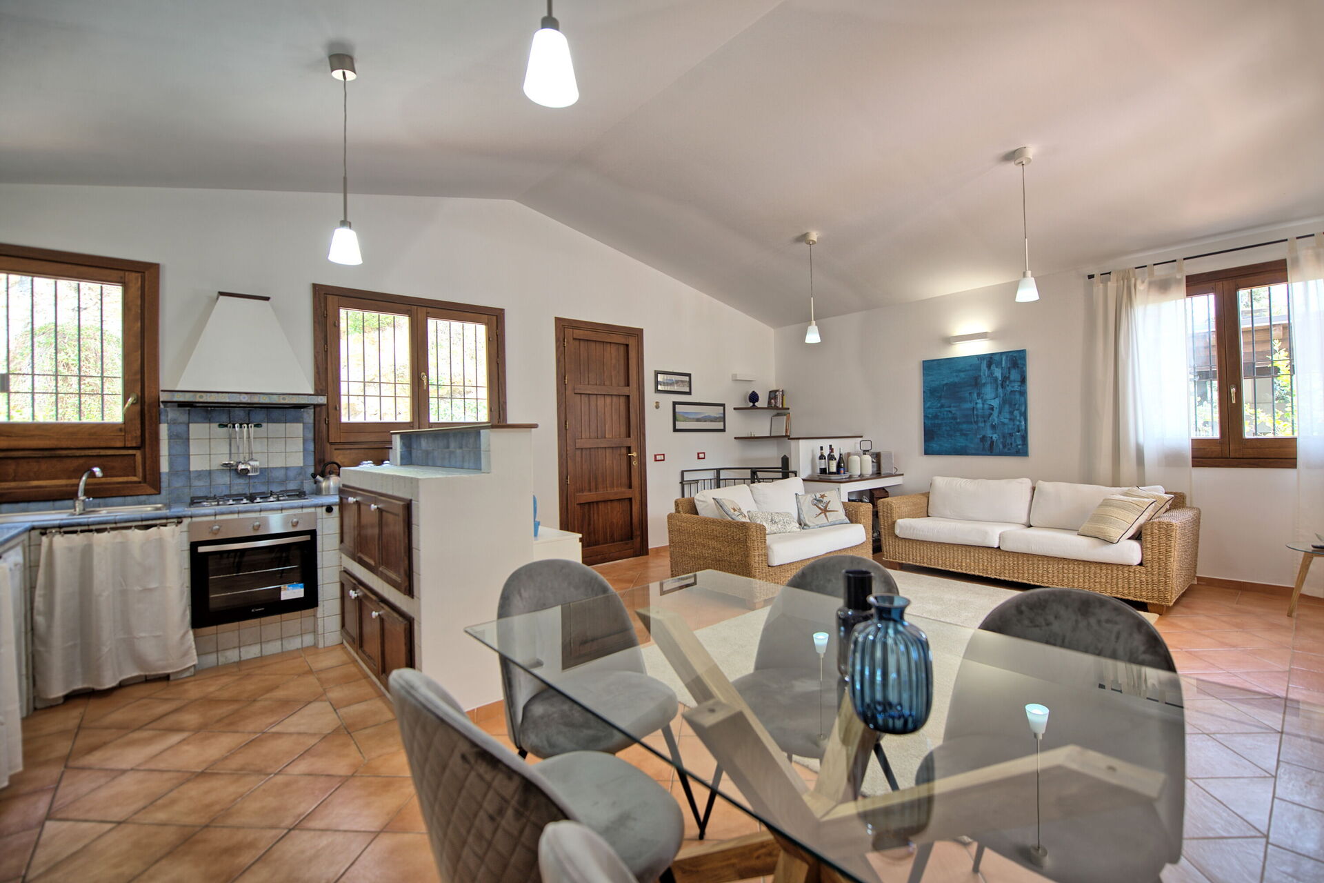 Avstånd: Guidaloca strand (klappersten) 2.6 km, Scopello (alla affärer) 3 km, Castellammare del Golfo (sandstrand) 13 km, Segesta 30 km, Erice 32 km, Trapani 32 km, San Vito Lo Capo 39 km, Palermo airport 55 km, Selinunte 72 km, Palermo 76 km.