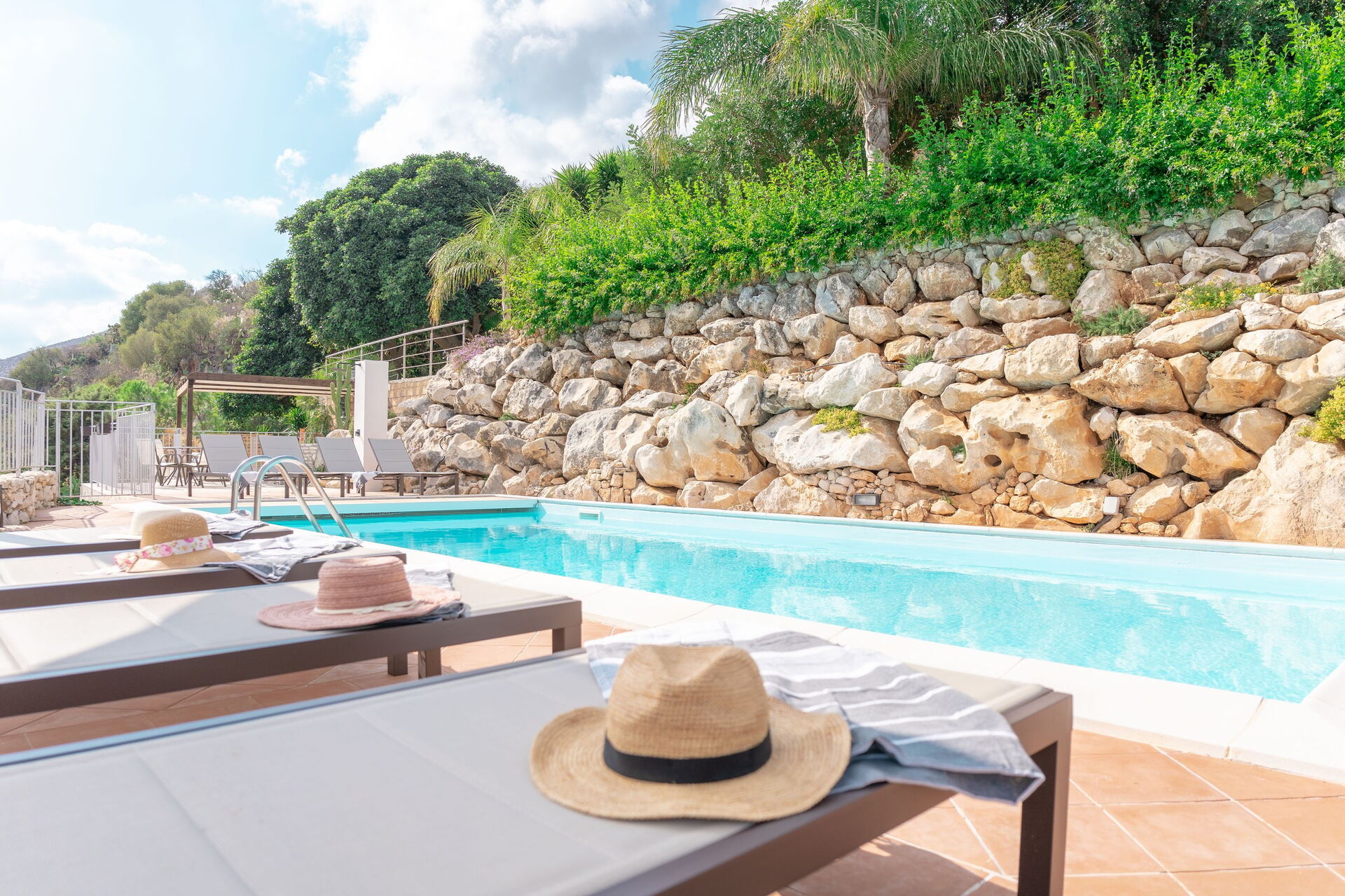 Läget är spektakulärt med panoramautsikt över den sicilianska landsbygden och havet, som kan avnjutas från både poolen och de rymliga terrasserna.