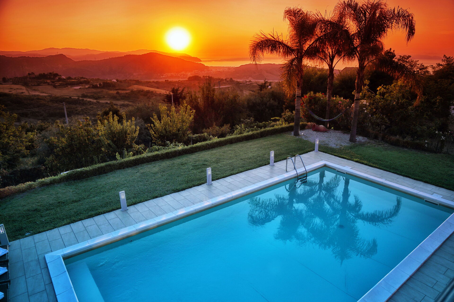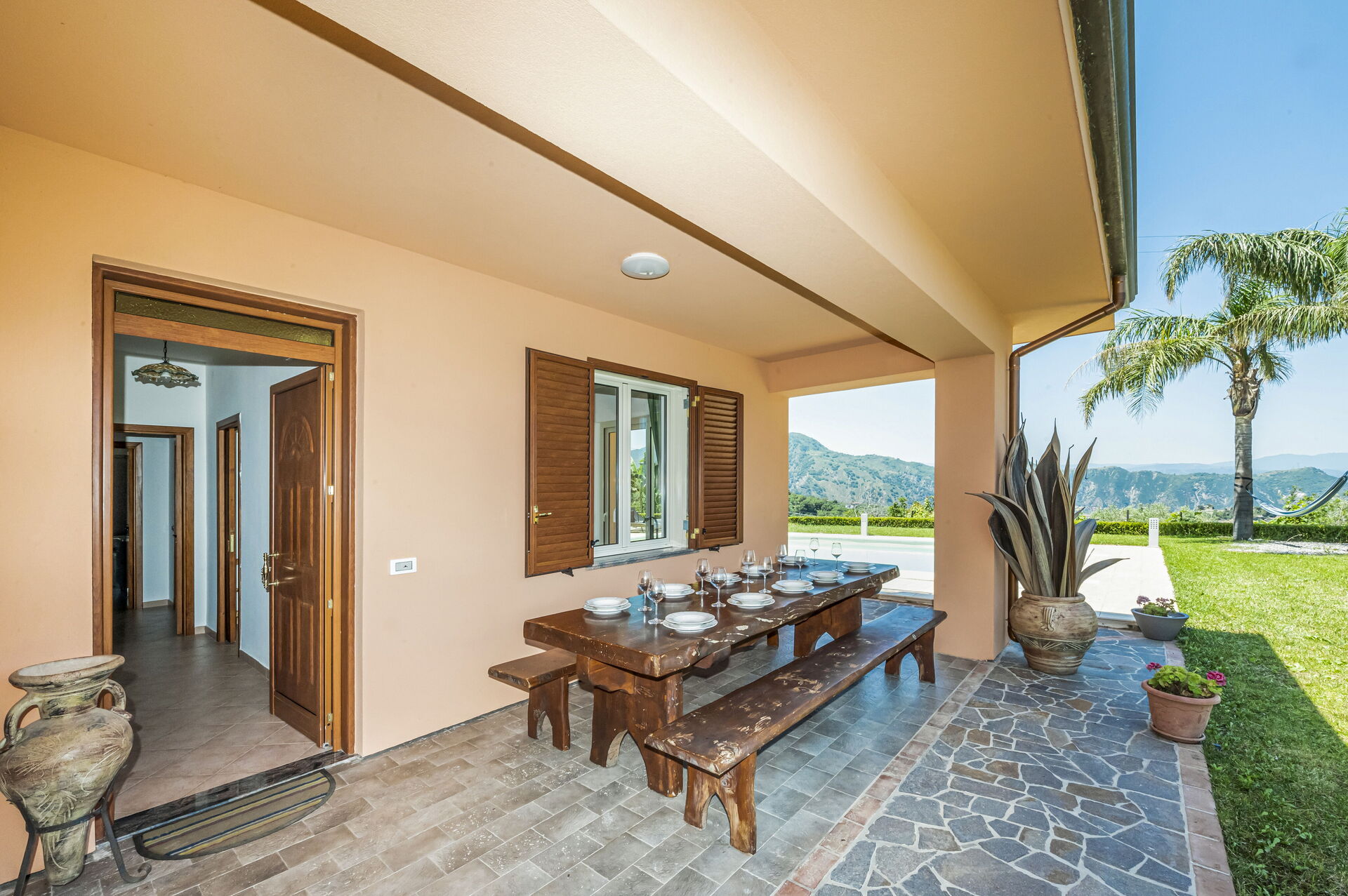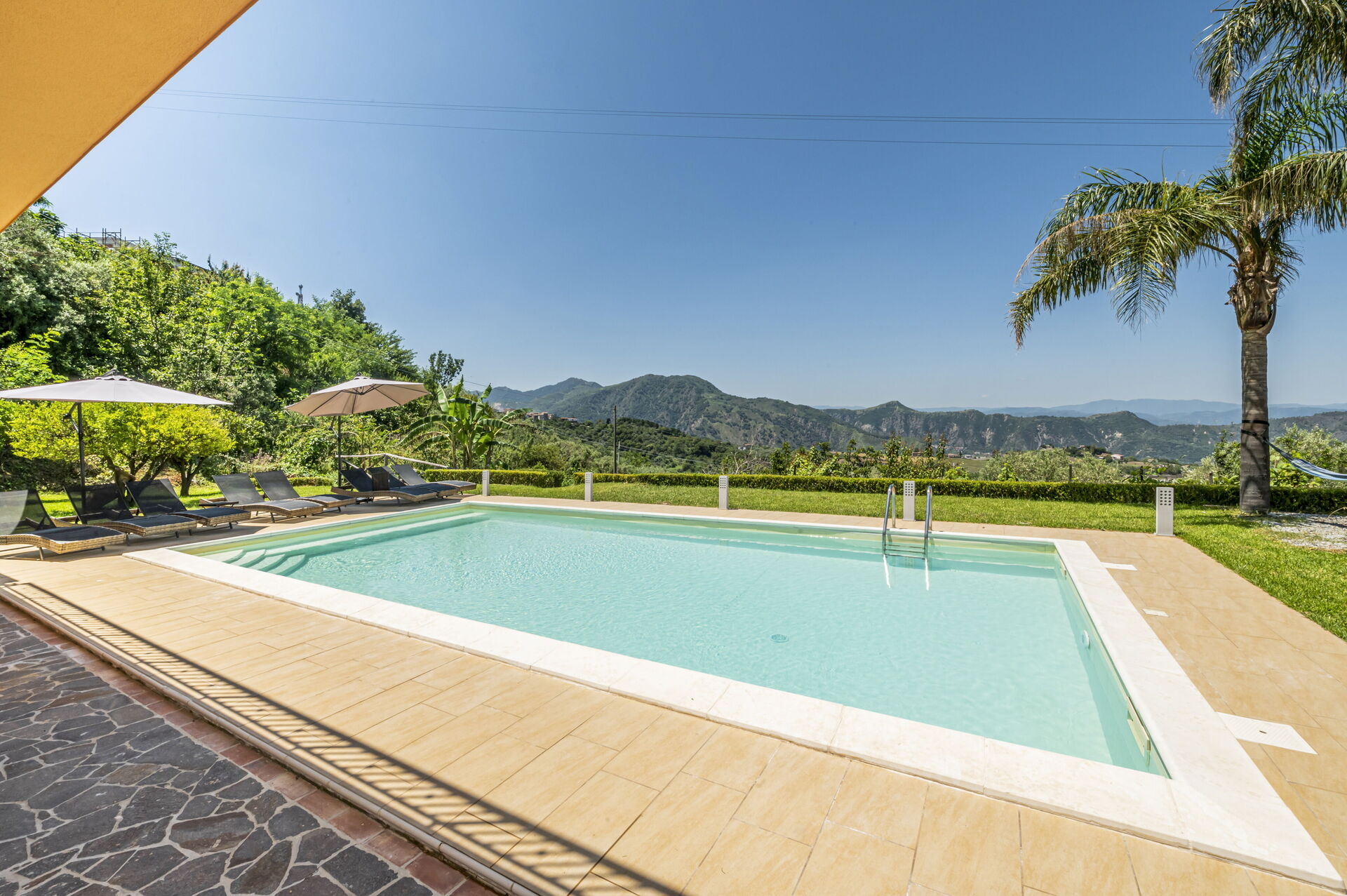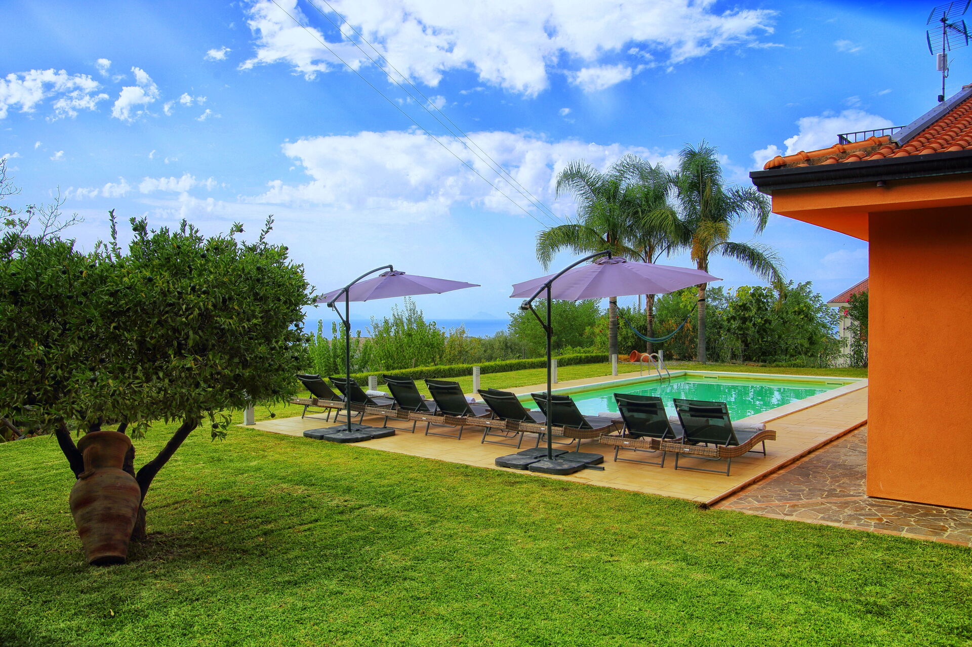 Uteområdet har en möblerad matplats under verandan, fullt utrustad grillplats och en pool med hydromassagedel och pooldäck med 8 solstolar, här finns många möjligheter att njuta av oförglömliga stunder under den sicilianska solen.