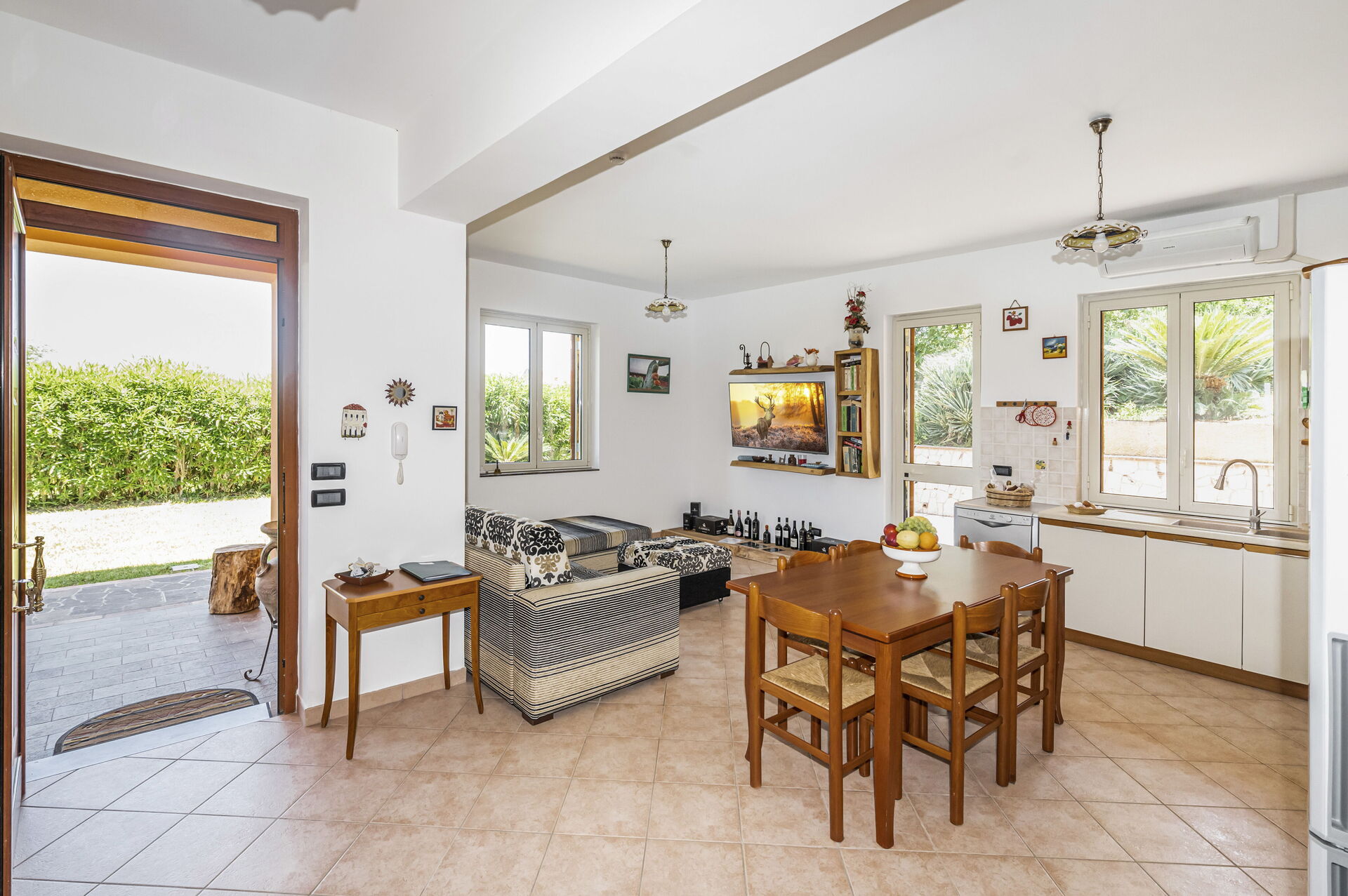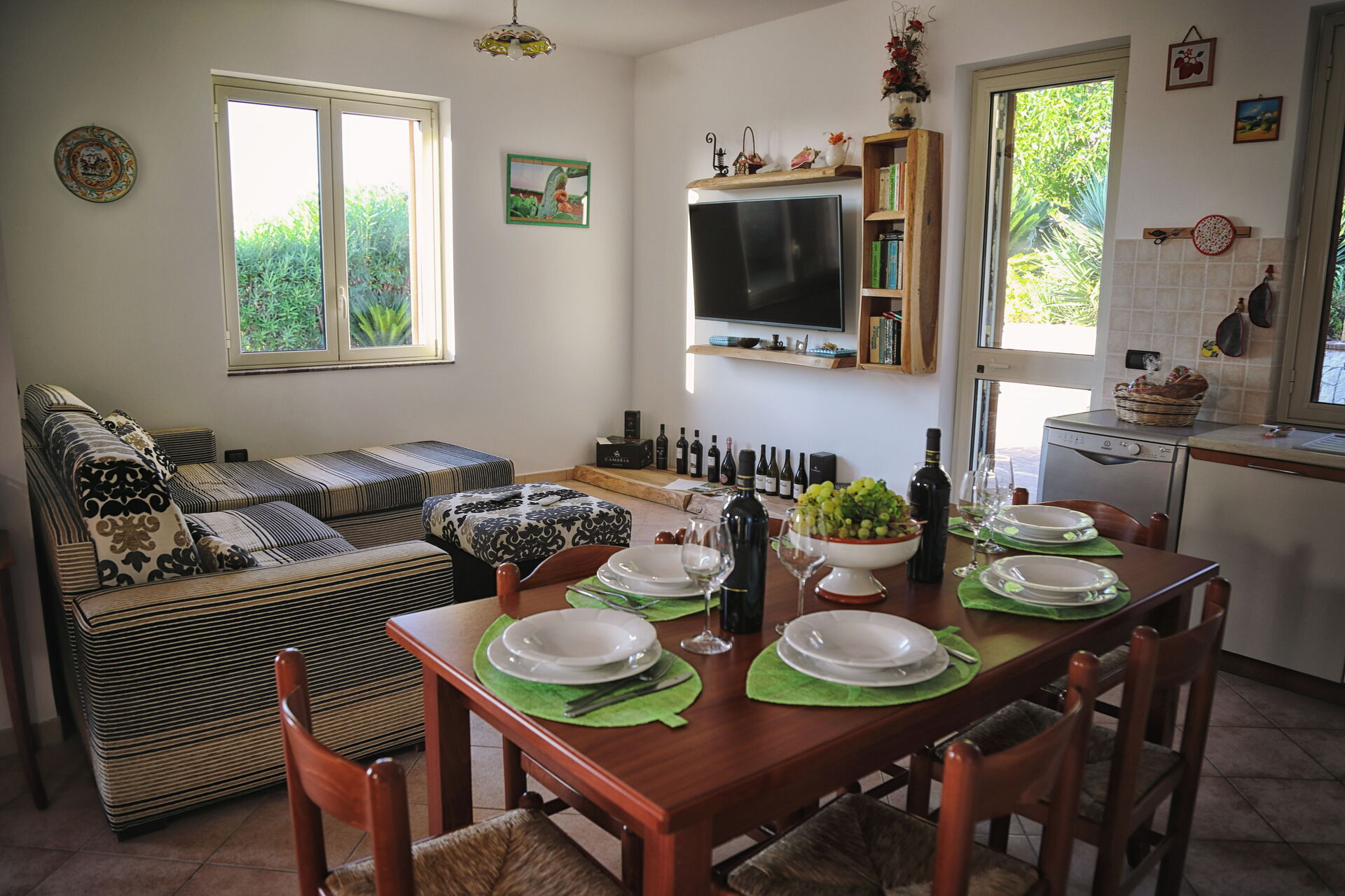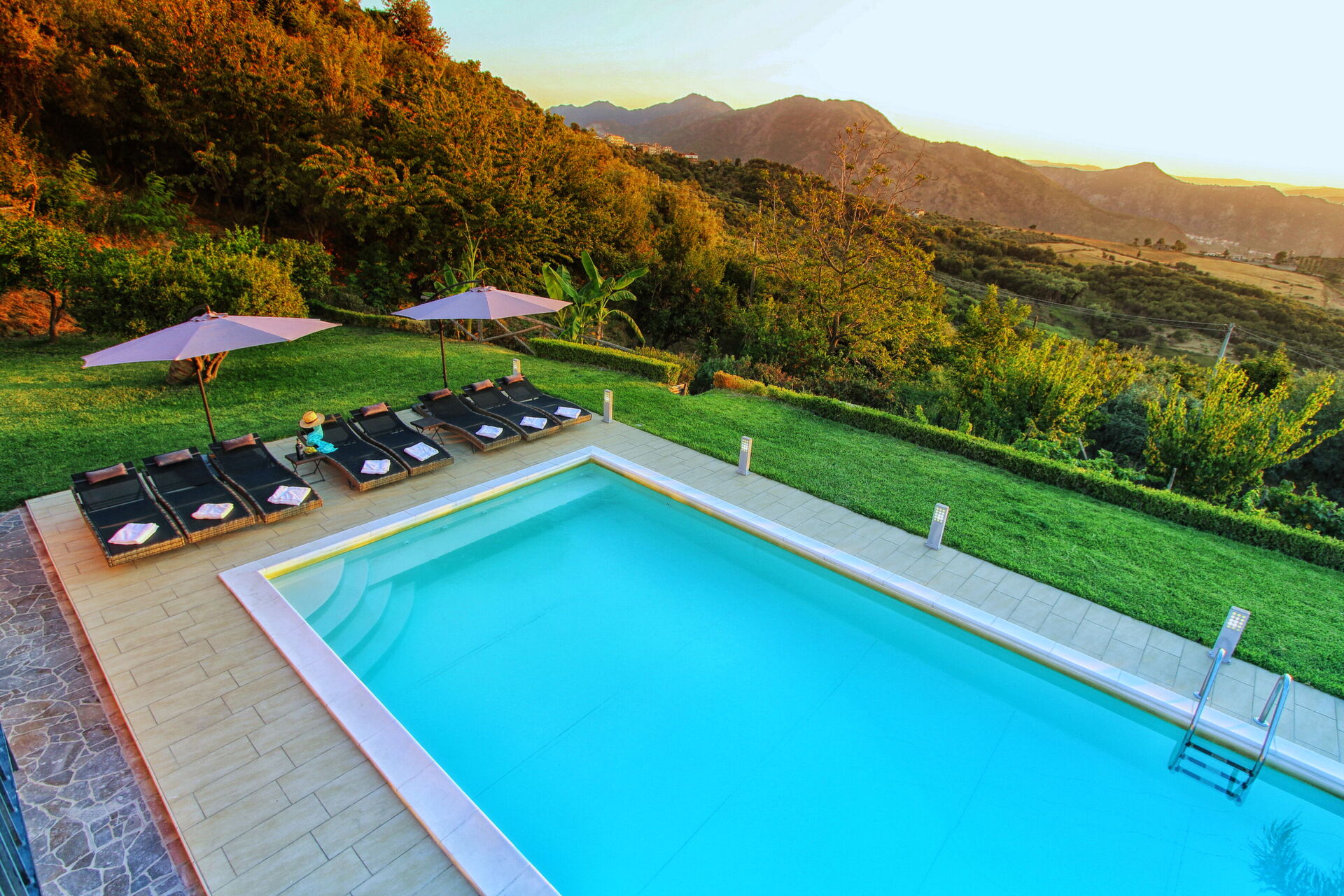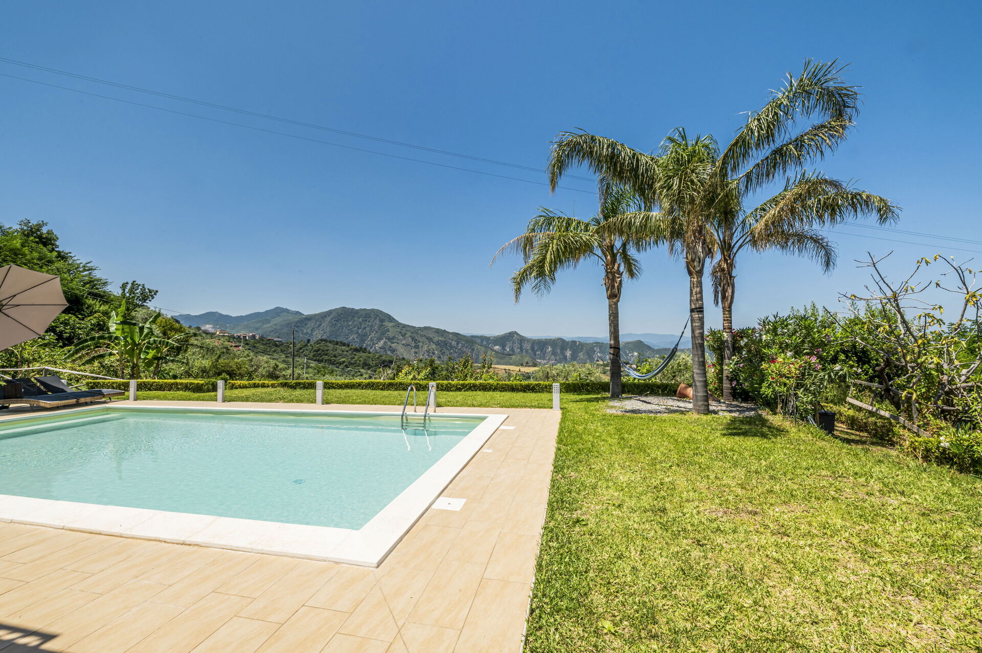 Uteområdet har en möblerad matplats under verandan, fullt utrustad grillplats och en pool med hydromassagedel och pooldäck med 8 solstolar, här finns många möjligheter att njuta av oförglömliga stunder under den sicilianska solen.