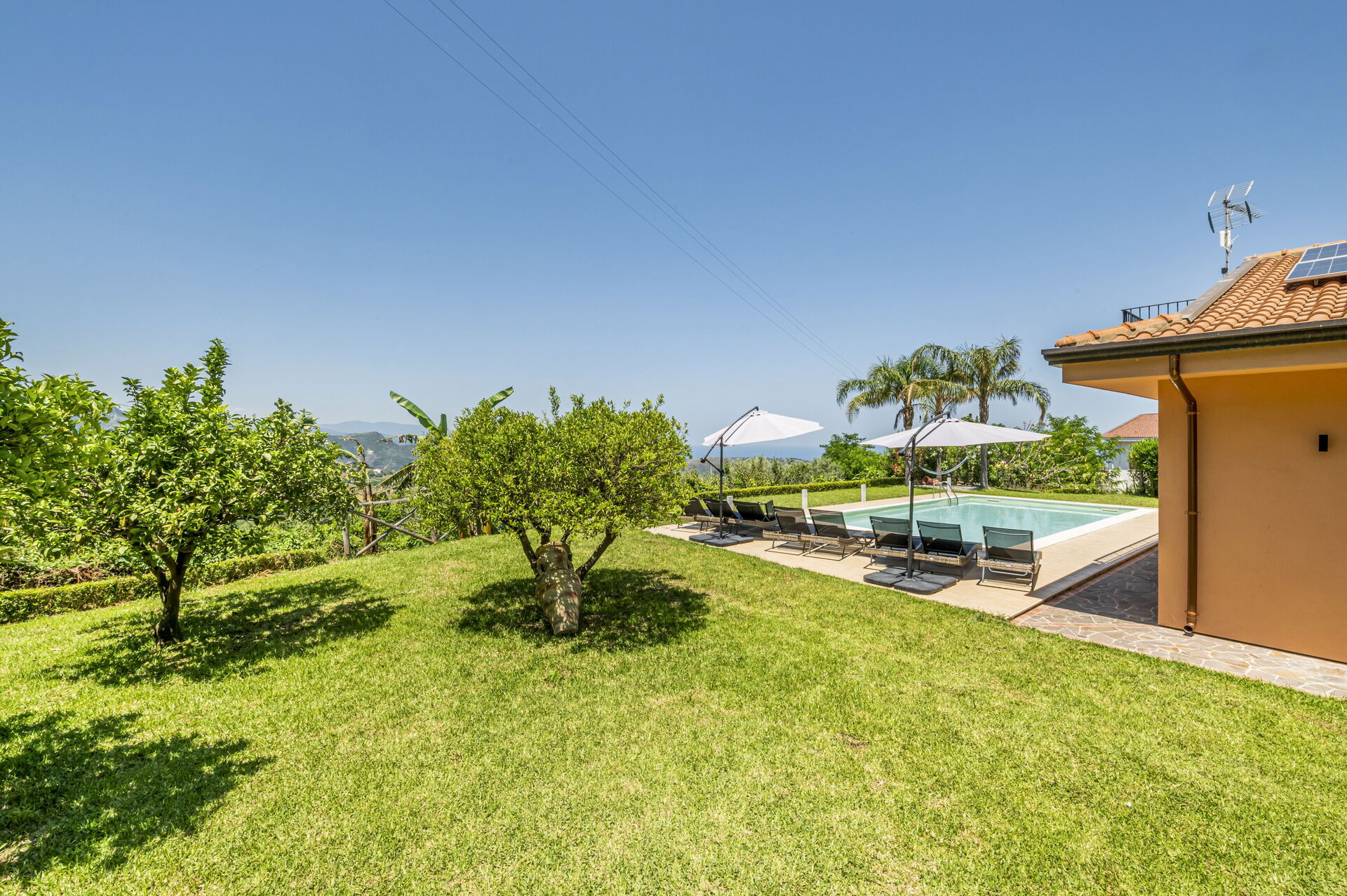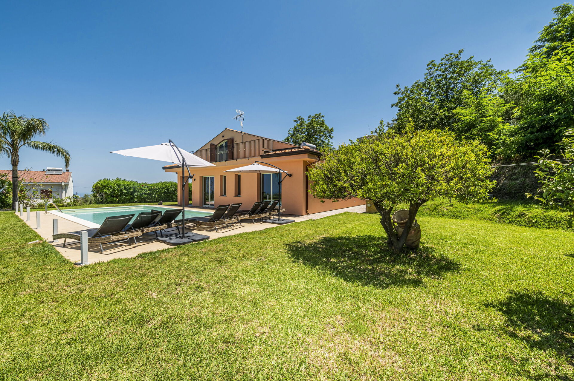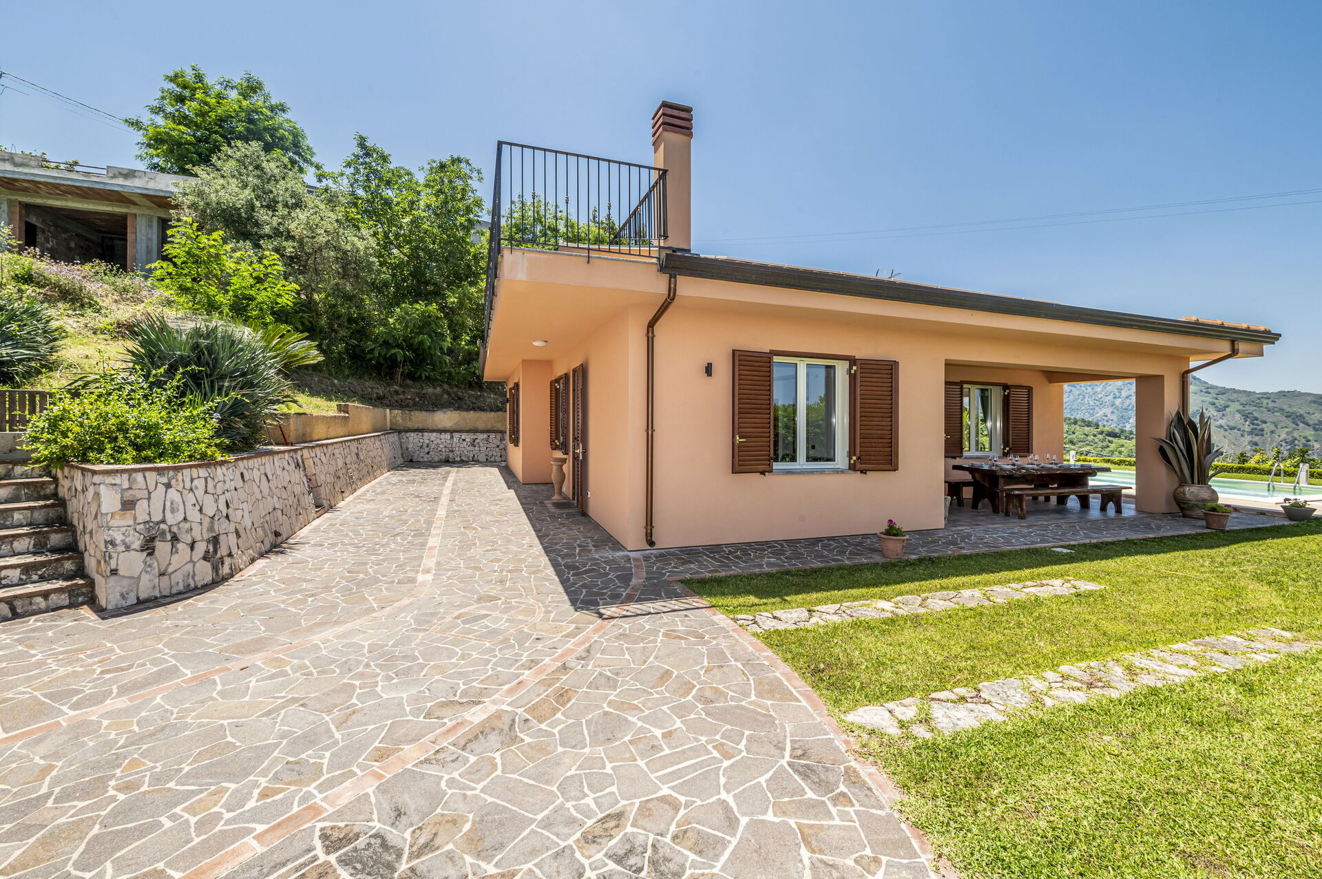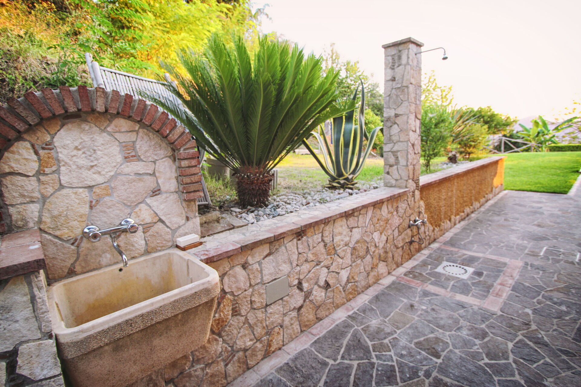 Uteområdet har en möblerad matplats under verandan, fullt utrustad grillplats och en pool med hydromassagedel och pooldäck med 8 solstolar, här finns många möjligheter att njuta av oförglömliga stunder under den sicilianska solen.