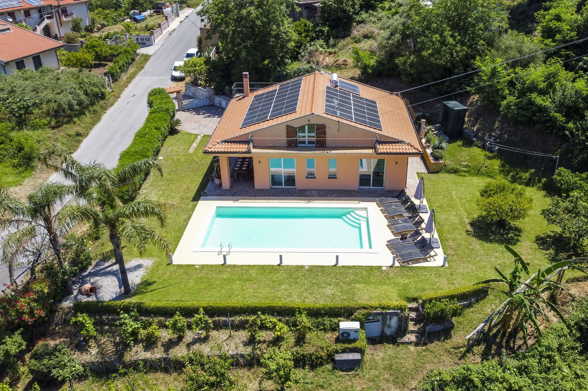 Villa Malu har spektakulär utsikt över de Eoliska öarna, är helt nedsänkt i grönska med fruktträd, palmer och månghundraåriga olivträd.