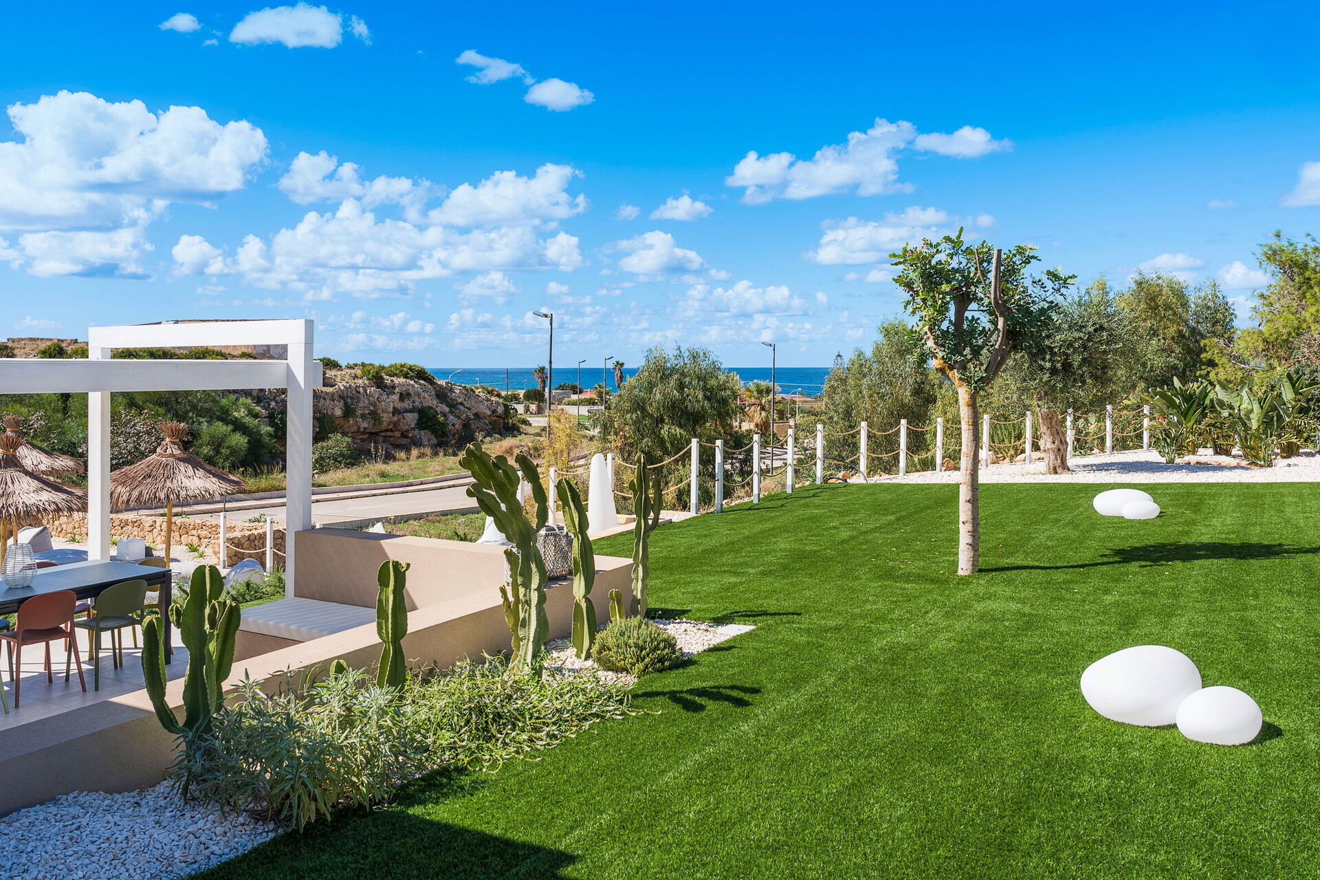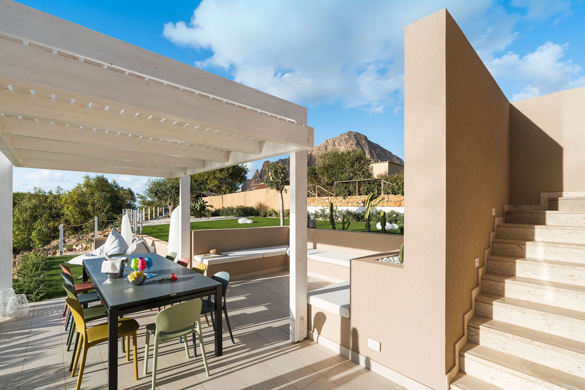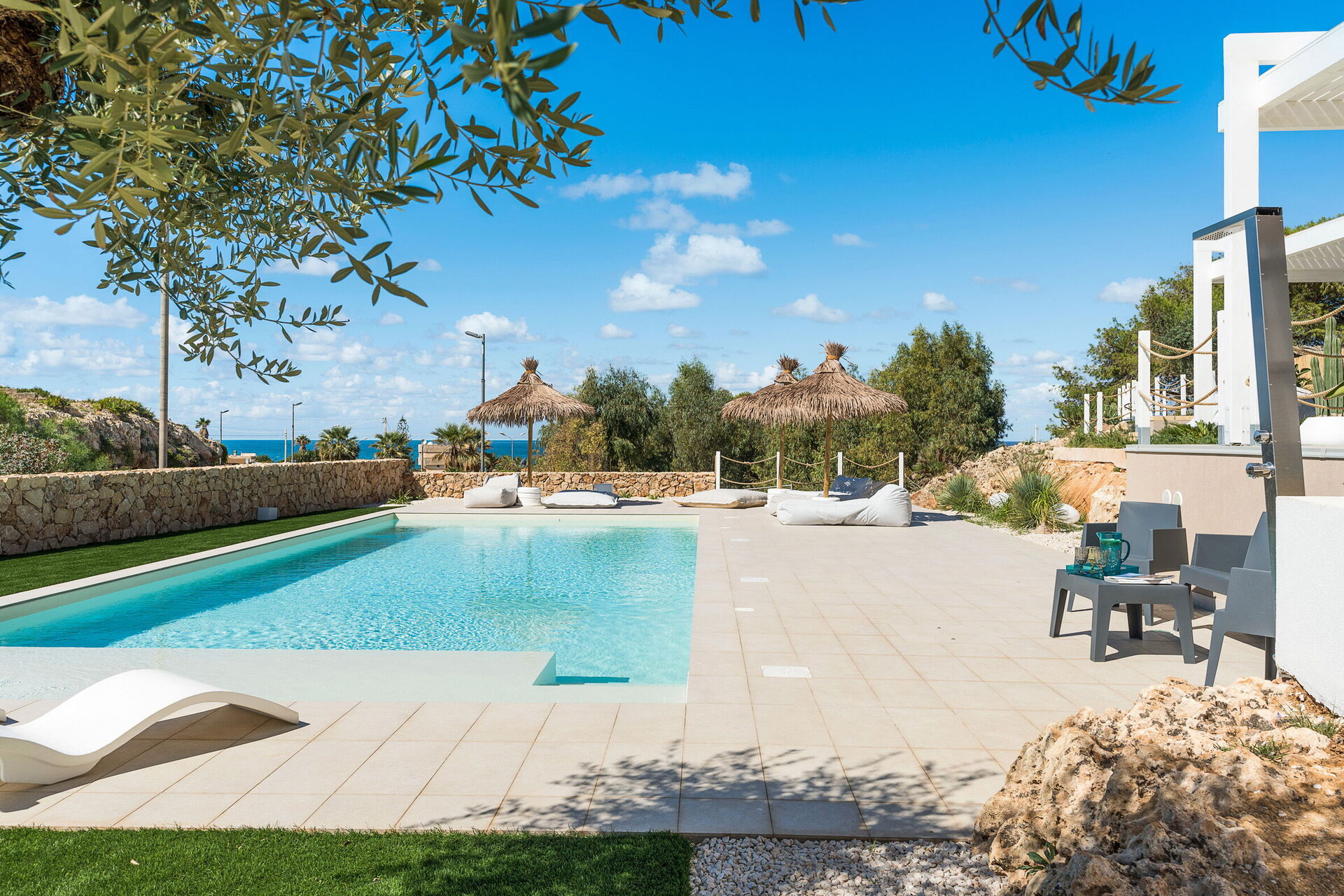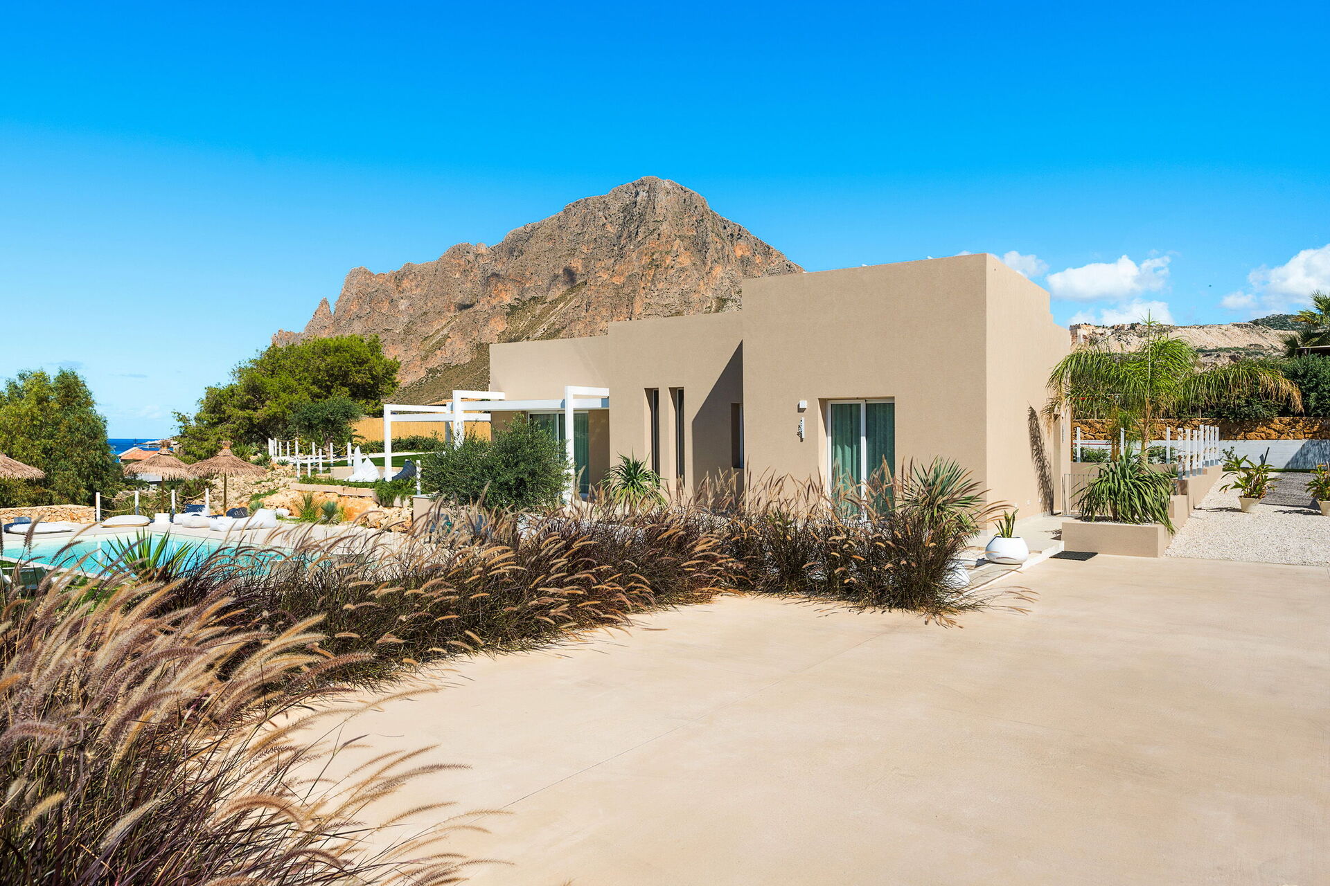 Villa Castalia är ett lyxigt semesterhus i den välkända kuststaden Cornino, halvvägs mellan San Vito Lo Capo och Trapani på Sicilien.