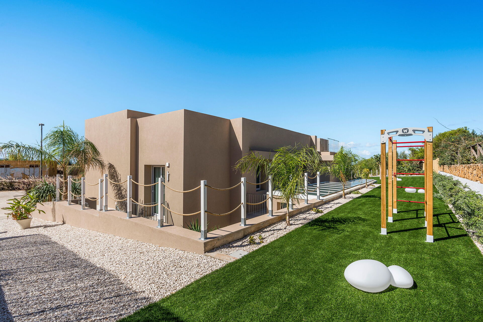 Denna tvåvåningsvillan erbjuder en modern inredning utrustad med alla bekvämligheter. Villan har 4 sovrum och rymliga gemensamma ytor, inklusive ett wellnessområde med ångbad och bastu. Villan kan bekvämt rymma upp till 8/10 personer.