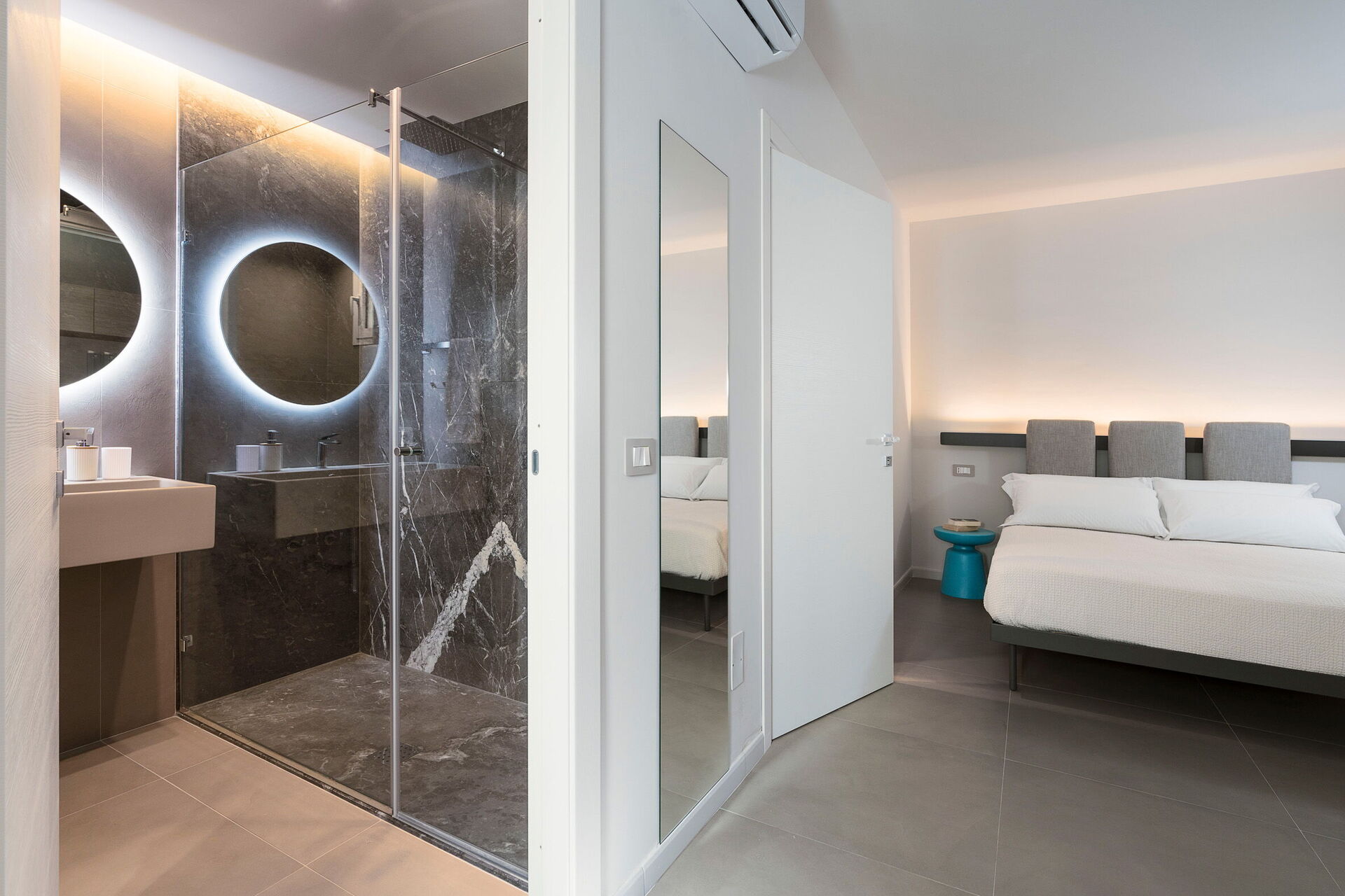 Det finns luftkonditionering i alla rum.