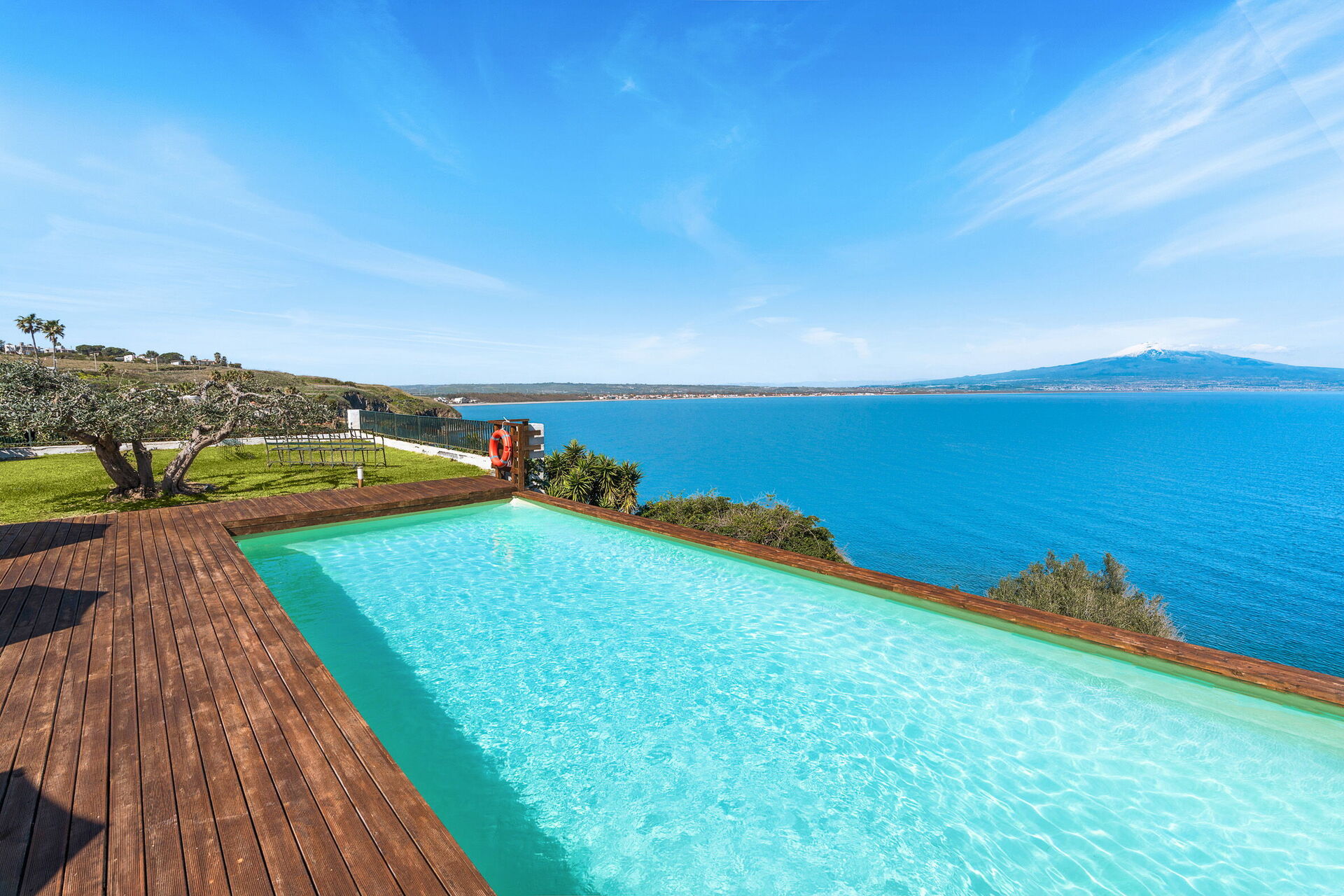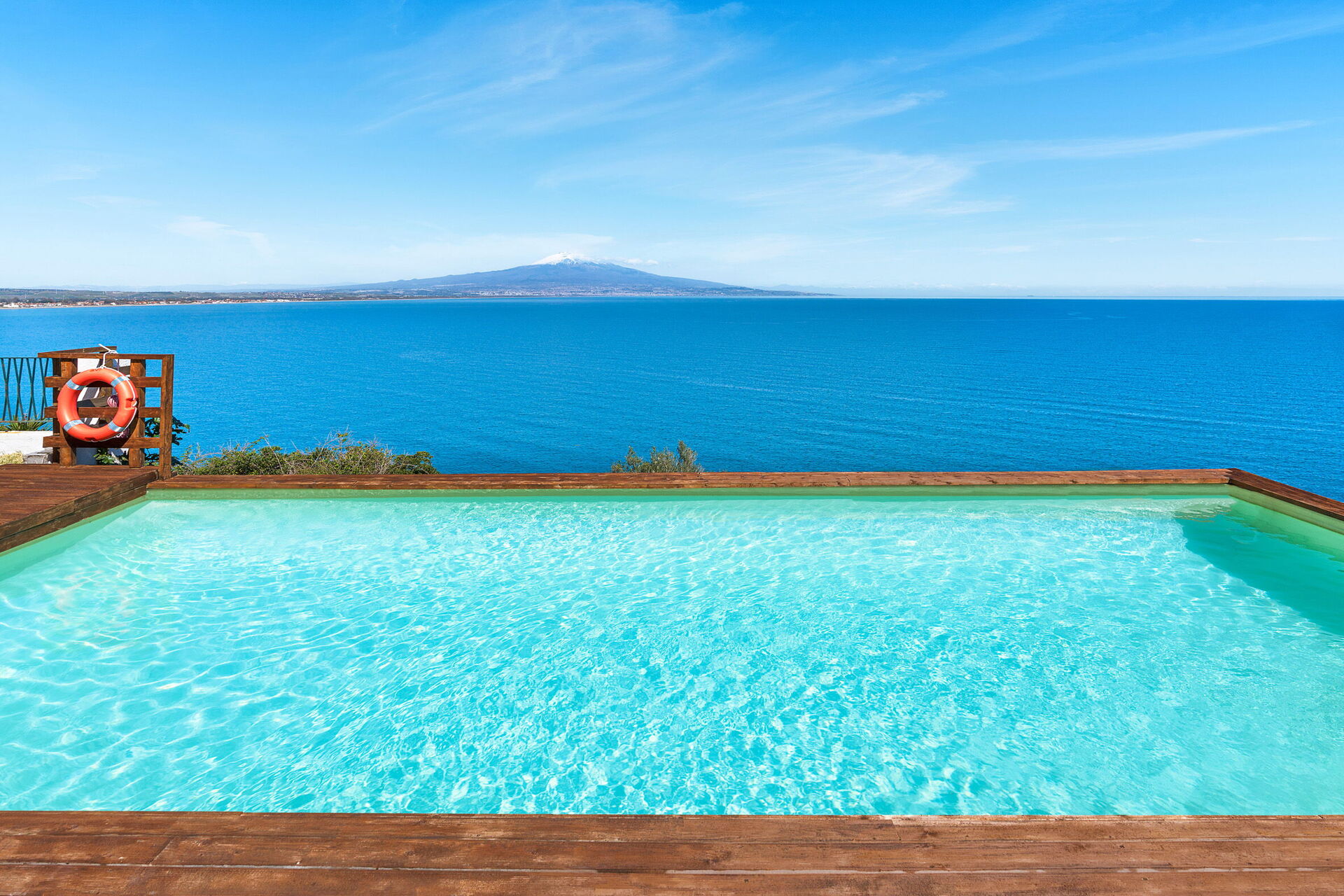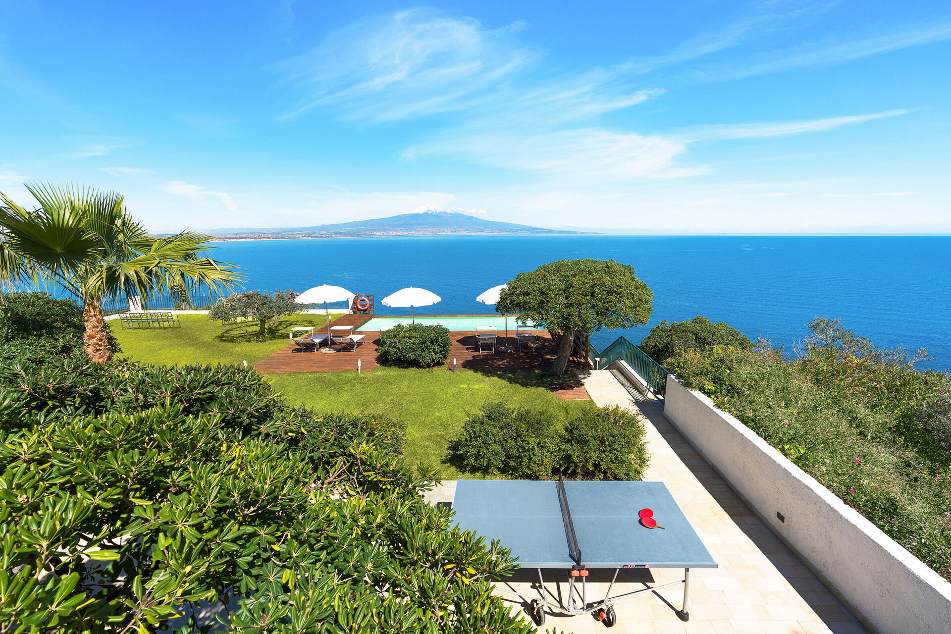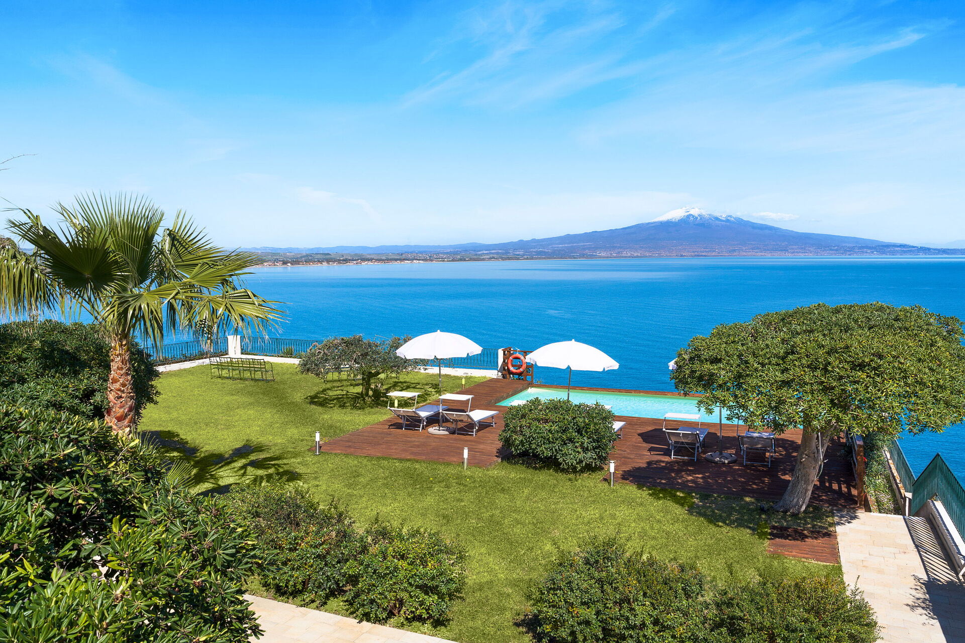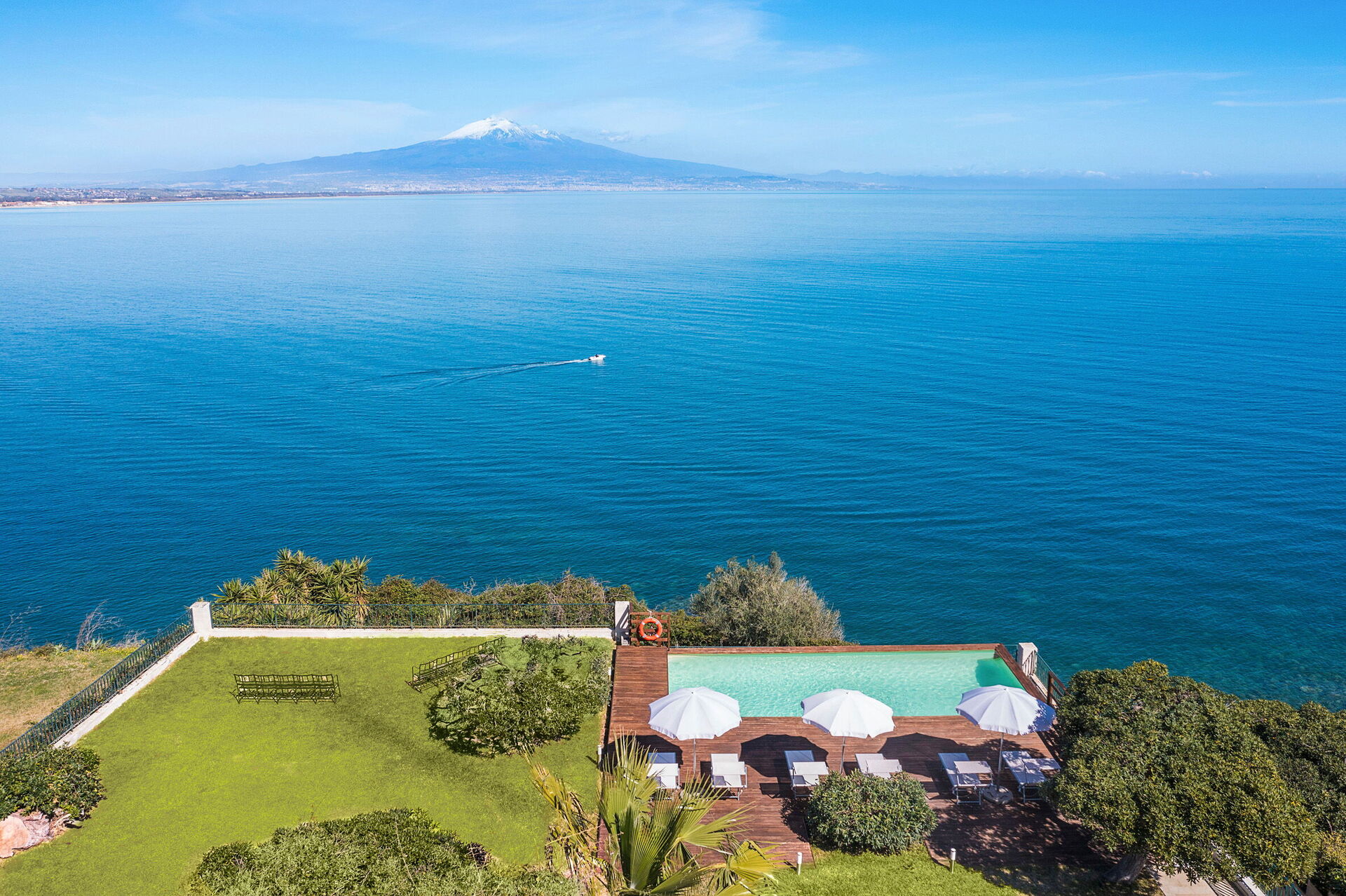 Med sitt läge på en klippa ovanför havet erbjuder fastigheten fullständig ro och bjuder på spektakulär utsikt över havet och Etna i fjärran.