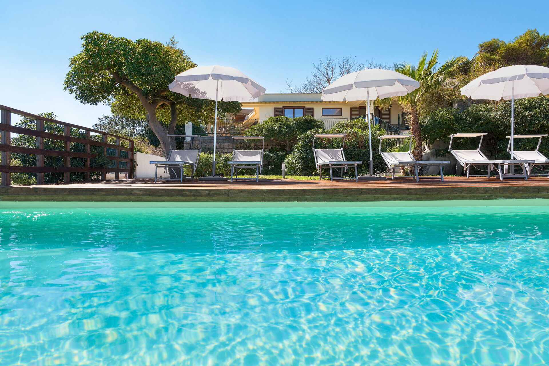 De stora solområdena och poolen med panoramautsikt gör detta semesterhus till den perfekta platsen för en avkopplande semester tillsammans med vänner eller familj under den varma sicilianska solen.