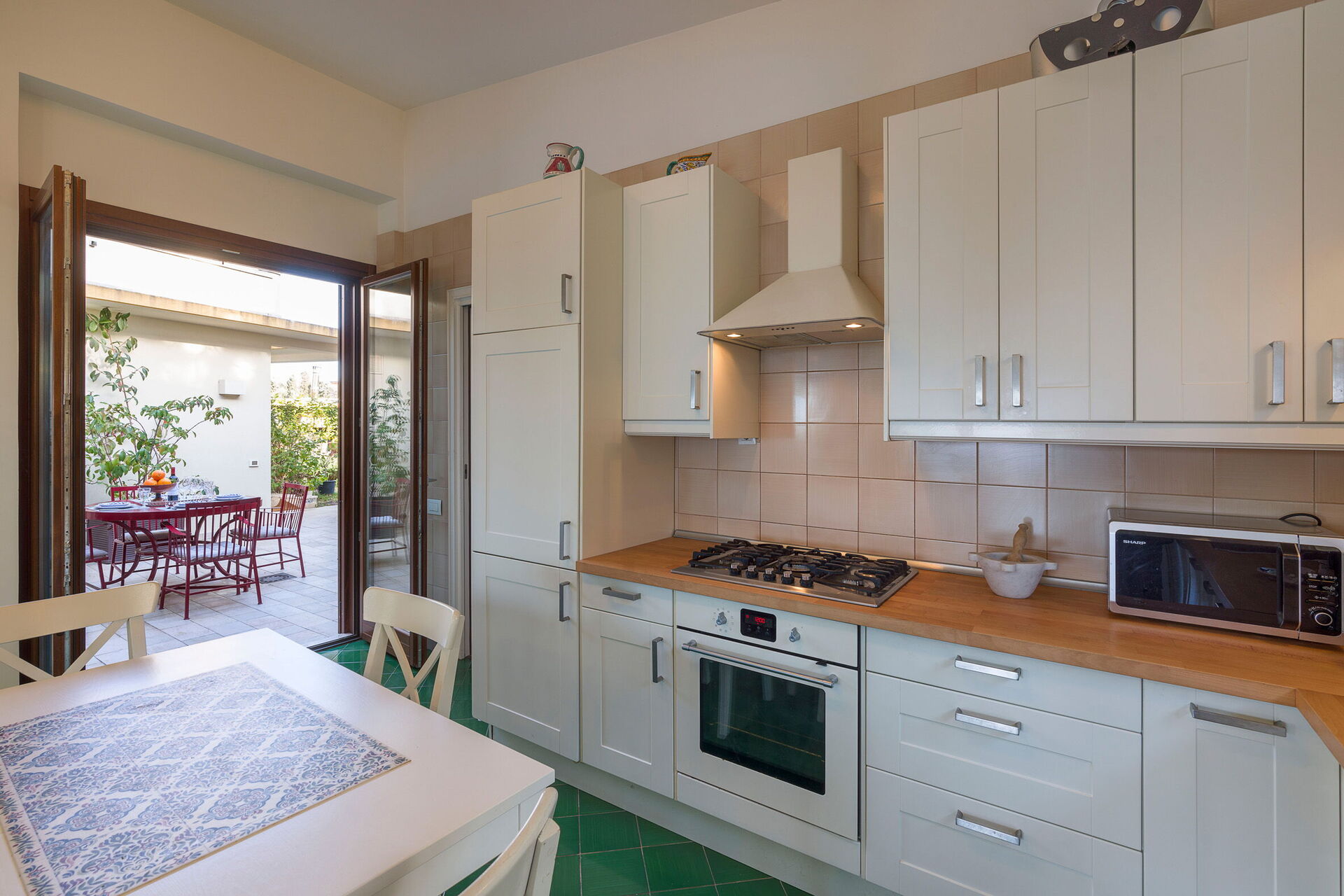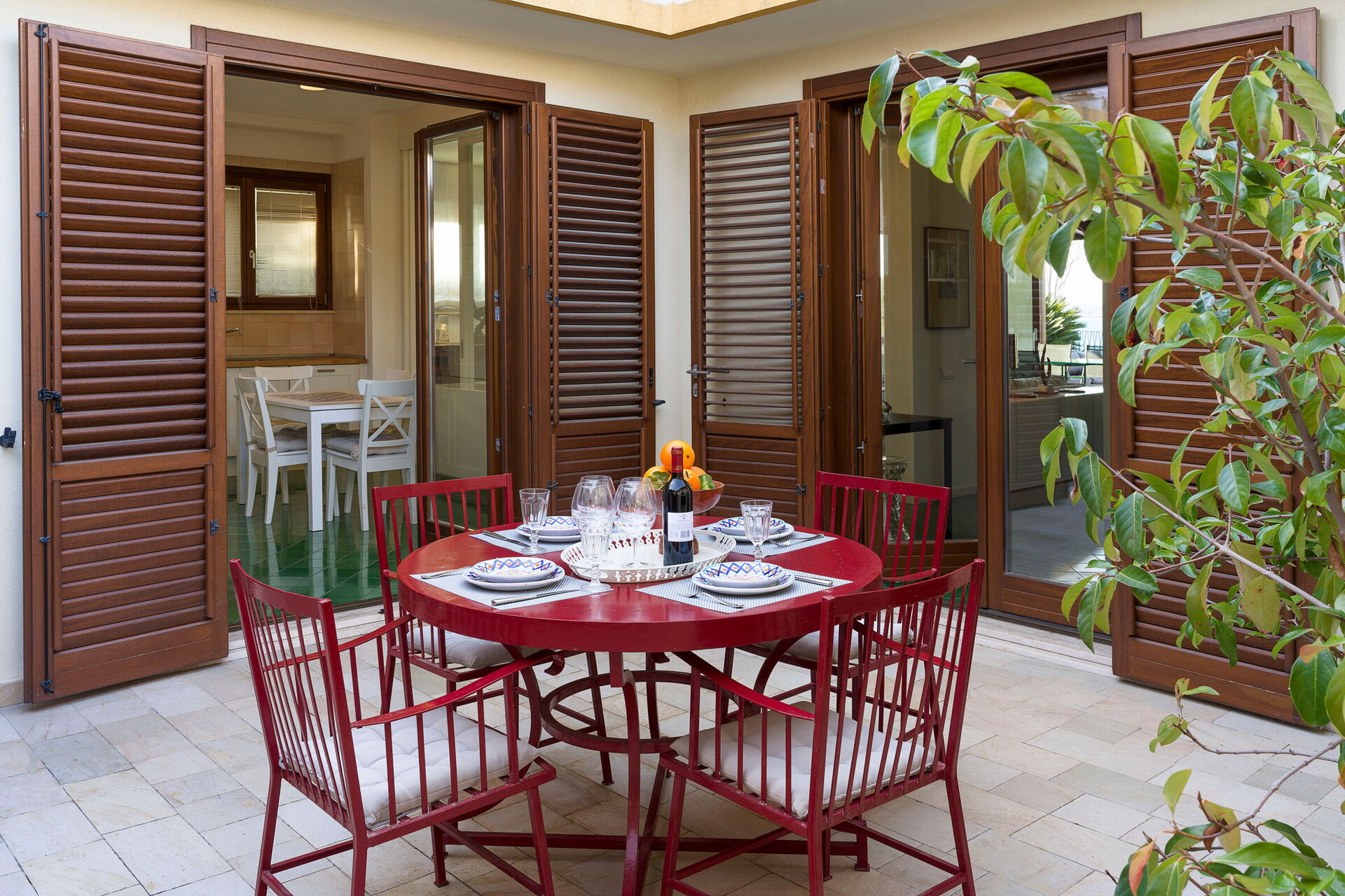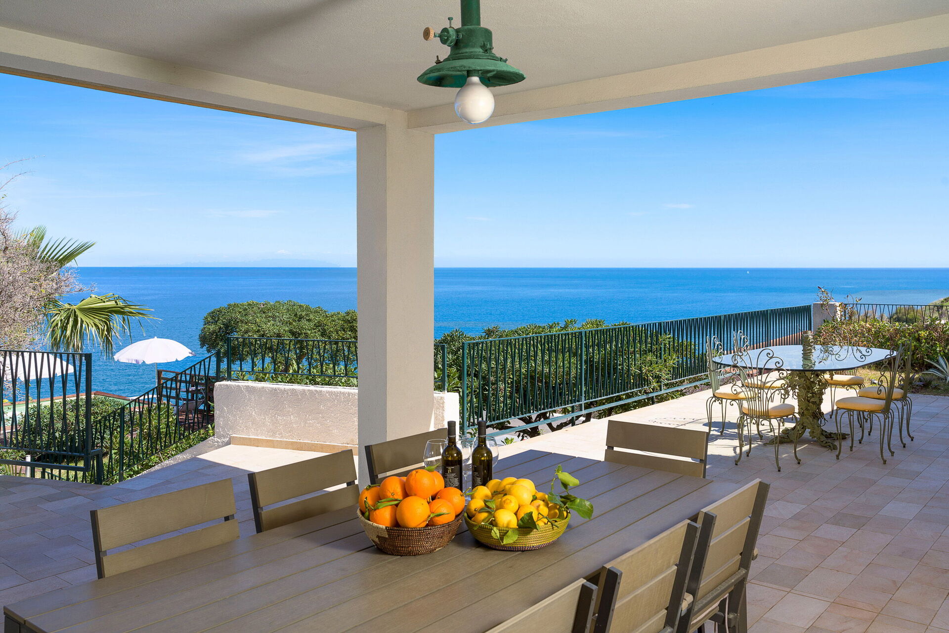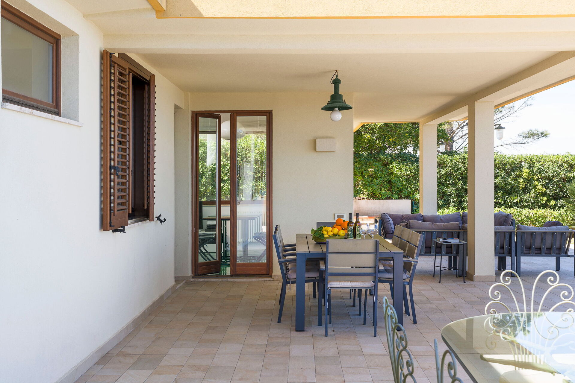 Ett utomhus matplats under verandan är fastighetens höjdpunkt: här kan du koppla av med en måltid utomhus medan du njuter av den fantastiska havsutsikten.