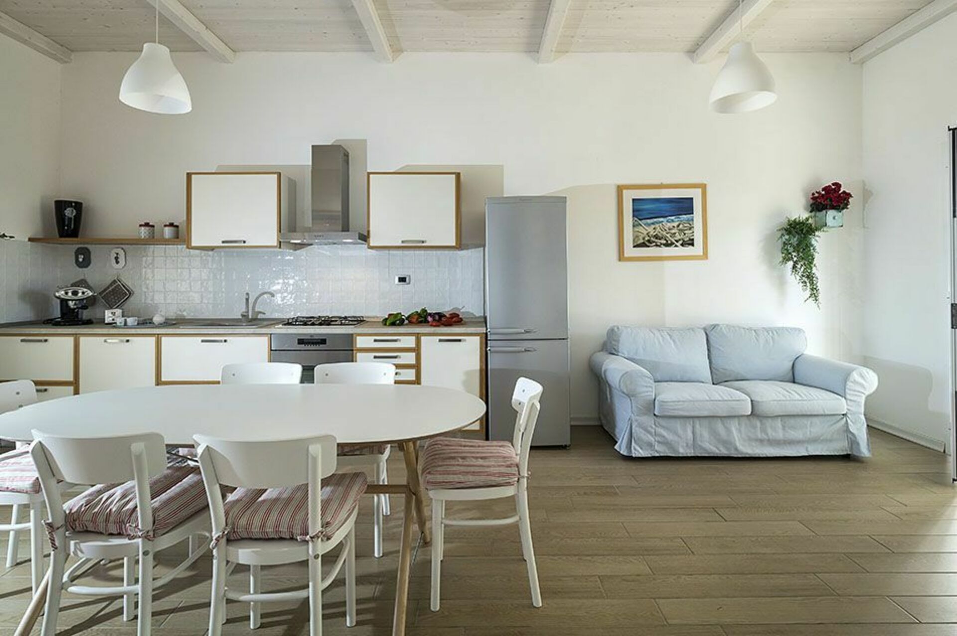Kök/vardagsrum, 3 dubbelrum, 2 badrum med dusch