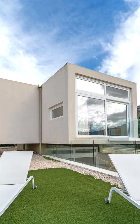 Gästerna kan tillbringa tid med familj eller vänner på de vackra utomhusytorna; här finns ett område med paviljong och panoramautsikt över havet – perfekt för att njuta av måltider utomhus. Utomhusområdet har även en stor pool som ibland används av ägarna.