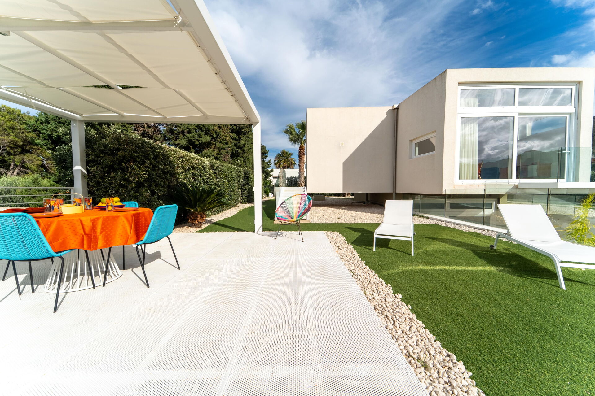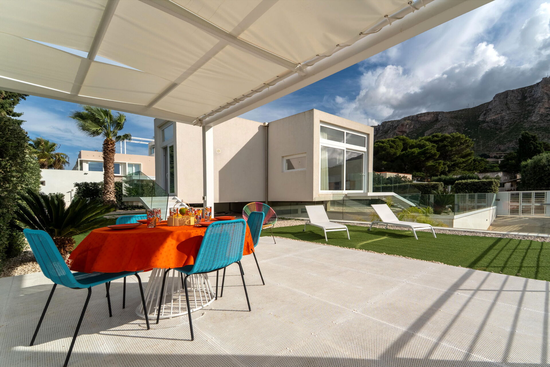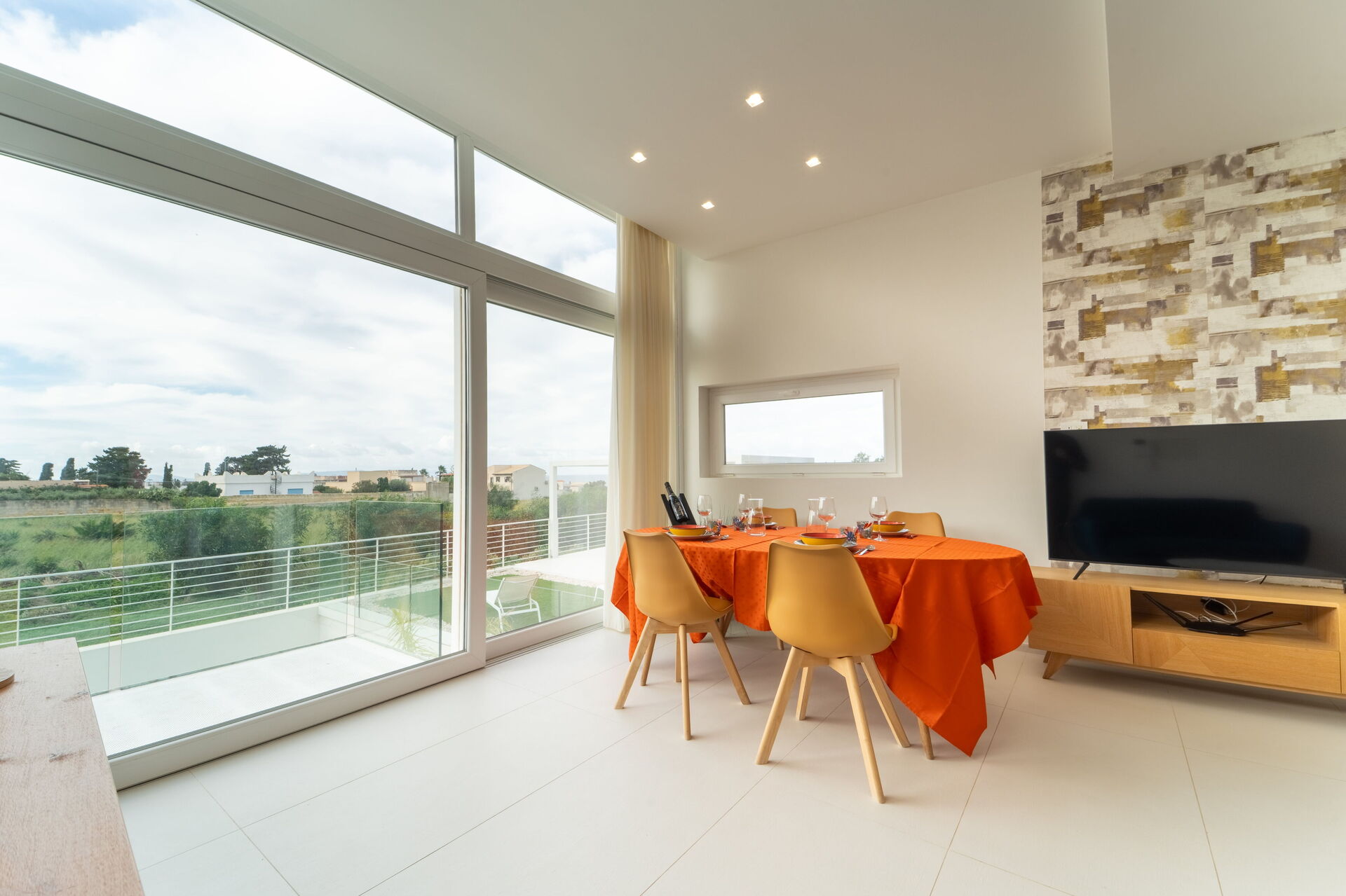 Villa Pizzolungo utmärker sig genom sin moderna design och stora fönster med utsikt som släpper in naturligt ljus. Huset ligger i ett plan och erbjuder en inbjudande, modern interiör och är utrustat med alla bekvämligheter. Med sina 2 sovrum och 2 kompletta badrum med dusch rymmer semesterhuset bekvämt upp till 4 personer.