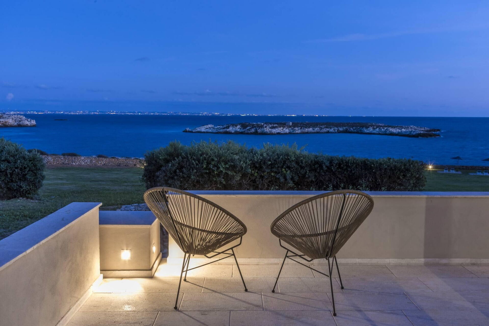 Hav (klippig kust) 100 meter, Cala del Preveto-stranden (hav – småsten och klippig kust) 1 km; Cala Grande-stranden (hav – sand och låg klippig kust) 2,5 km; Lido Burrone-stranden (hav – sand) 5 km; Favignanas centrum (butiker av alla slag och hamn) 4 km (snabbgående färje- och färjeförbindelser till hamnarna i Trapani och Marsala); Marettimo (tillgänglig med snabbgående färja) 25 minuter; Levanzo (tillgänglig med snabbgående färja) 12 minuter; Trapani (tillgänglig med snabbgående färja och färja) 30 minuter/1 timme och 15 minuter; från Trapani hamn till Trapani flygplats 17 km; från Trapani hamn till Palermo 110 km.