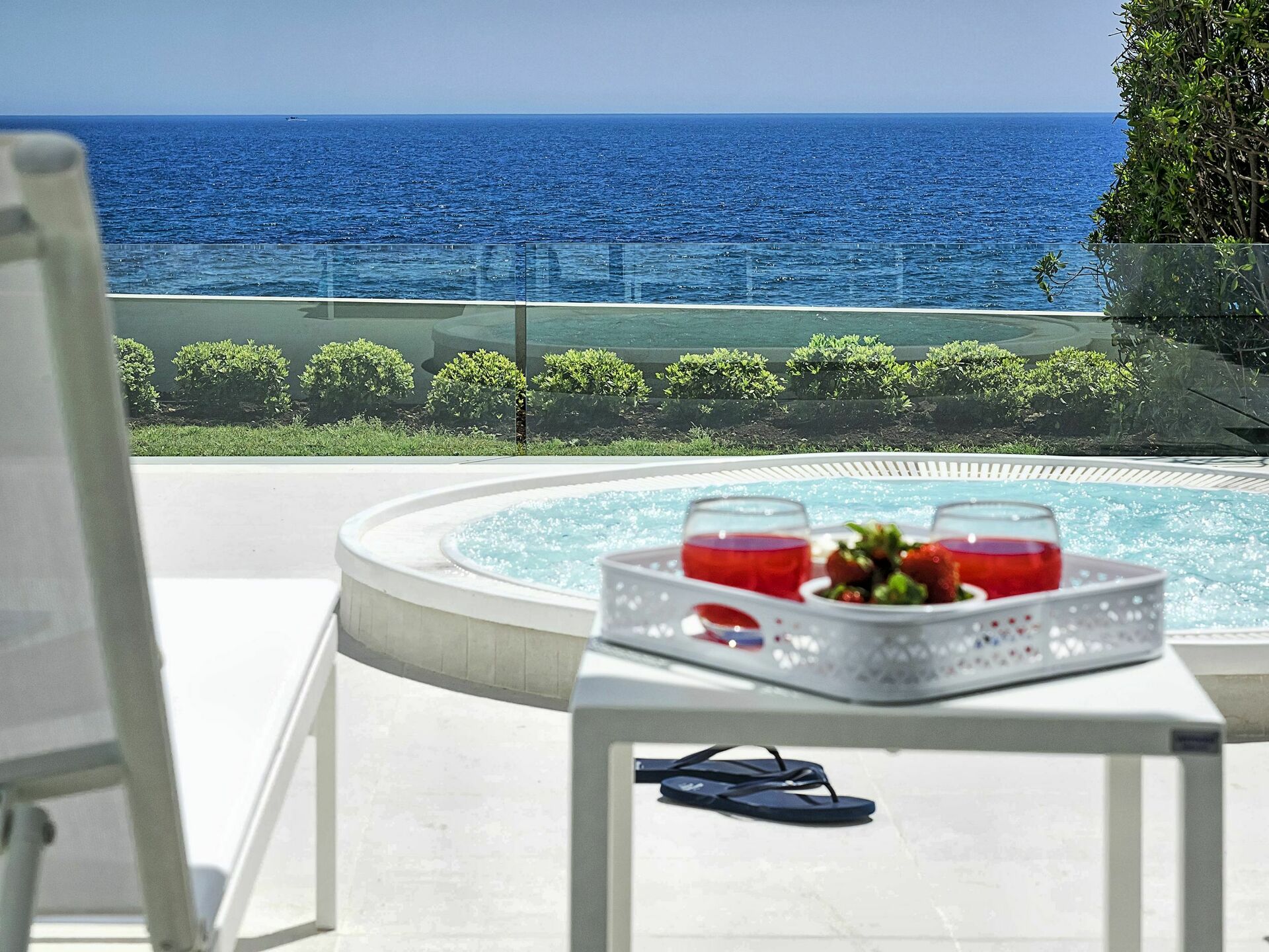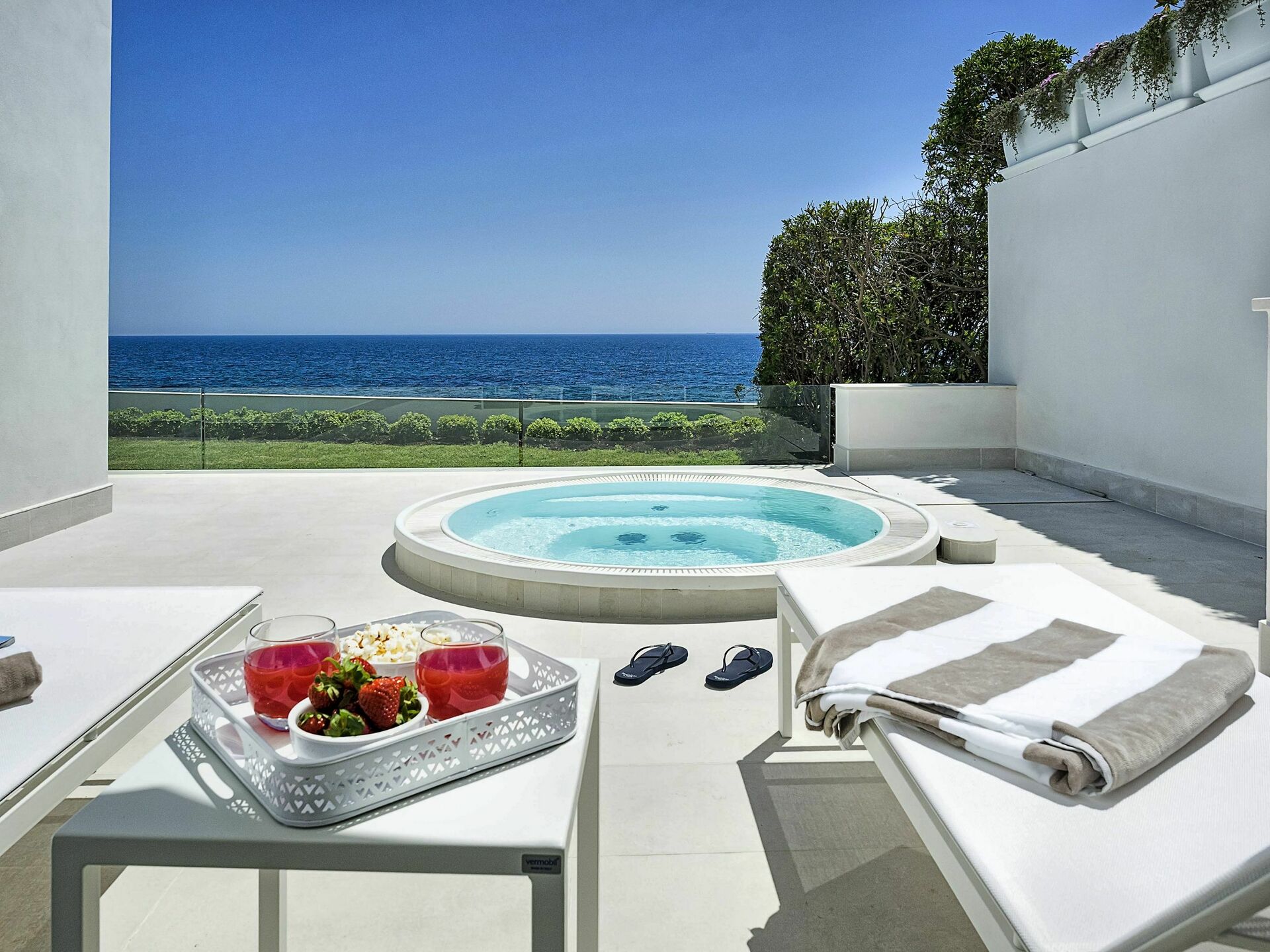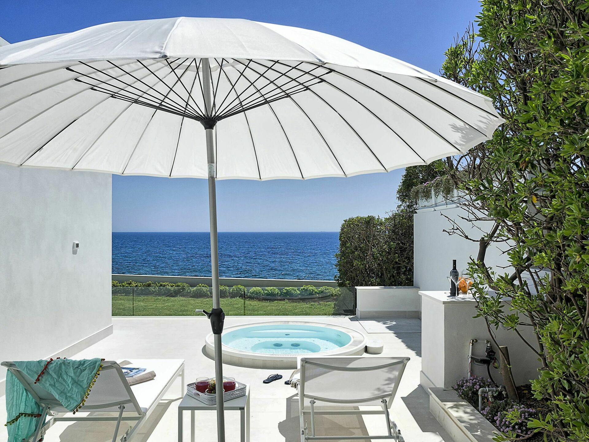 Fritidshuset har ett fantastiskt läge vid havet och erbjuder en exklusiv terrass med bubbelpool, grillplats och trädgård.