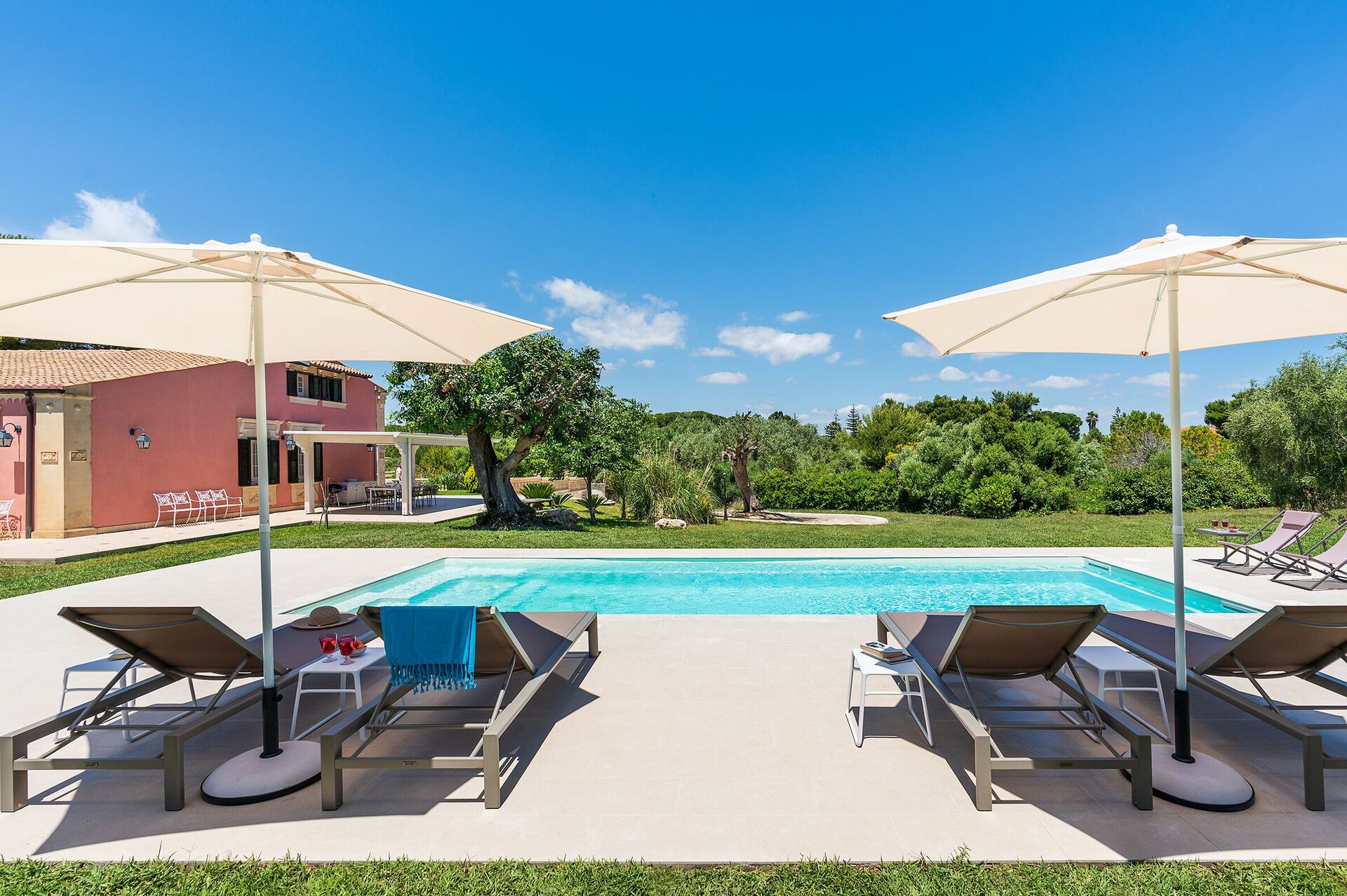 Villa Girasole är ett vackert semesterhus med privat pool bara några steg från den fantastiska sandstranden Fontane Bianche, en berömd badort söder om Syrakusa.