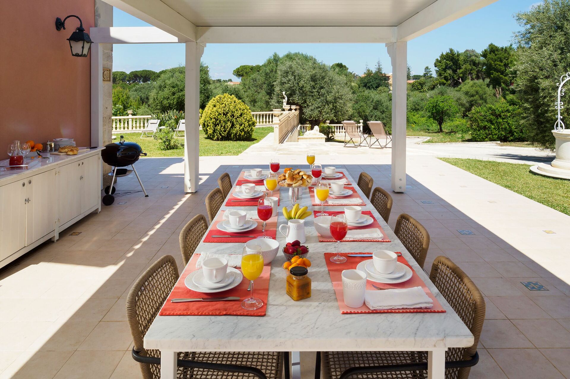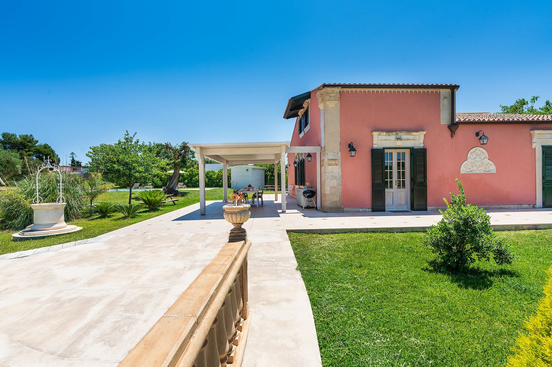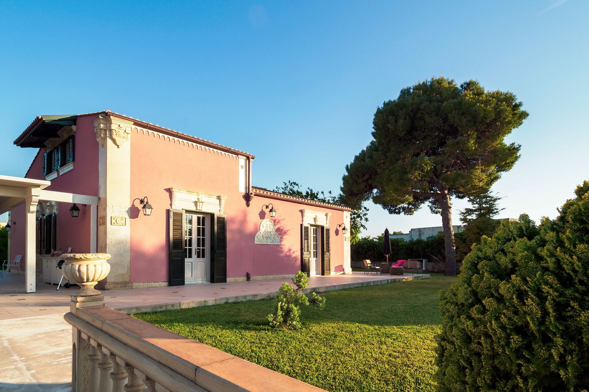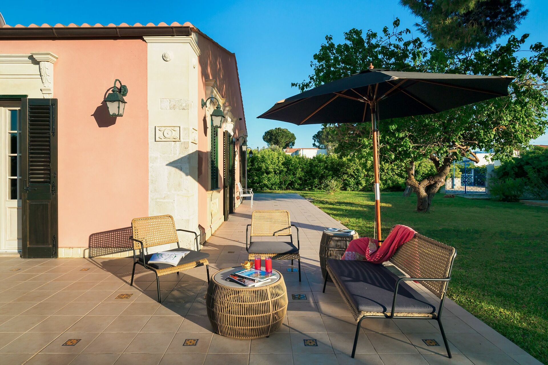 Huset är perfekt för en avkopplande solig semester vid havet. Det är omgivet av en stor, välskött trädgård med välmöblerade terrasser som är perfekta för att spendera dagar och kvällar utomhus. Inuti är den bekväma villan smakfullt inredd med en underbar blandning av antika och moderna föremål.