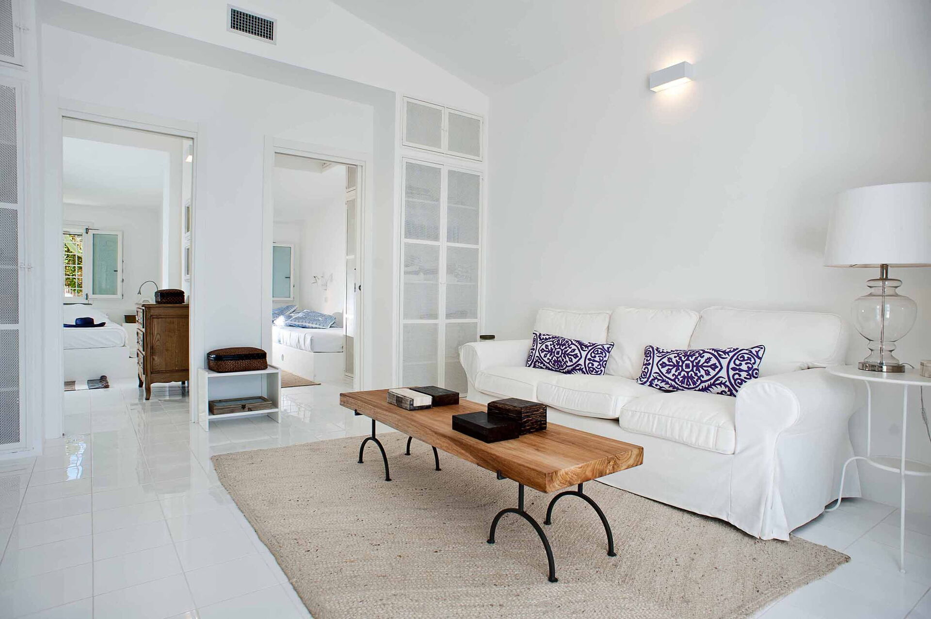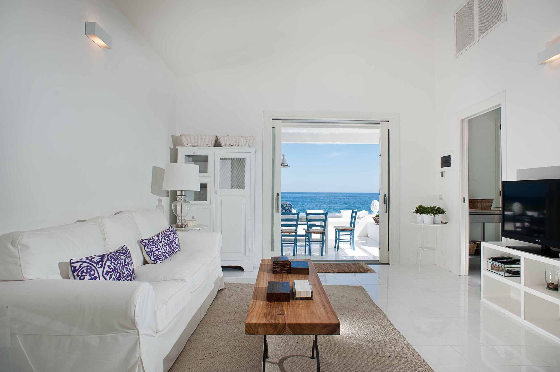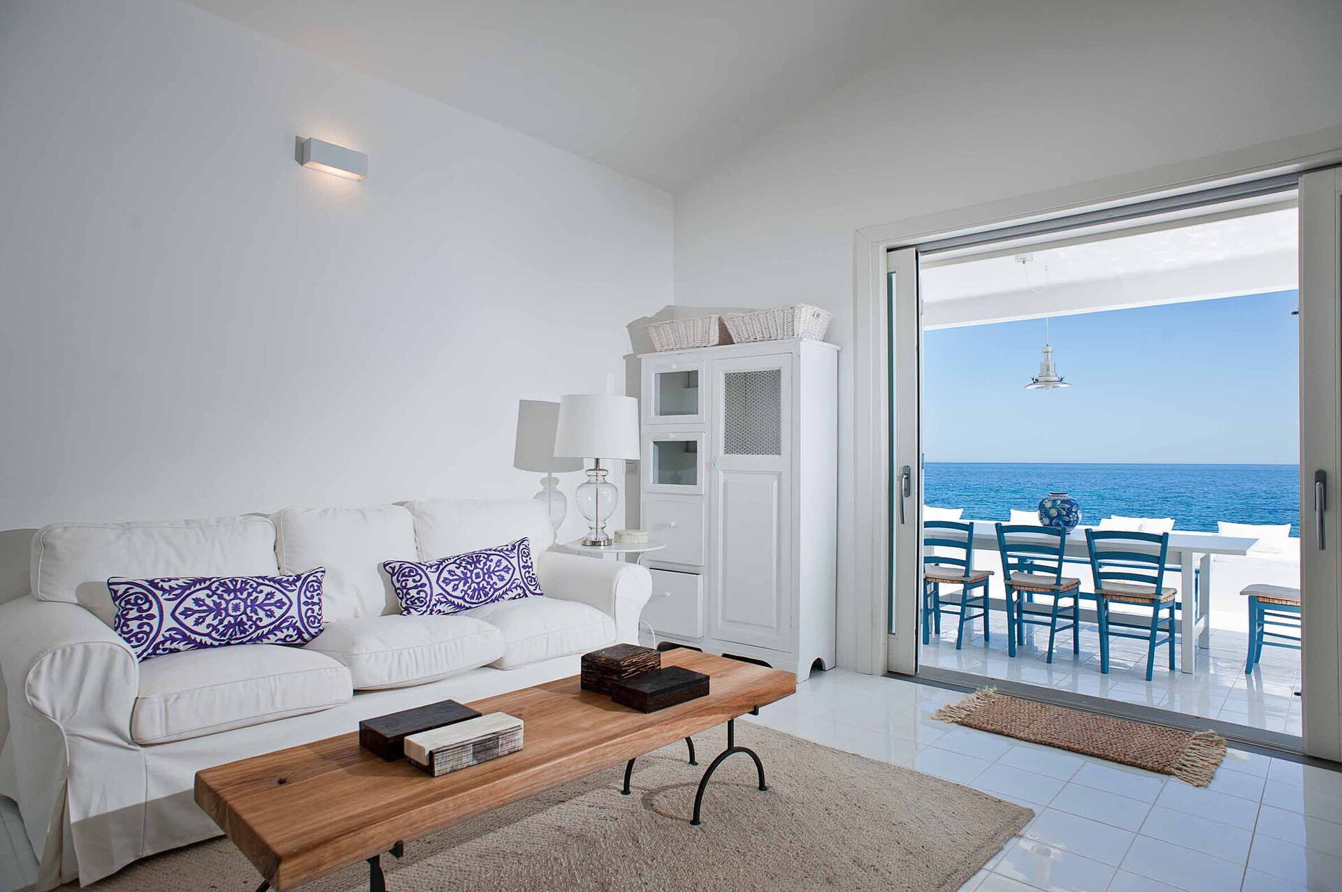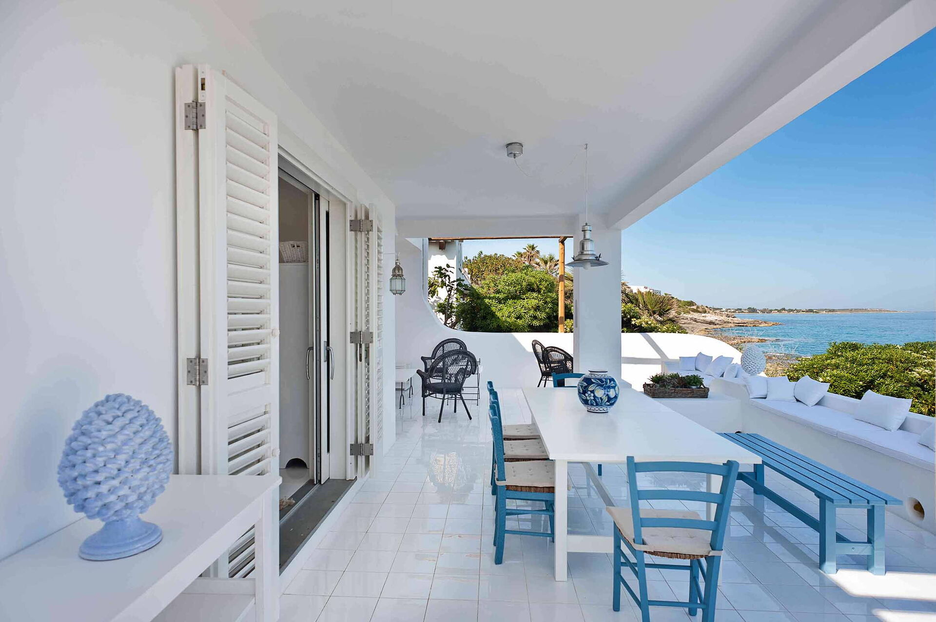 Casa Blu är perfekt för par eller en familj på 4 med 1 dubbelrum och 1 tvåbäddsrum fördelat på en våning med eleganta och vita möbler. Den stora täckta verandan utrustad med bord och stolar skapar en känsla av kontinuitet mellan inne och ute.