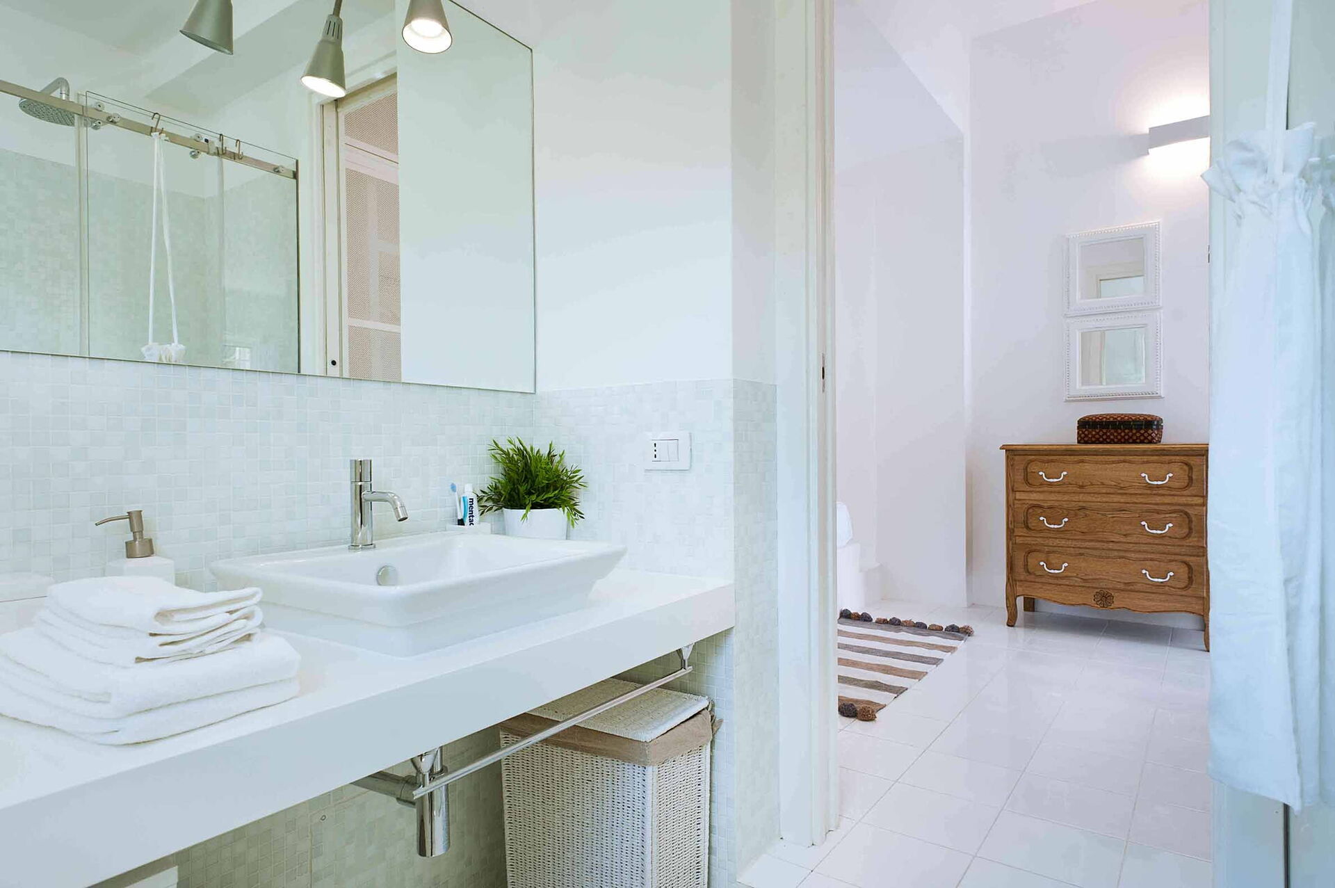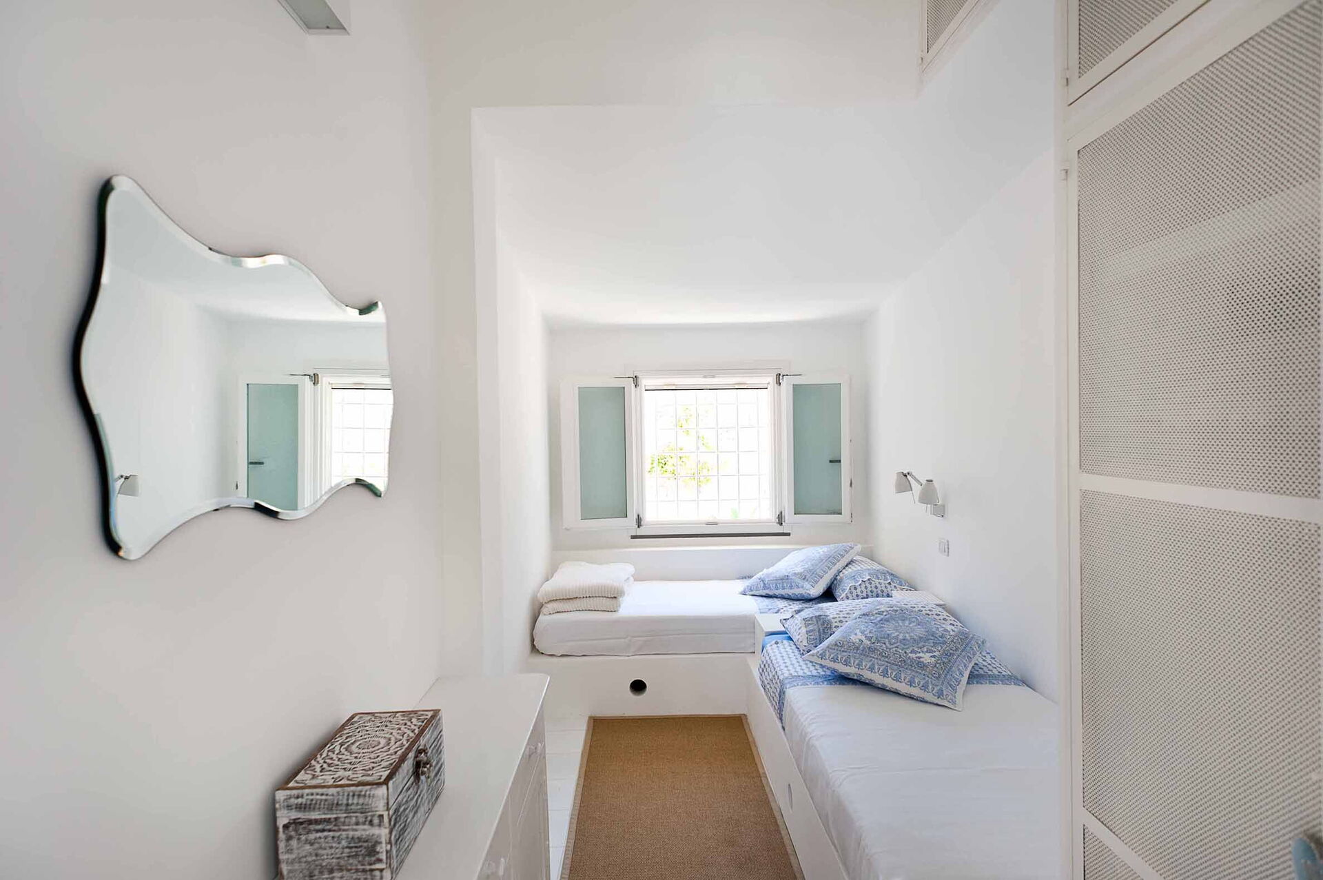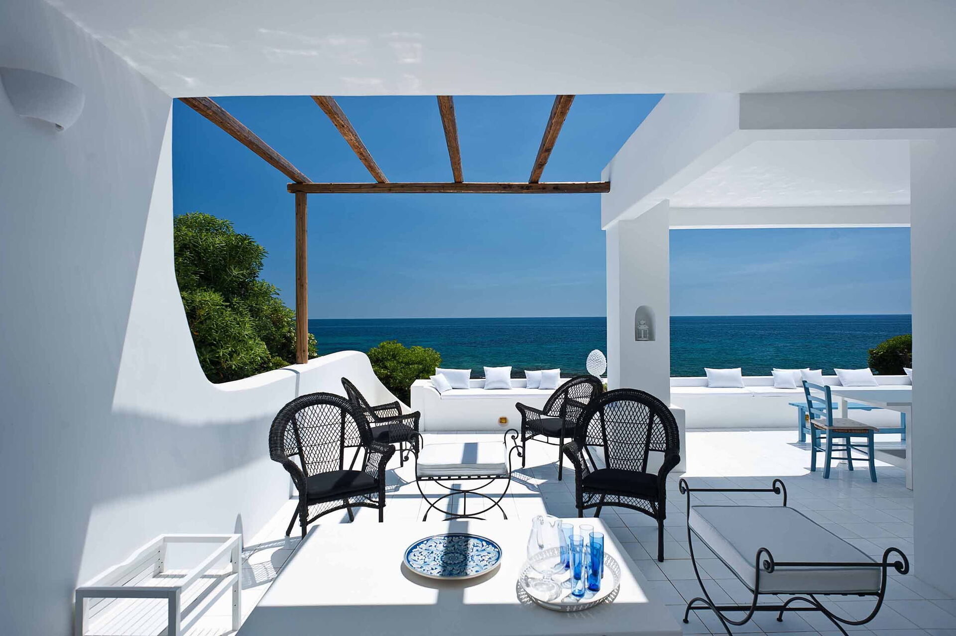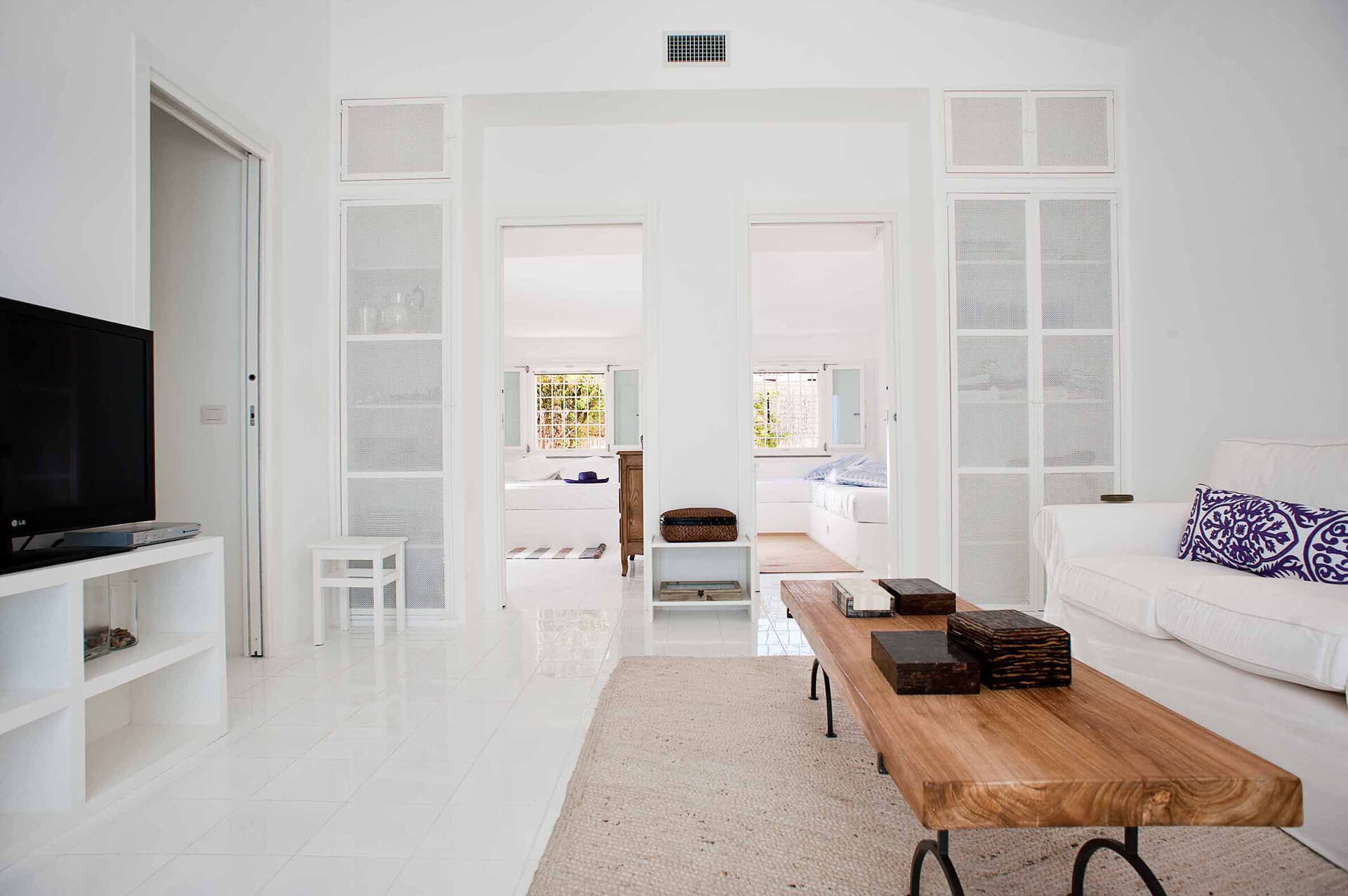 Casa Blu är perfekt för par eller en familj på 4 med 1 dubbelrum och 1 tvåbäddsrum fördelat på en våning med eleganta och vita möbler. Den stora täckta verandan utrustad med bord och stolar skapar en känsla av kontinuitet mellan inne och ute.