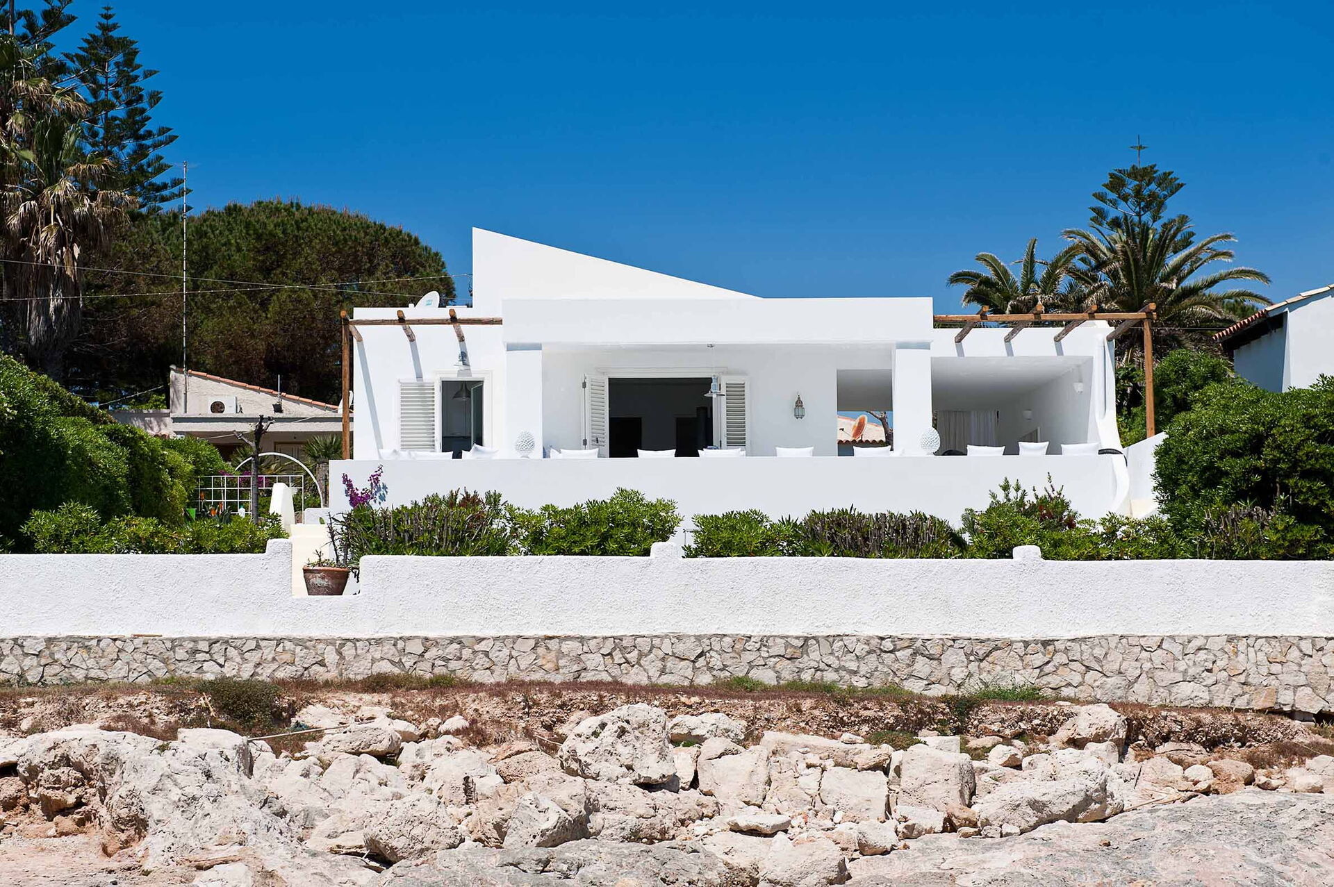 Casa Blu är ett exklusivt semesterhus med havsutsikt i Fontane Bianche på Sicilien!