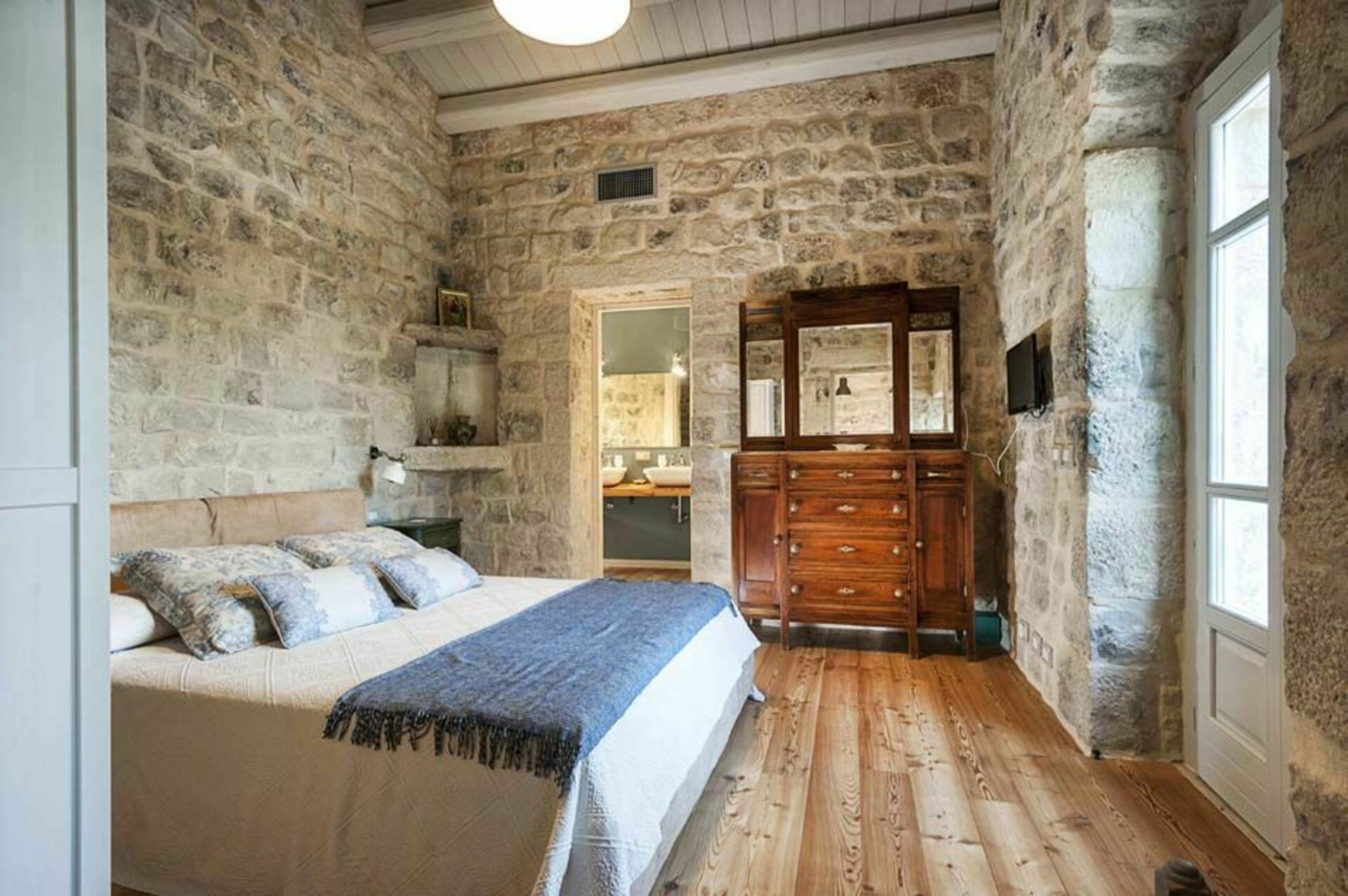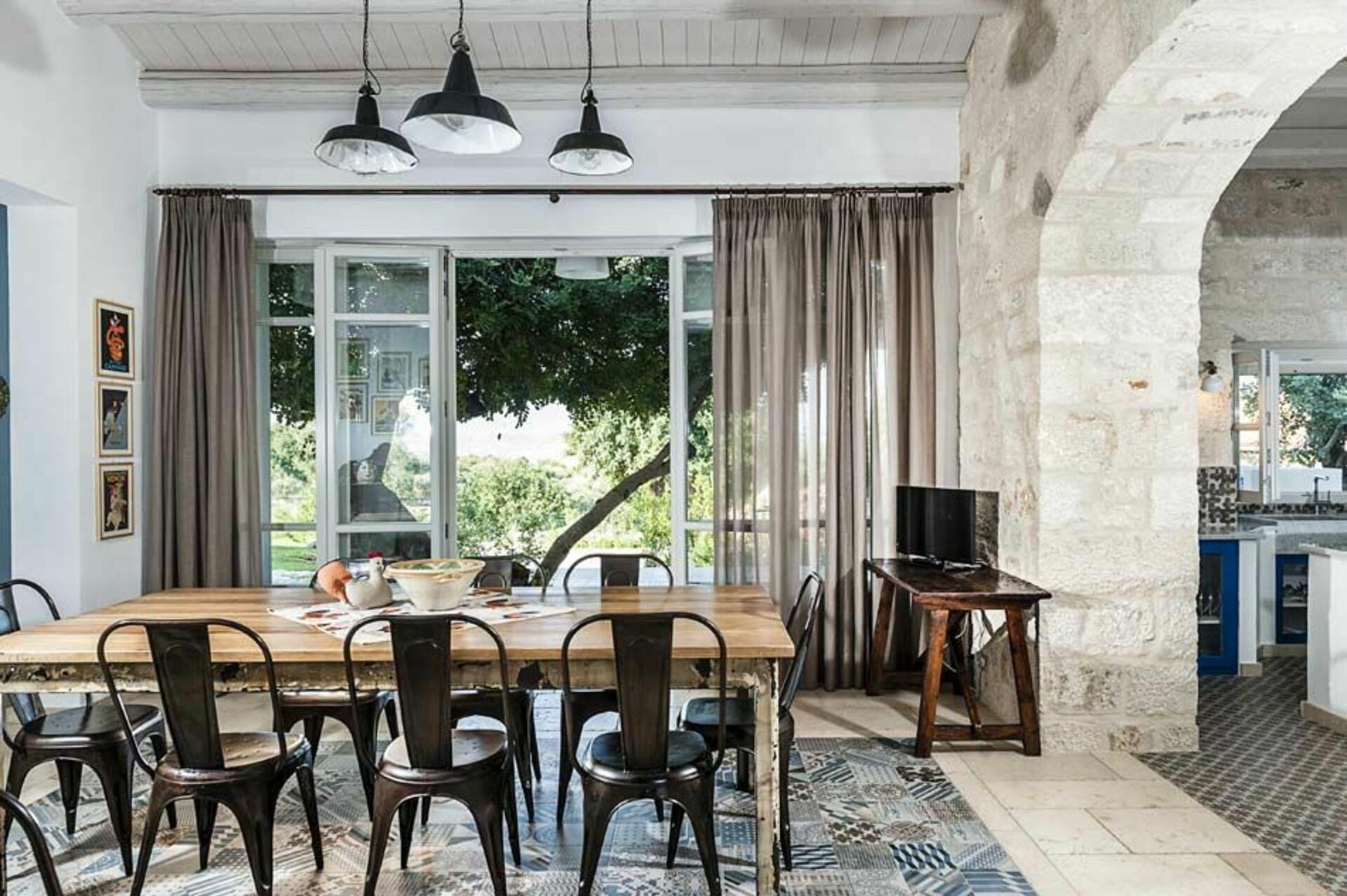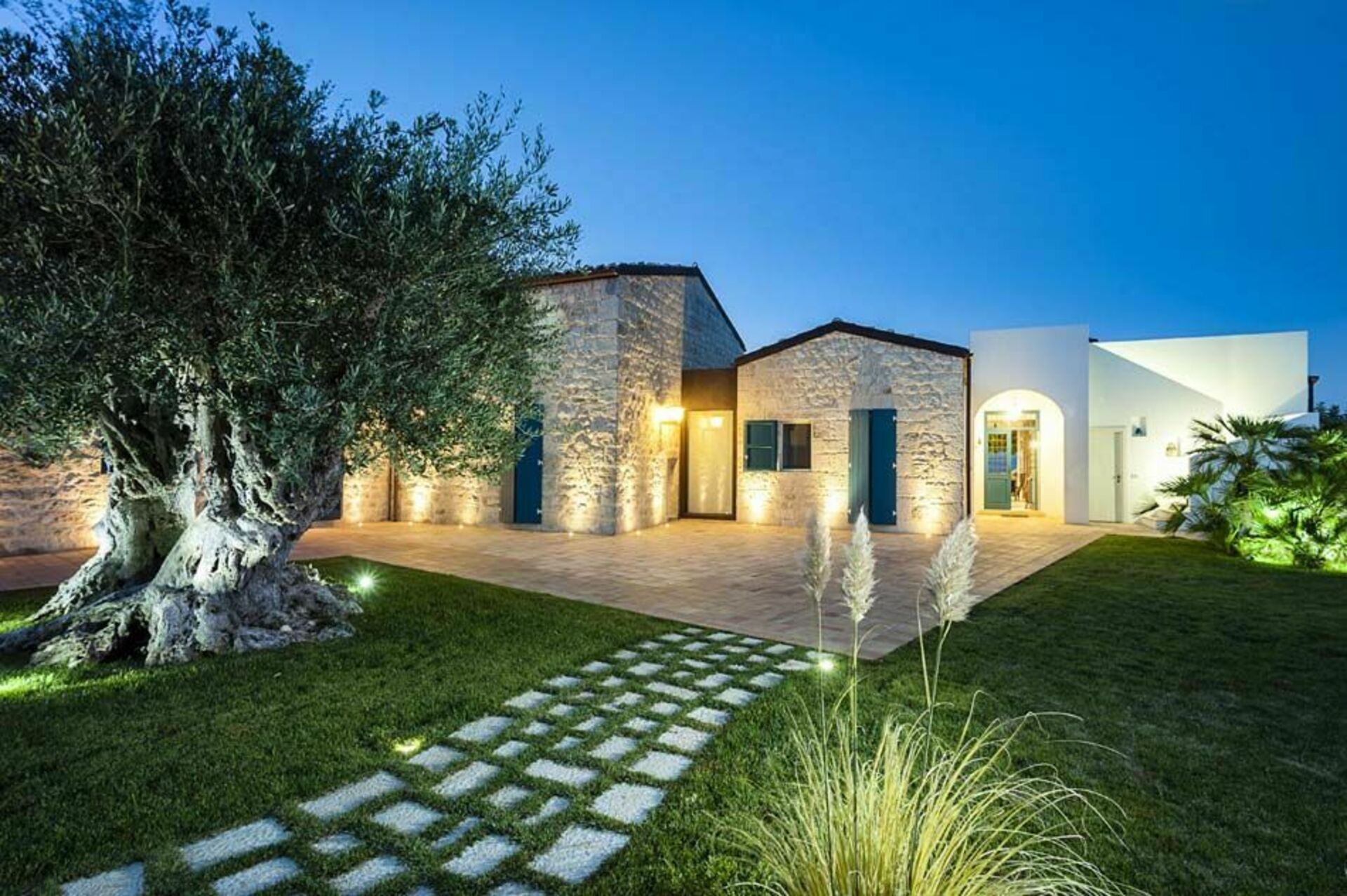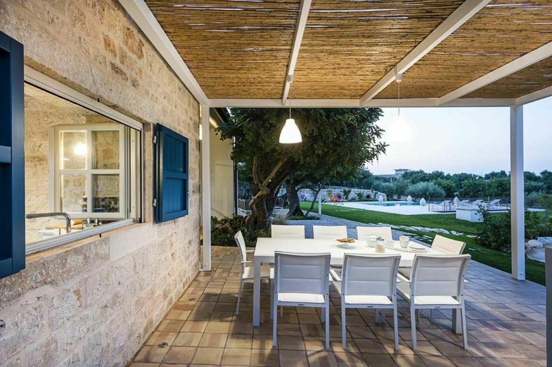 Fastigheten är omgiven av olivträd, carobträd och vita stenmurar. Huset har också en vacker infinity pool, stora välutrustade terrasser och en välskött trädgård med gräsmatta.