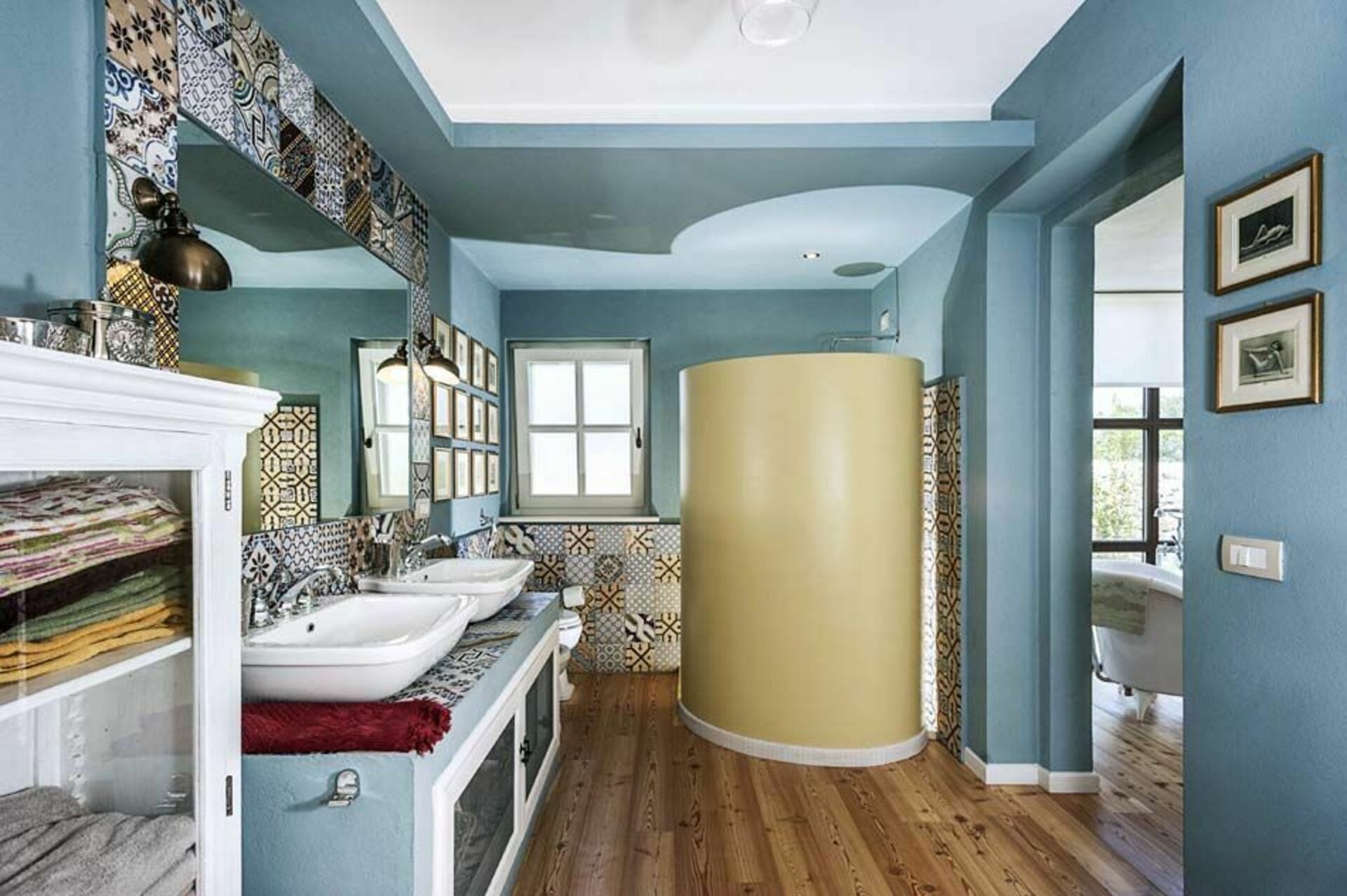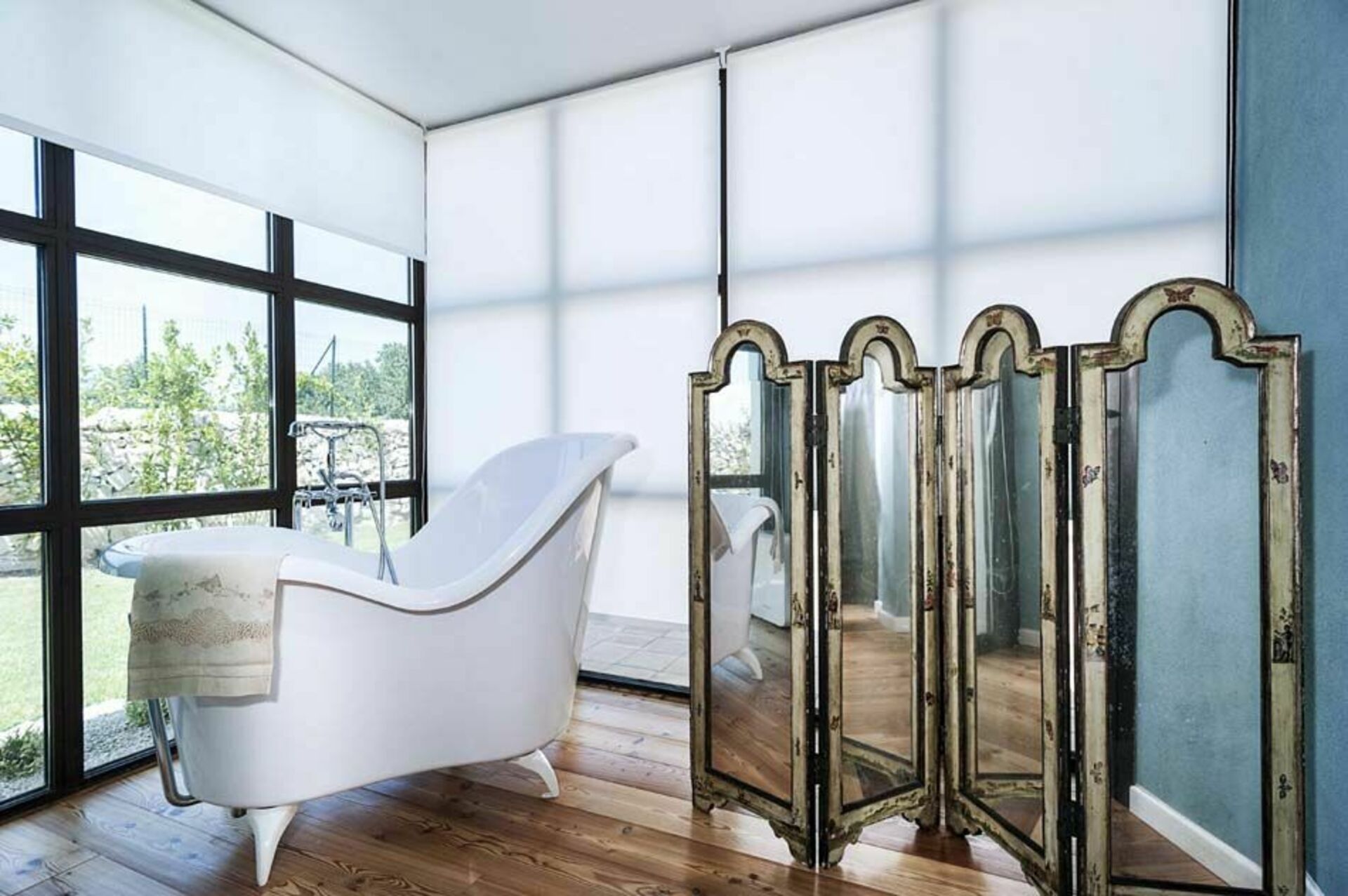 Villan är dekorerad med en raffinerad inredning med blandade moderna och traditionella element. Huset ligger på en nivå och består av ett huvudhus och en annex.