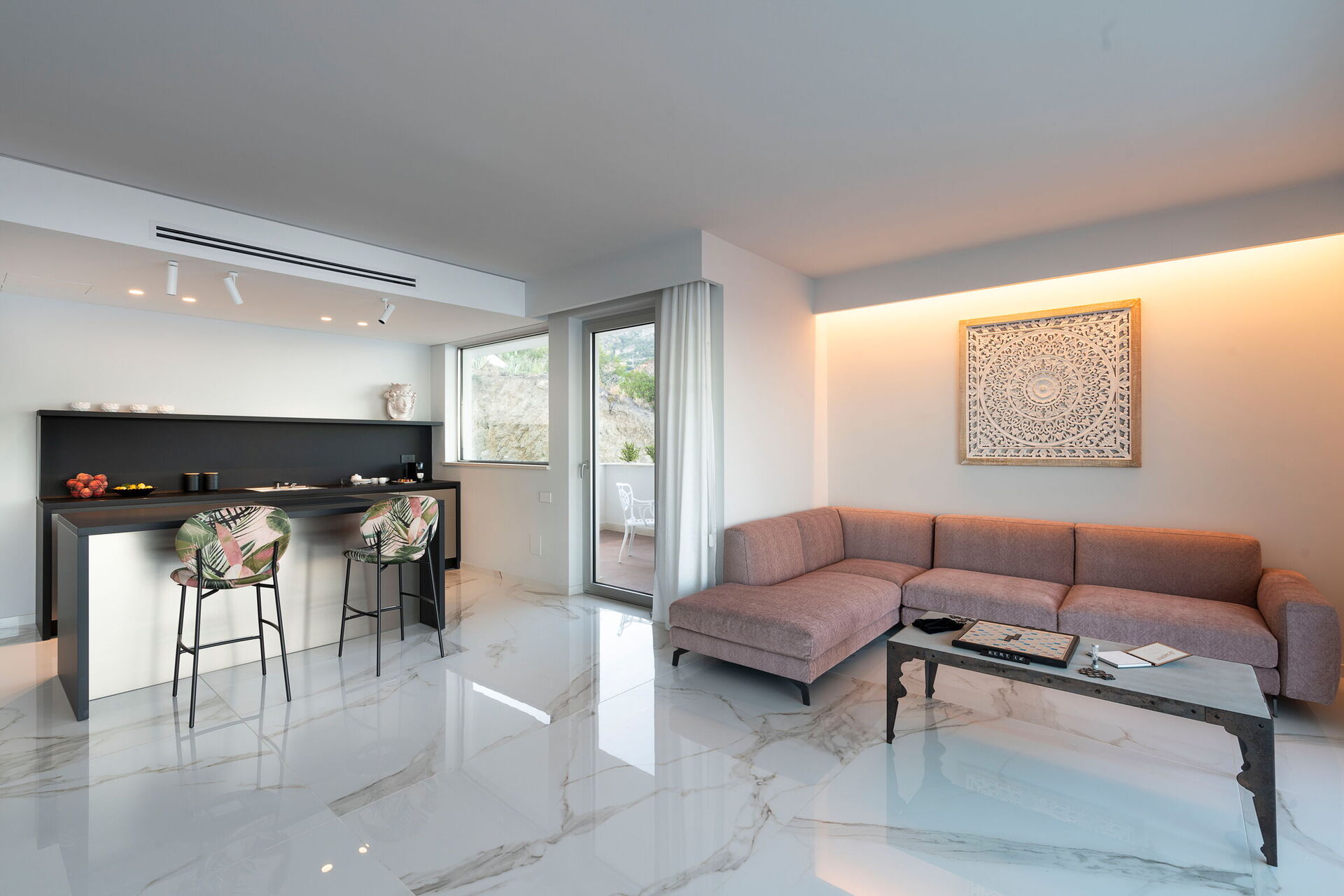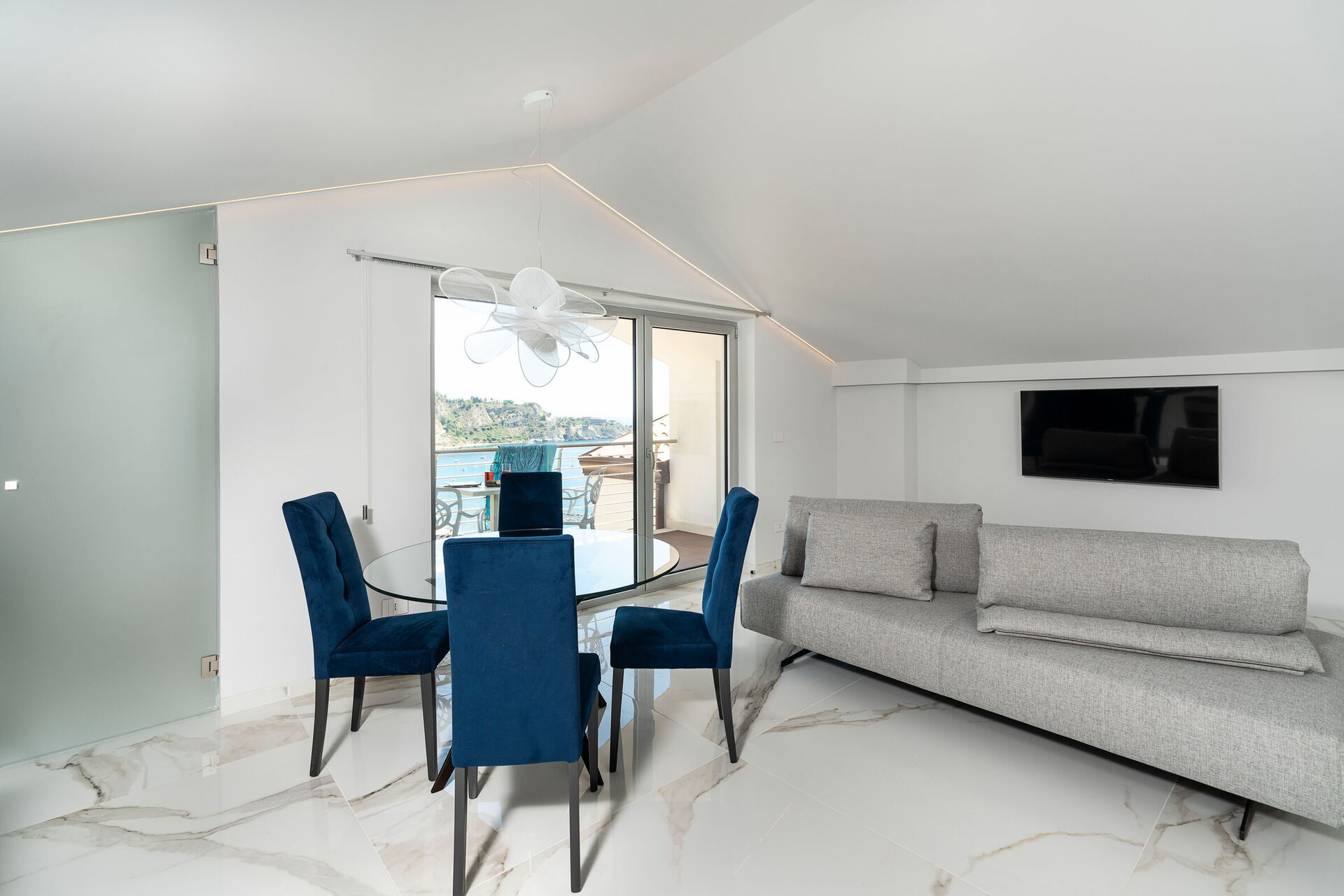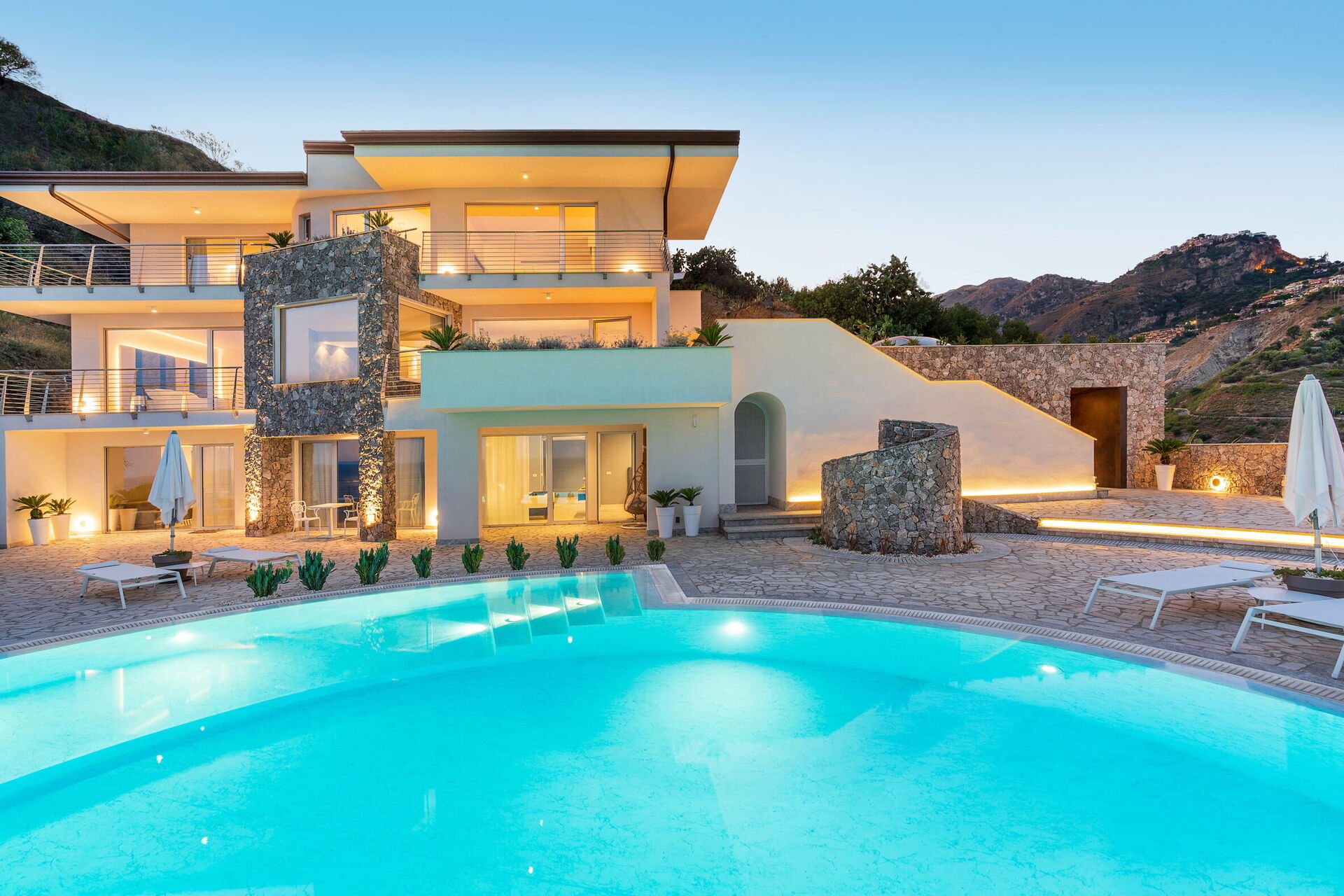 Utomhusområdena med panoramautsikt har flera gemensamma utrymmen, möblerad terrass, stor pool med havsutsikt och utomhusjacuzzi, många möjligheter att njuta av oförglömliga stunder under den sicilianska solen.