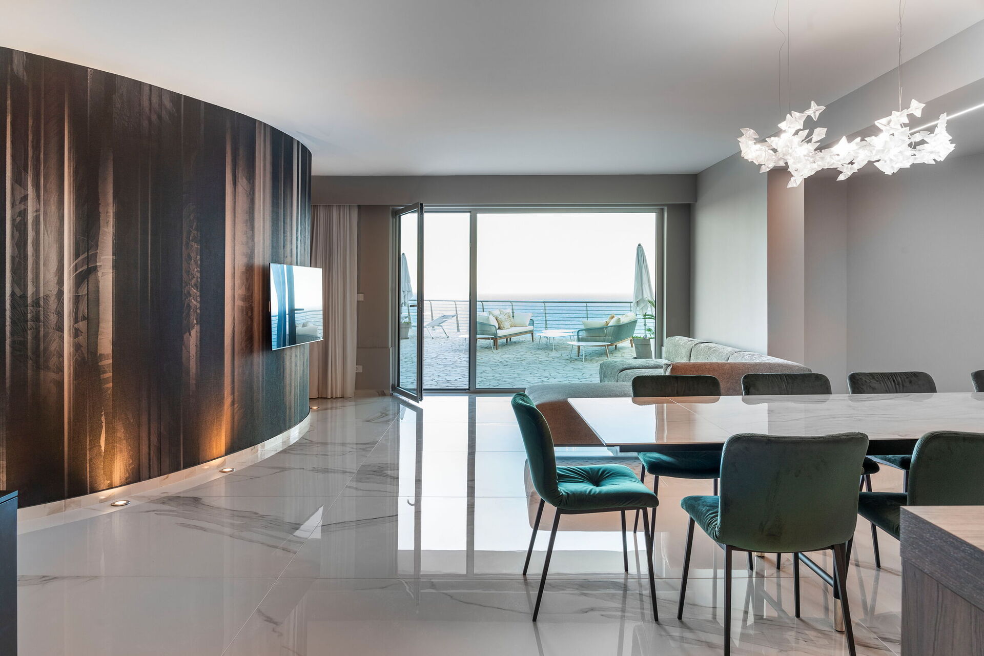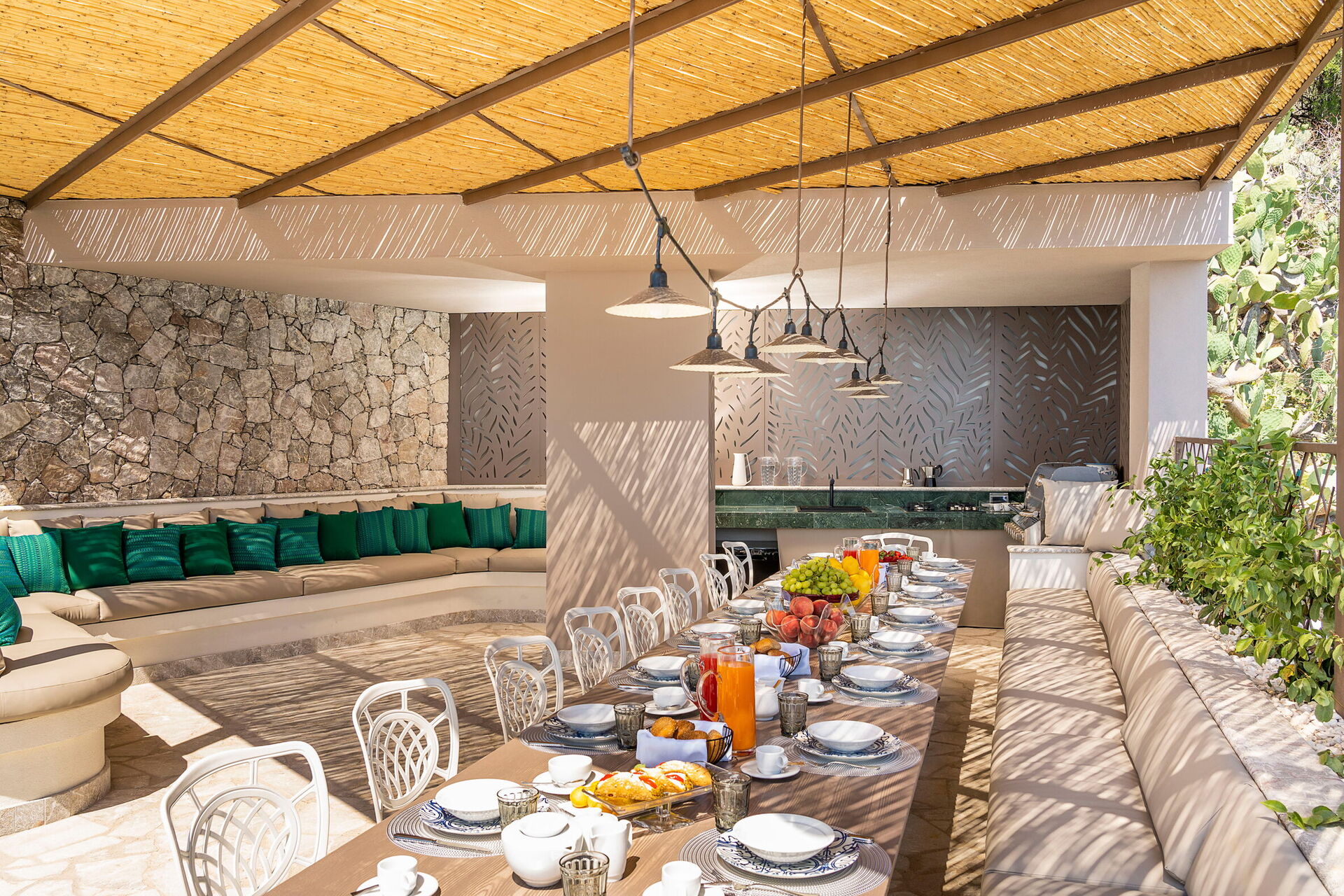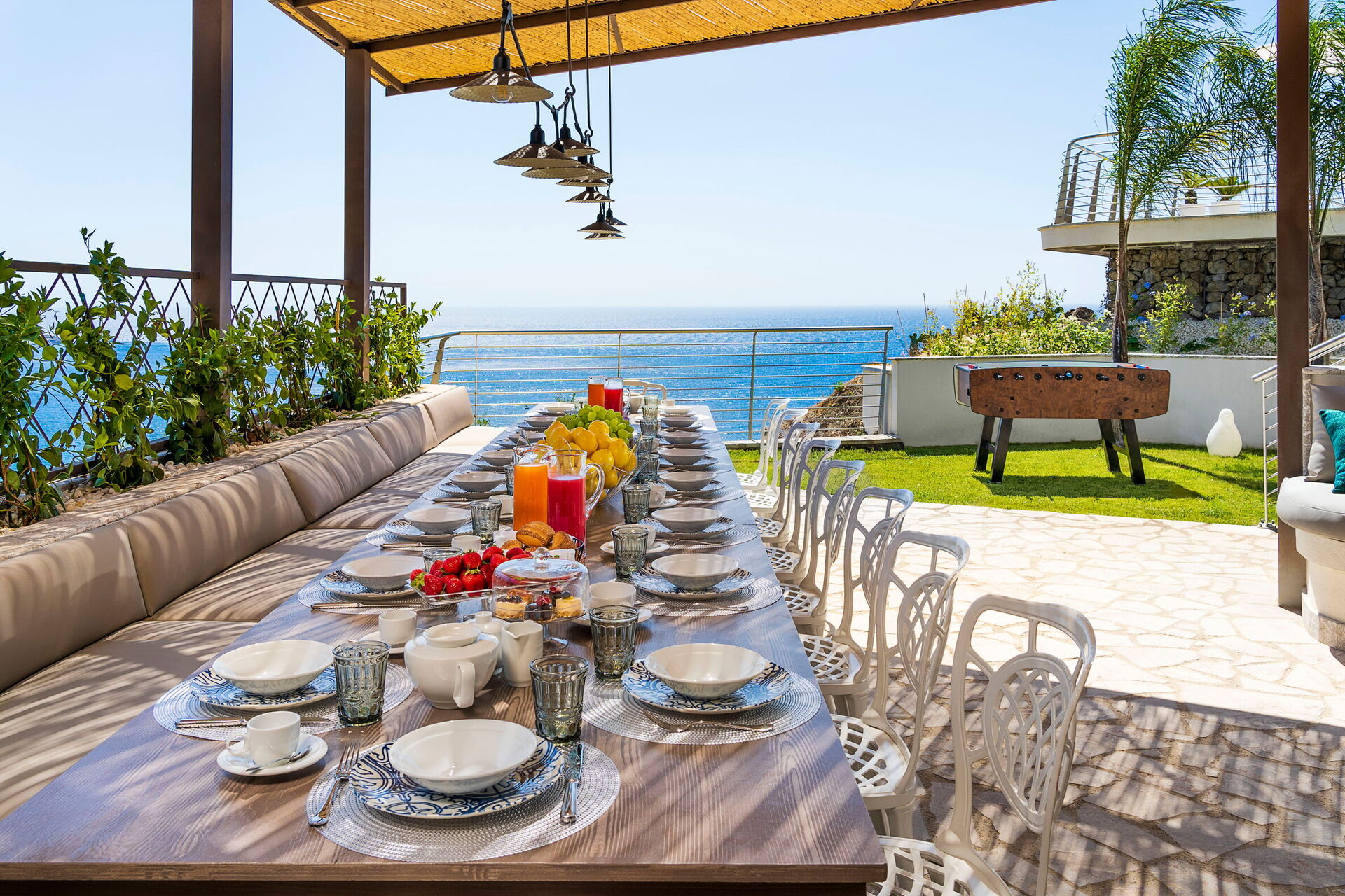 Semesterhuset är prestigefyllt och modernt med fantastisk utsikt över havet, som även kan beundras från den poolen och de stora terrasserna.
