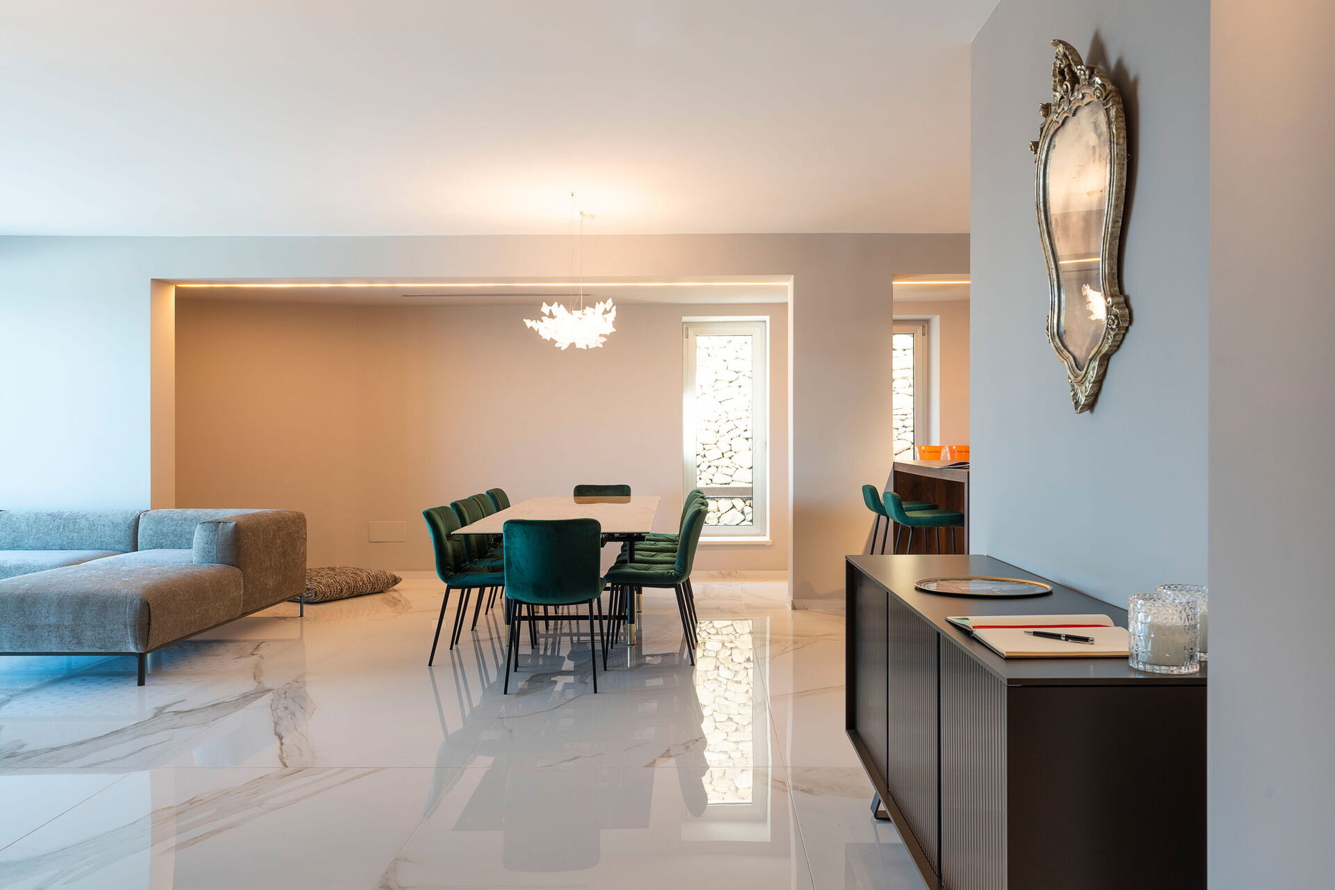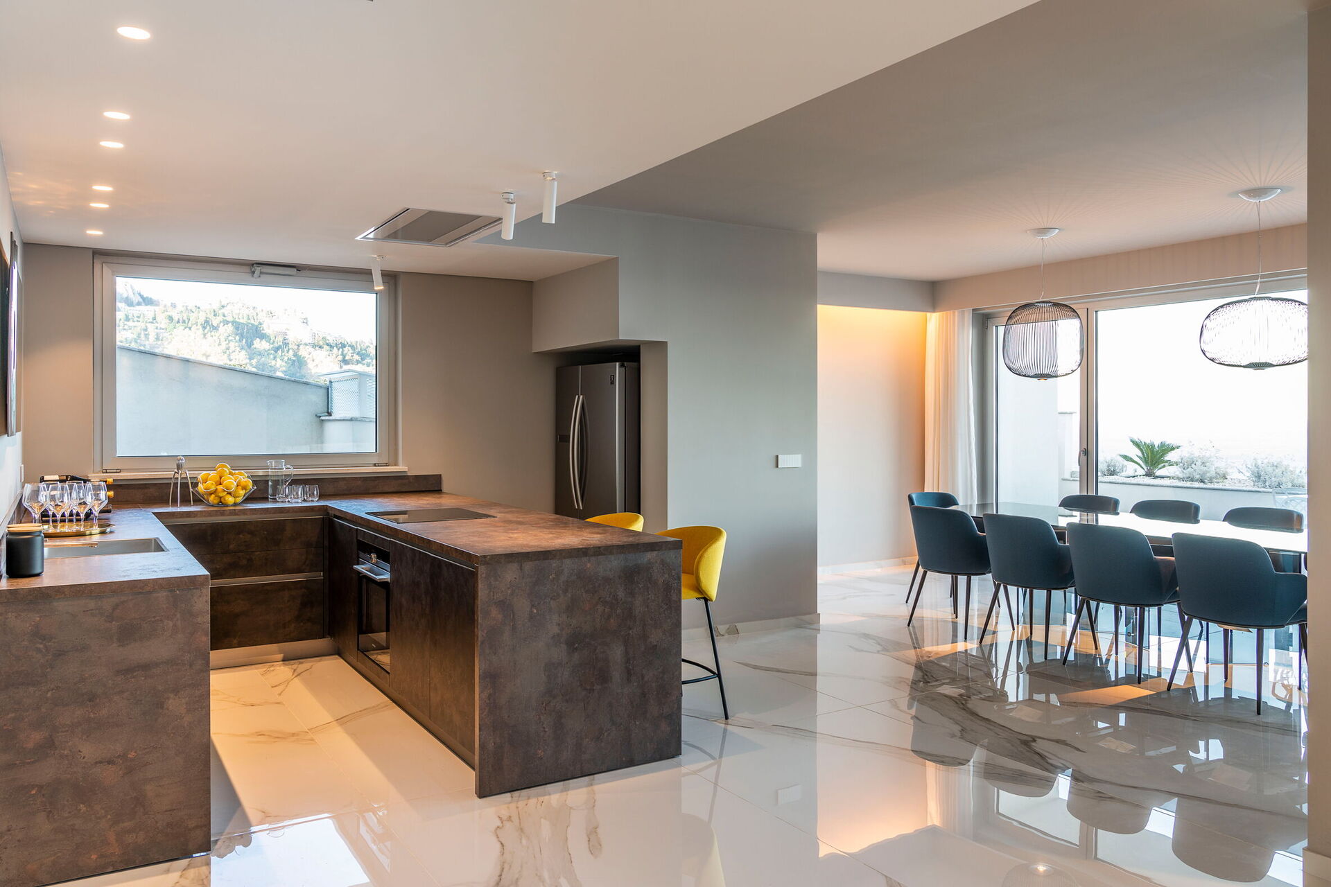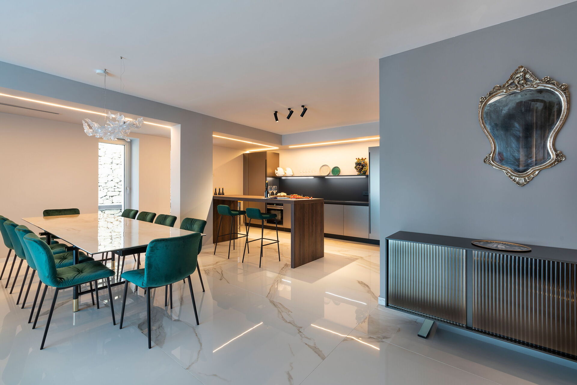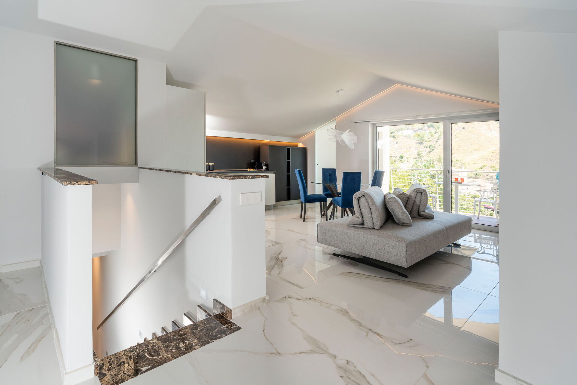 Semesterhuset är prestigefyllt och modernt med fantastisk utsikt över havet, som även kan beundras från den poolen och de stora terrasserna.