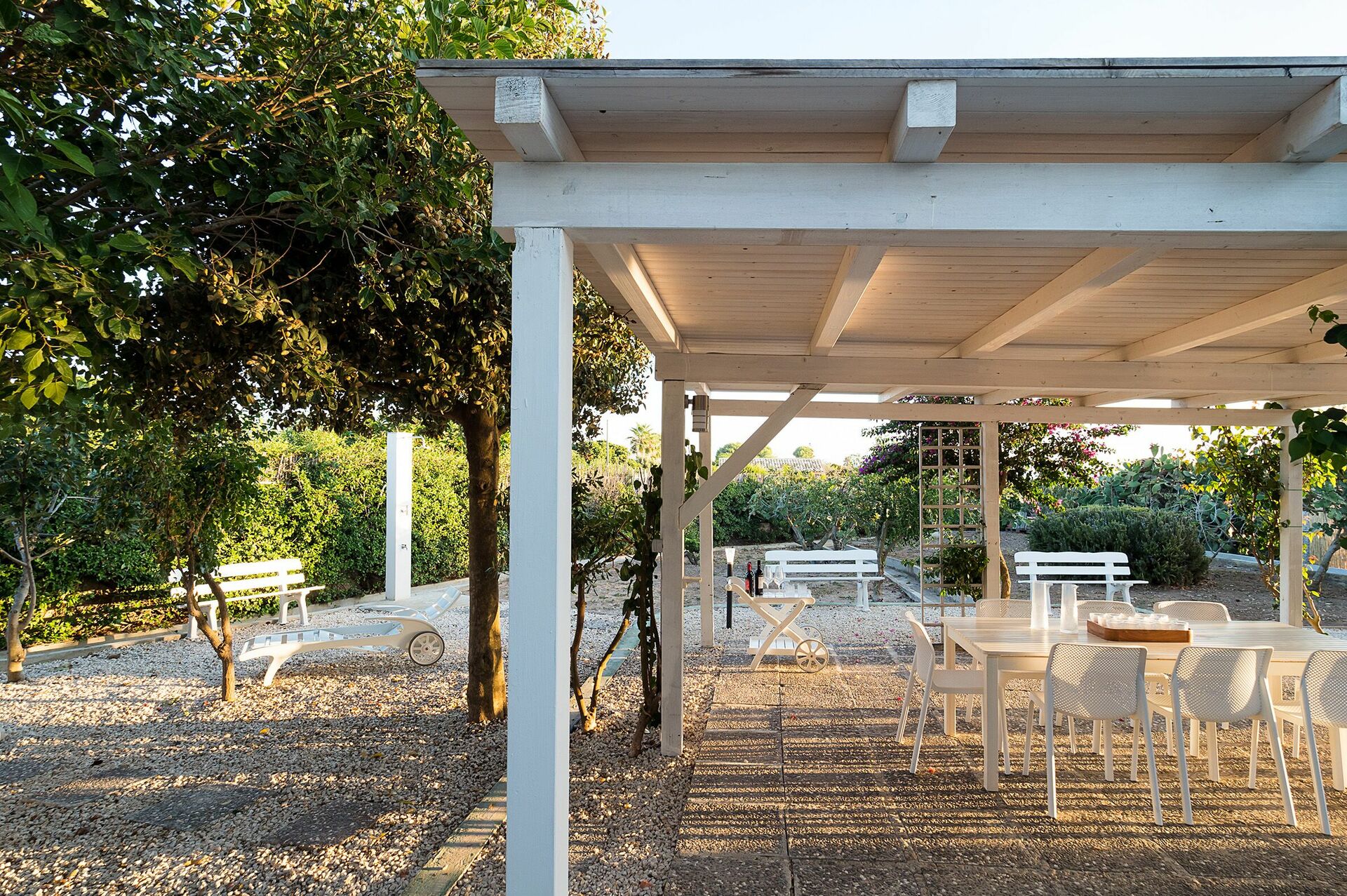 På utomhusområdet finns en välskött trädgård med flera fruktträd tillgängliga och det möblerade utomhusområdet ger dem möjlighet att ordna utomhusmåltider i den svala havsbrisen.
