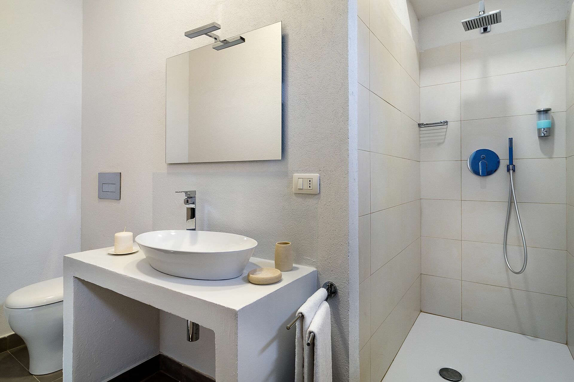 "Baia del Mare" ligger exklusivt till med utsikt över havet och gästerna kan nå en charmig gyllene sandstrand till fots. Huset har 4 sovrum och rymmer lätt 8 personer. Det är snyggt inrett och erbjuder alla bekvämligheter.